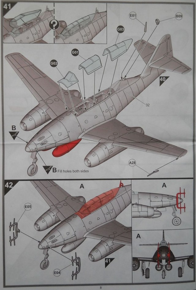 Модель от Airfix из пластика в масштабе 1/72 (номер по каталогу 4062). Картонная коробка с верхним открытием. В наборе даётся возможность собрать на выбор немецкий Me-262B-1a/U1 или чешский послевоенный Avia CS-92. Типичное качество литья для Airfix последнего поколения. Хорошая деталировка. Самый заметный недостаток – с мотогондолами, где не показаны 2 ряда мелких воздухозаборников. Фонарь смотрится отлично. Подробная декаль с богатой техничкой даётся на три варианта: немецкий, трофейный английский и чешский послевоенный. Цветная инструкция по сборке и окраске выглядит замечательно, она достаточно информативна и наглядна.