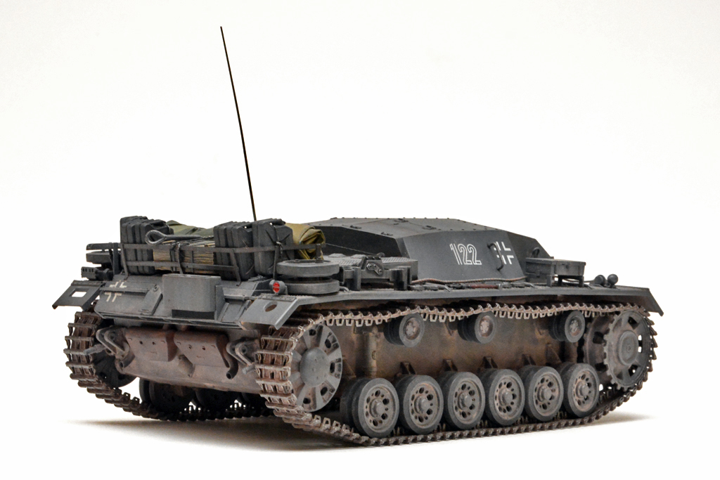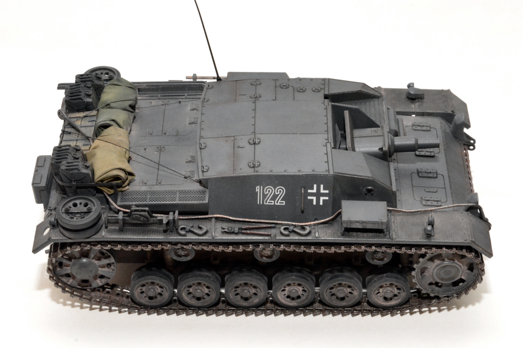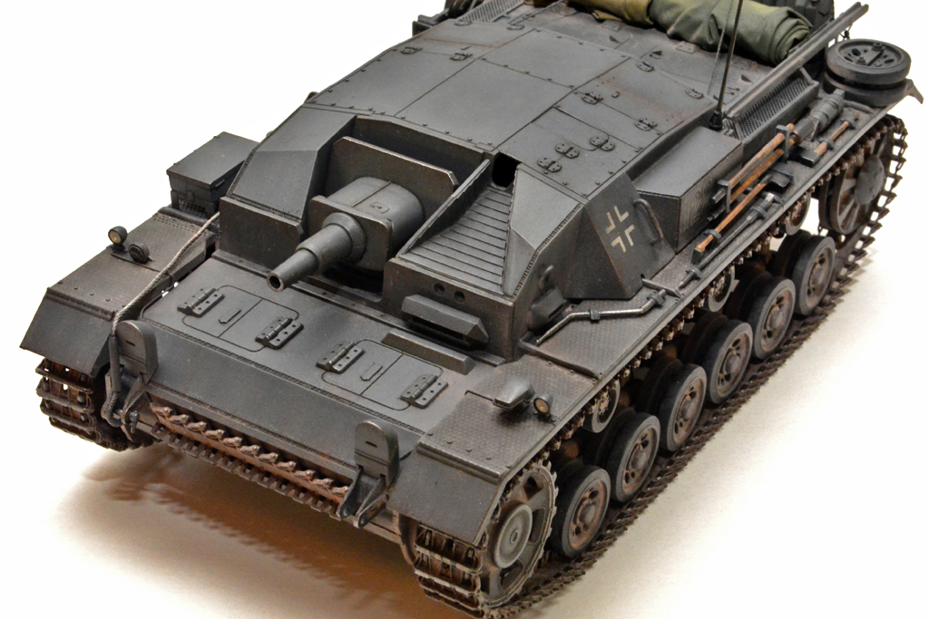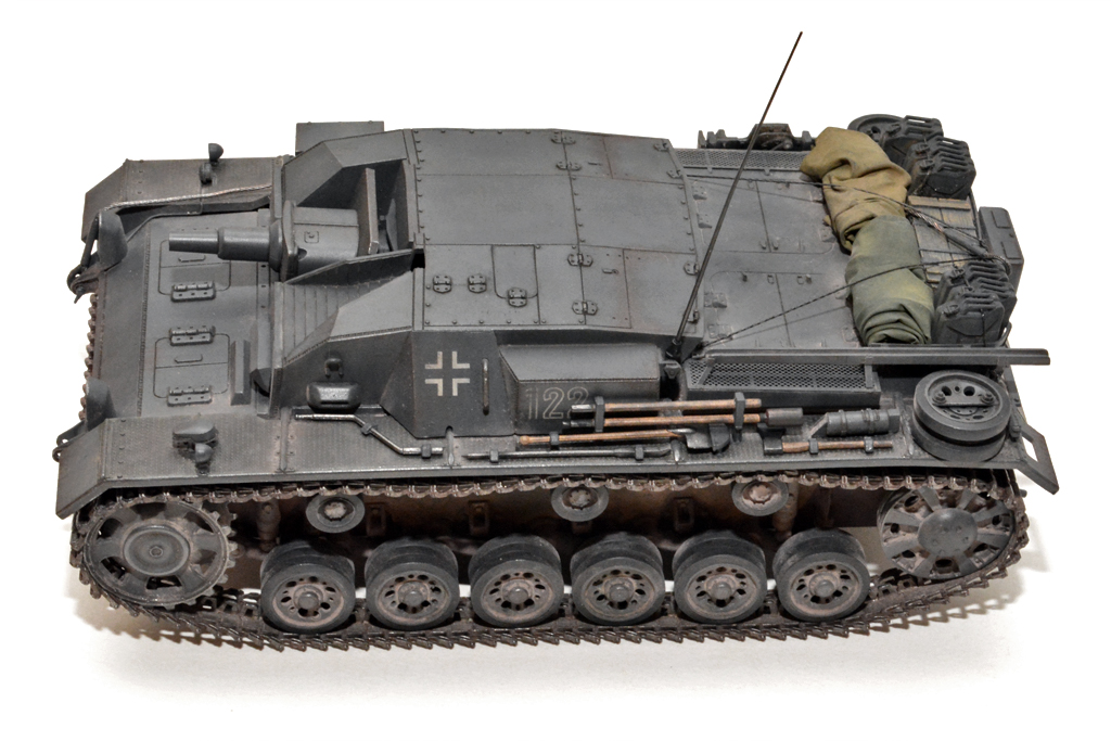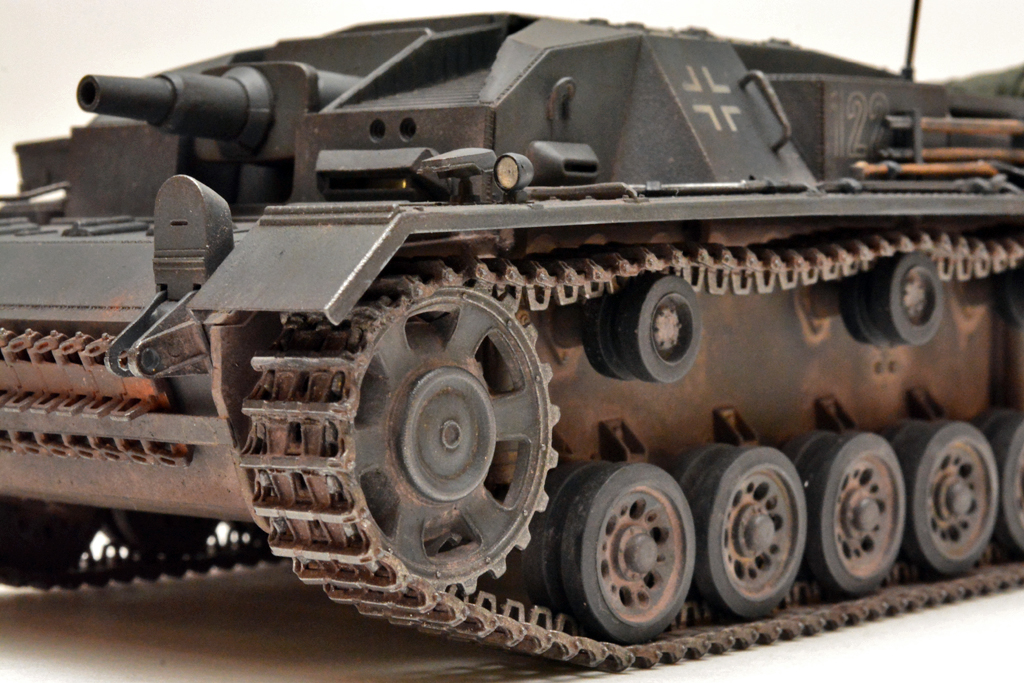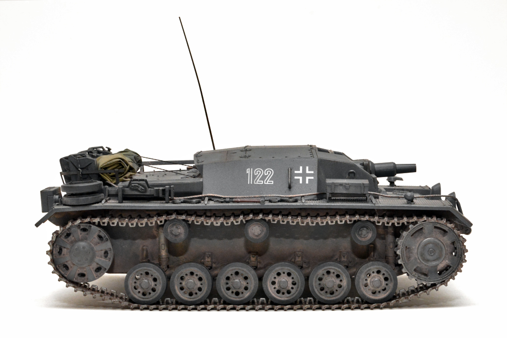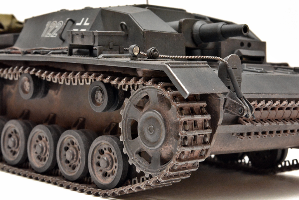 Представляю Вашему вниманию модель немецкой САУ начального периода WWII - StuG.III Ausf.B. Сборка велась из набора Cyber-hobby (Dragon) №9132, который позволяет воспроизвести поздний вариант данной самоходки. Набор, как по мне, вполне приличного качества. Проблем в процессе стройки не возникло. В плане матчасти сверялся с материалами из книг серии "Военные машины", посвященных данной САУ. Сильно не углублялся, но показалось, что набор вполне себе копийный. Поэтому собирал "из коробки". Для "оживляжа" использовал следующие дополнения: