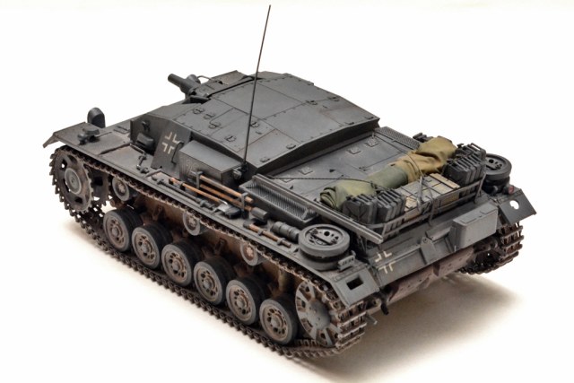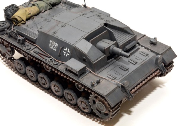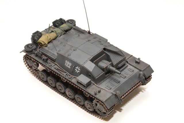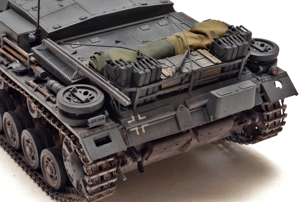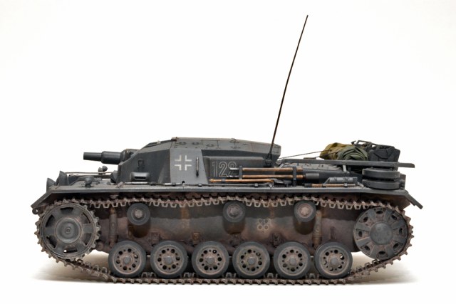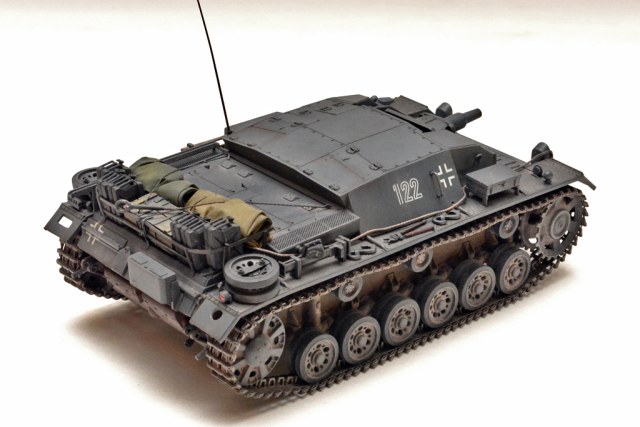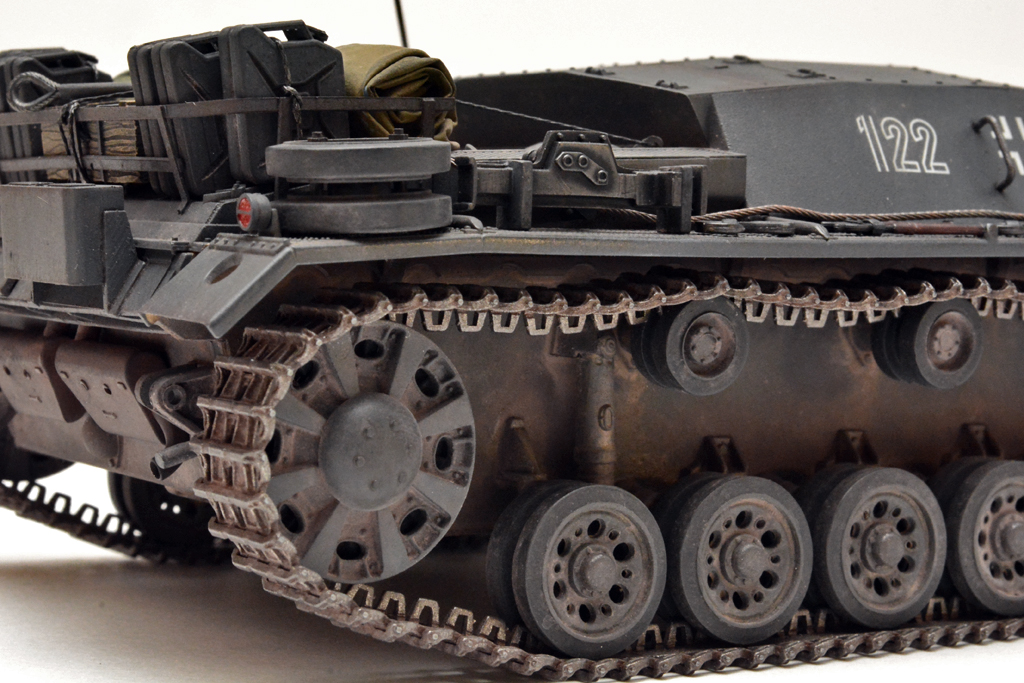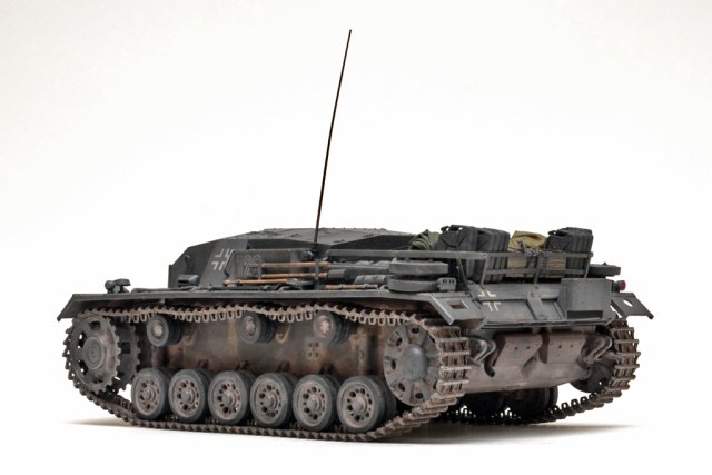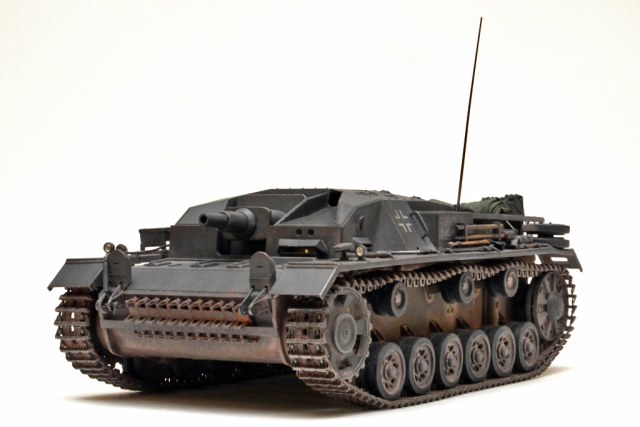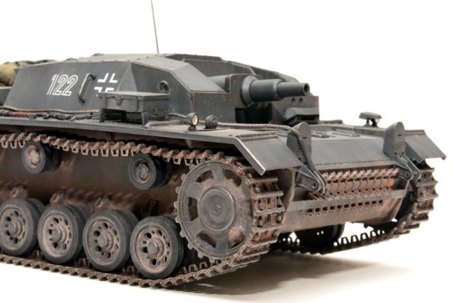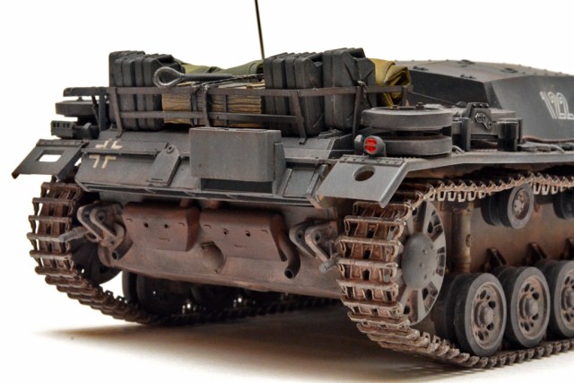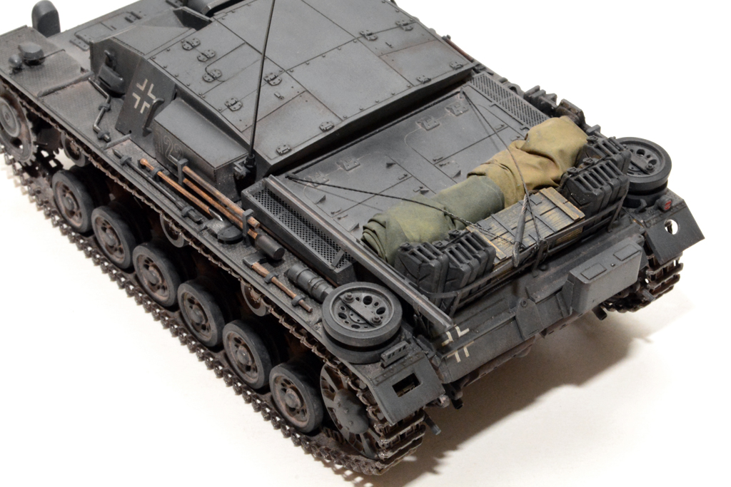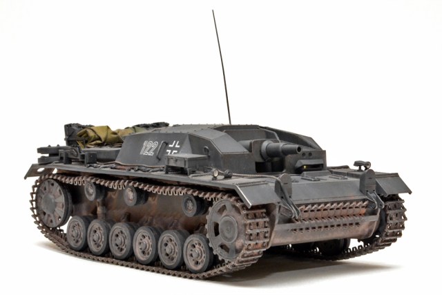 Представляю Вашему вниманию модель немецкой САУ начального периода WWII - StuG.III Ausf.B. Сборка велась из набора Cyber-hobby (Dragon) №9132, который позволяет воспроизвести поздний вариант данной самоходки. Набор, как по мне, вполне приличного качества. Проблем в процессе стройки не возникло. В плане матчасти сверялся с материалами из книг серии "Военные машины", посвященных данной САУ. Сильно не углублялся, но показалось, что набор вполне себе копийный. Поэтому собирал "из коробки". Для "оживляжа" использовал следующие дополнения: