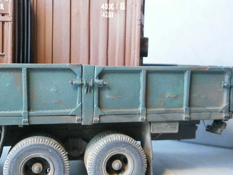 Приветствую,каропчане! Очень долго хотел такой грузовик себе на полку и при первой возможности я немного переделал и переобул лаптёжника. Всё прошло гладко,лишь покраска потрепала нервы. Из-за большой влажности краска никак нехотела приставать к поверхностям. Контейнеры от Castomfactory. Не проходите мимо!