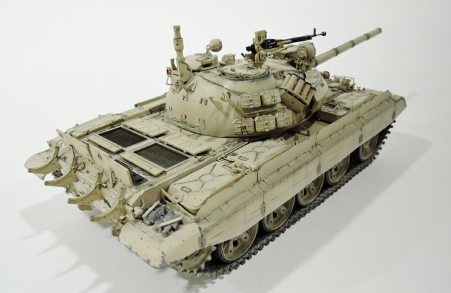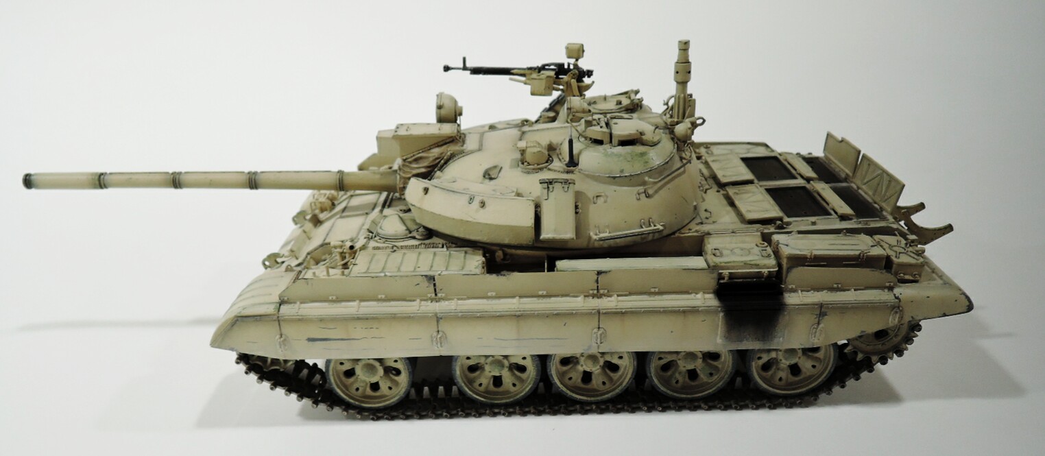Очередная модель на полку! На этот раз это Т-55АМ2 армии Йемена,машина отличается от стандартных АМ2Б рядом деталей,это отсутствие КУВ ,расположение ящиков на надгусеничных полках тоже отличается,ну и ряд других мелких отличий.