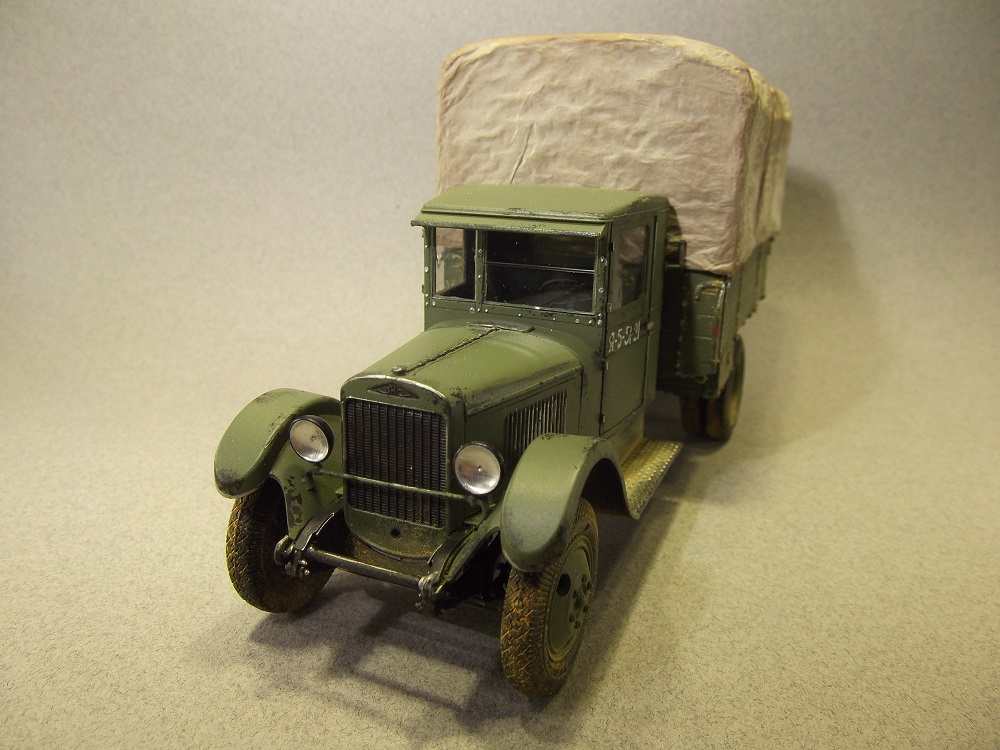 Модель сама по себе хороша!Тент сам делал из бумаги,и тоже столкнулся с проблемой не прокраса бумаги ! Я исправил это несколькими слоями краски и он стал нужного цвета! А вот с крыльями беда, сидят не на своем месте из за такого положения автомобили спереди смотреться буд-то вздернутым вверх.Ничего ! Более тонкая подгонка дала бы свой результат! Успехов в творчестве!