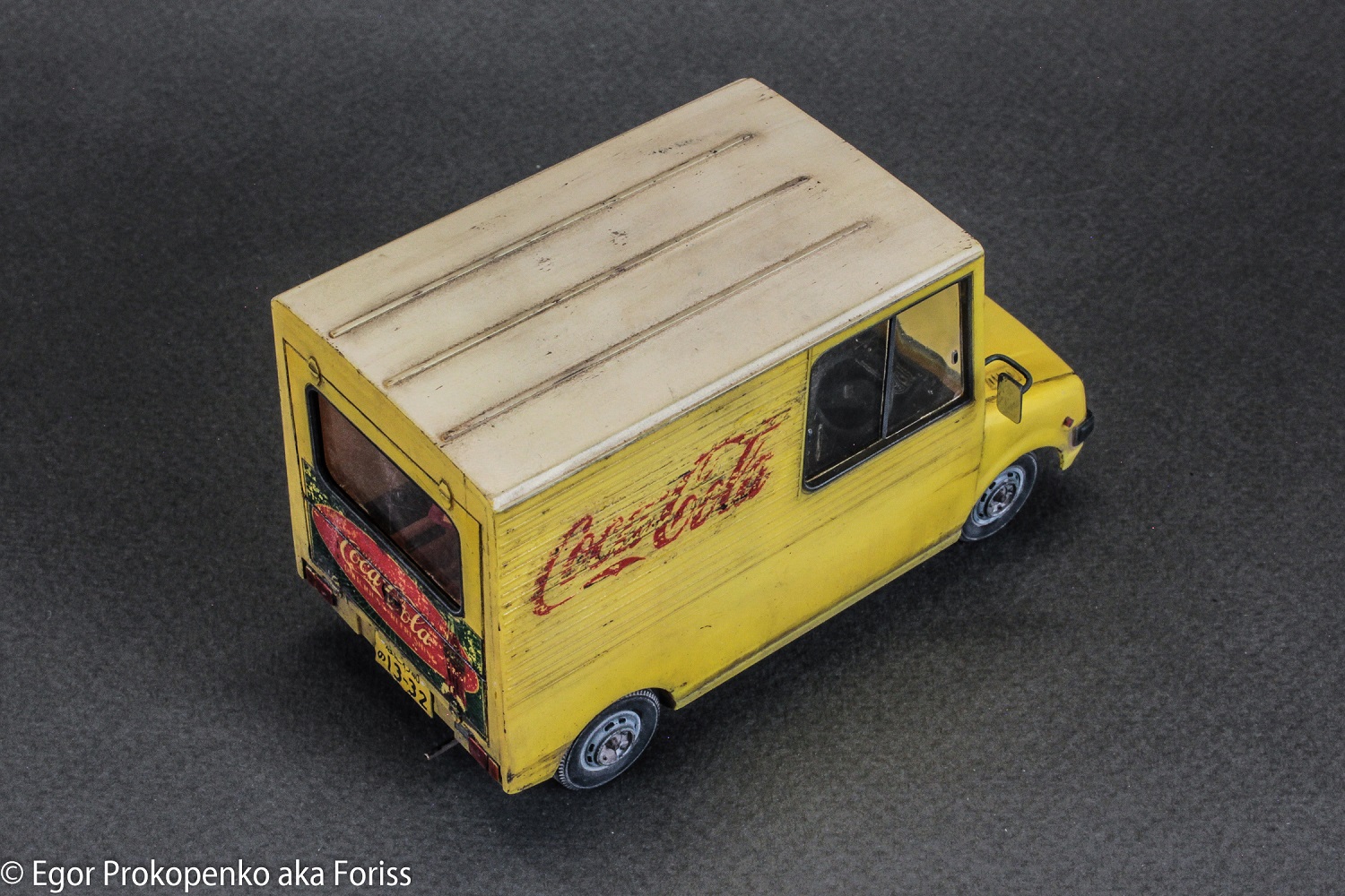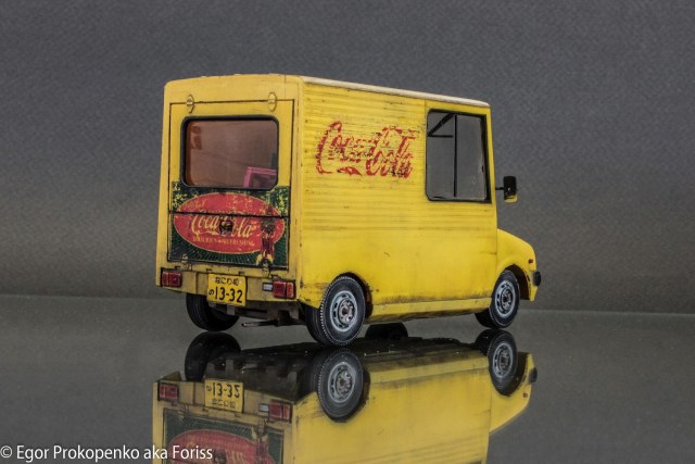 С моделями данной фирмы в 1/32 масштабе я столкнулся случайно, находясь в Японии. Эти несуразная машинка приглянулись мне сразу, и как следствие вот такой, на мой взгляд, забавный результат. Масштаб 1/32 очень схож с 1/35, а учитывая размер машинки (около 10 см), разница с 1/35 будет несколько миллиметров.