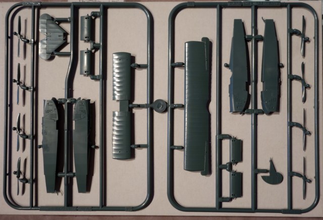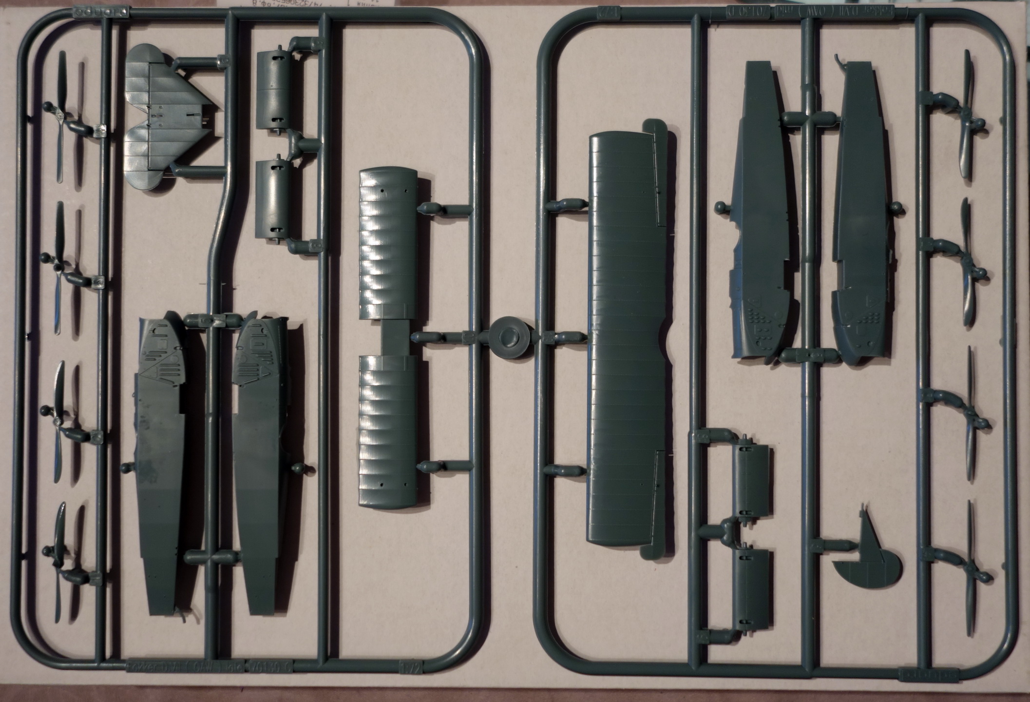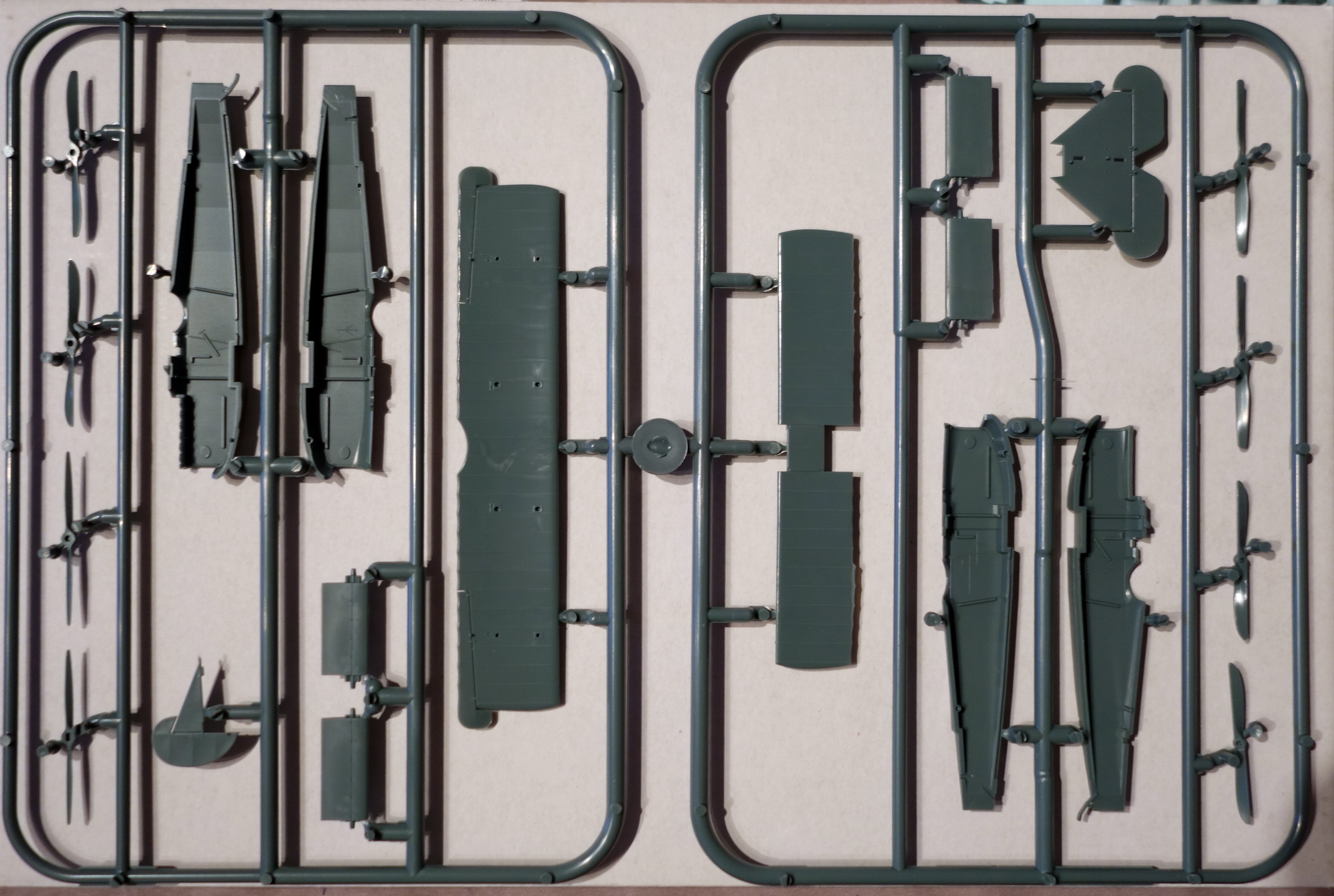 В наборе литники из серого пластика, одно цветное фототравление, маска на колеса, 2 декали на 5 вариантов окраски, цветная книжка. Мне не хватает пилота, а так достойный набор.