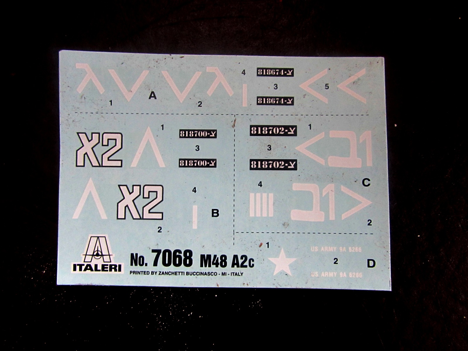 Модель упакована в коробку стандартного для этого масштаба размеров. Внутри - запечатанный пакетик с деталями, декаль и стандартная для Italeri инструкция.