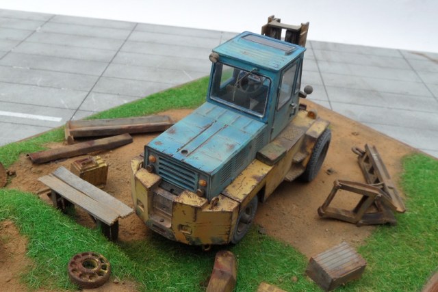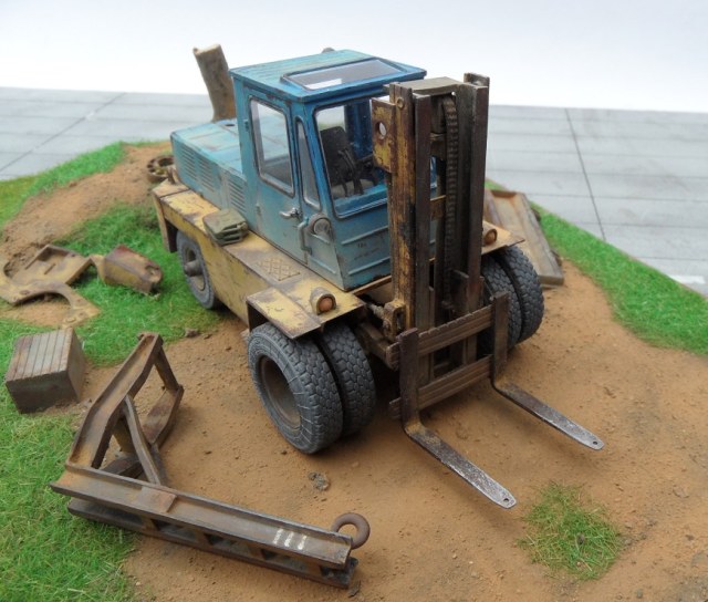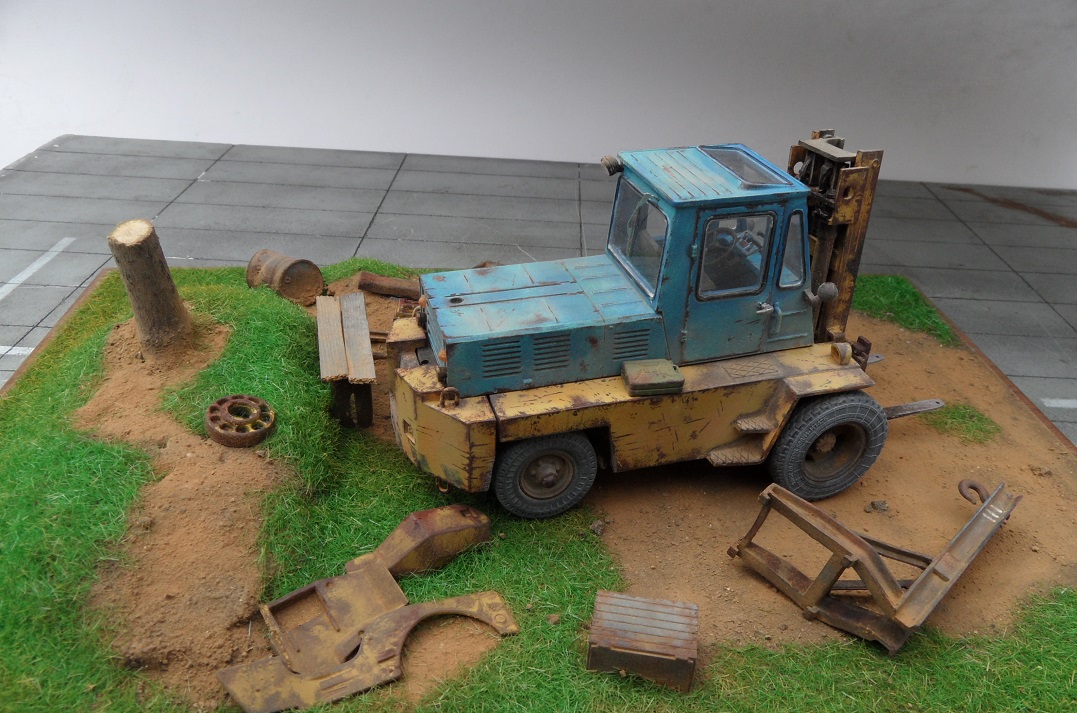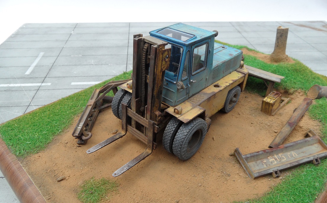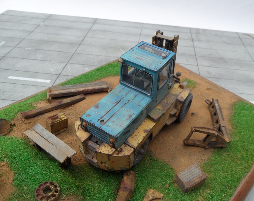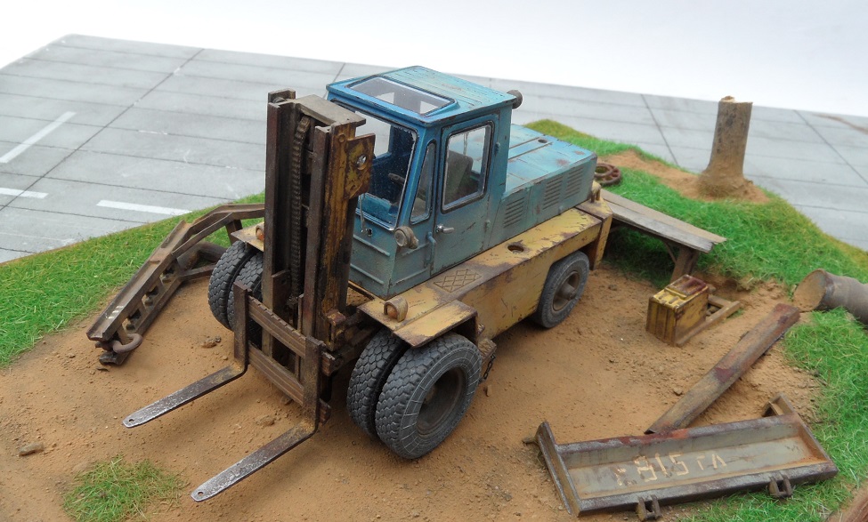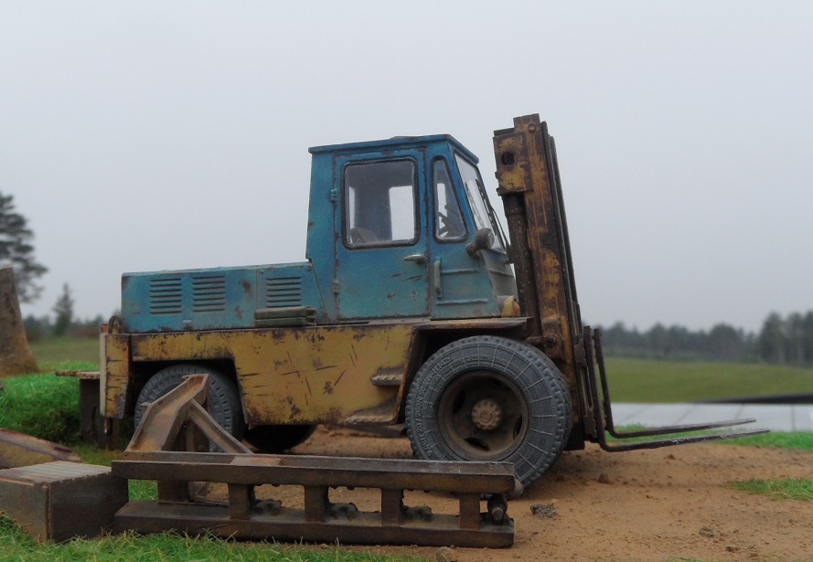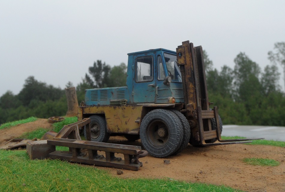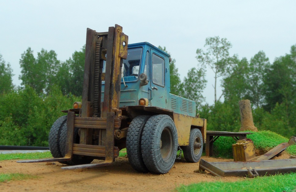 модель действительно обалденная!) но как человек видящий такие регулярно в порту сделаю одно замечание - резина обязательно должна быть если и не лысой, то уж никак не с таким протектором) старые погрузчики убитые и убиваются, никто на них новую резину ставить не будет. в чем легко убедиться даже просто загуглив картинки по запросу "АП-4014"