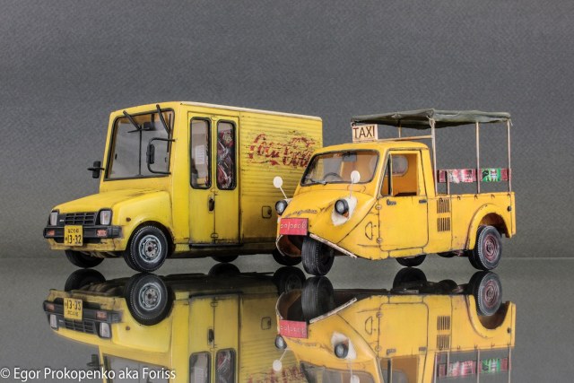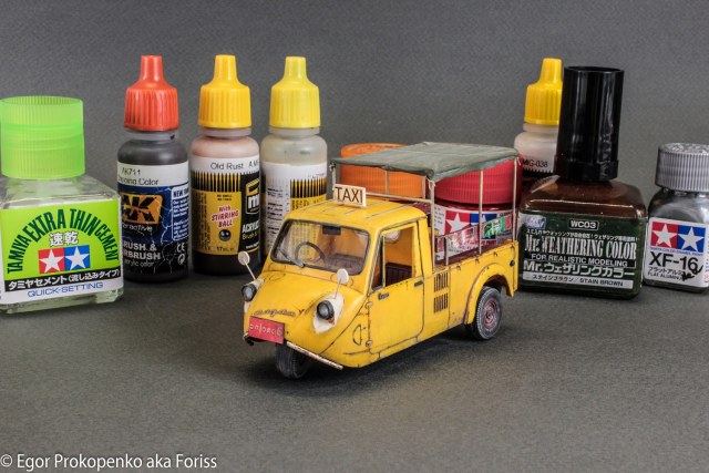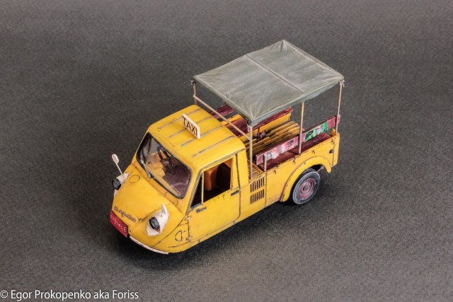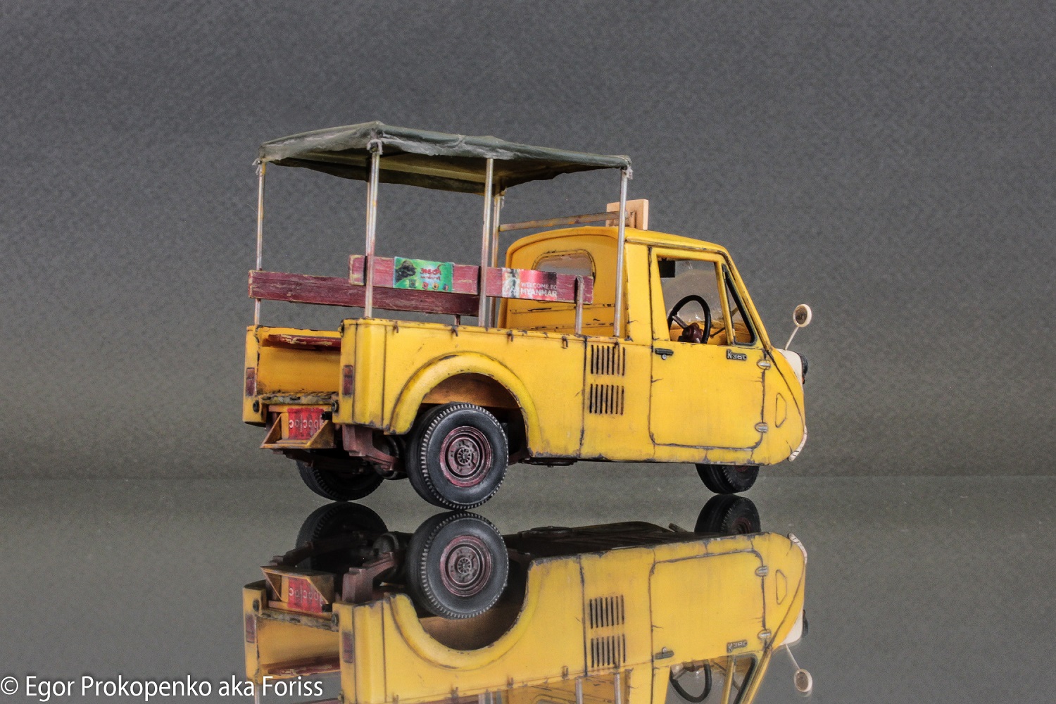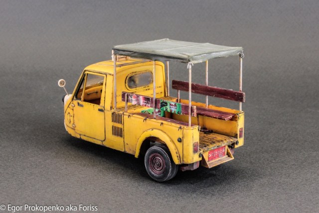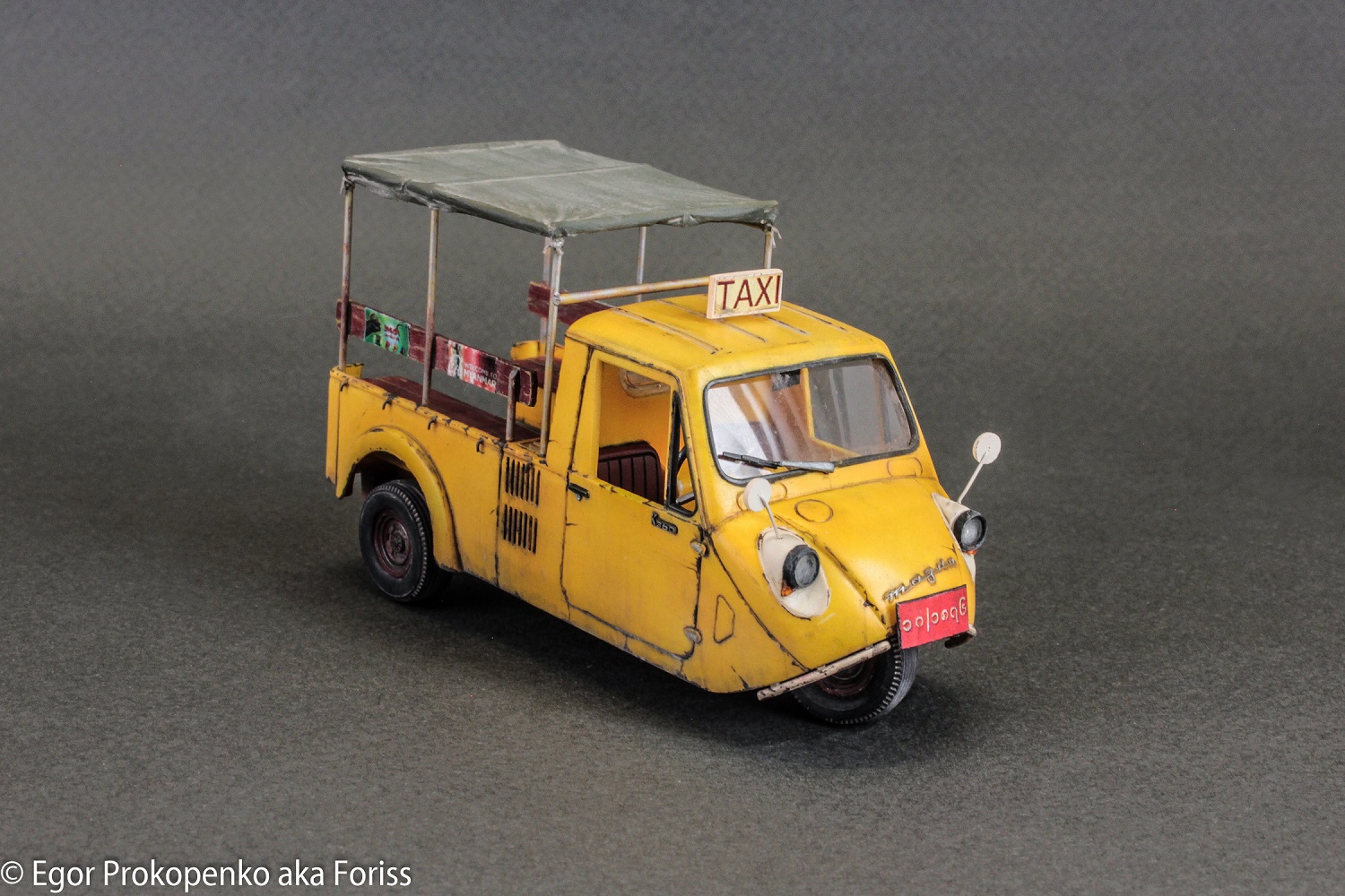 Сам набор не предусматривает какого-то интересного прототипа, поэтому на помощь пришел интернет, и как результат – такси в Мьянме. Я так понимаю, туда ввозились японские варианты, а позже там было налажено местное производство этих автомобилей с незначительными отличиями, но как показывает интернет они там эксплуатируются до сих пор, в качестве маршрутки!