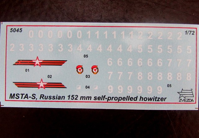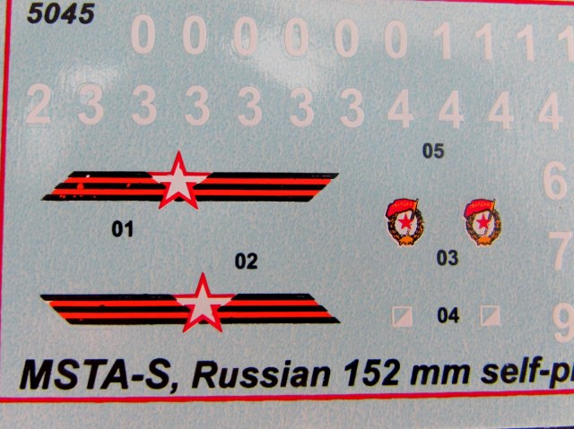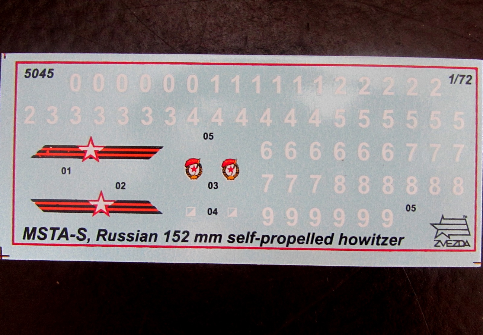 Декаль под парадную машину + набор циферок. Впервые в своем масштабе (но не впервые в последних моделях Звезды) вижу, что декаль не пропечаталась (До этого видел такое же на СУ-27, купленной другом). Также впервые декаль напечатана на какой-то совсем ужасной бумаге, от одного взгляда на которую делается стыдно. Где же традиционно высочайшее качество декалей?