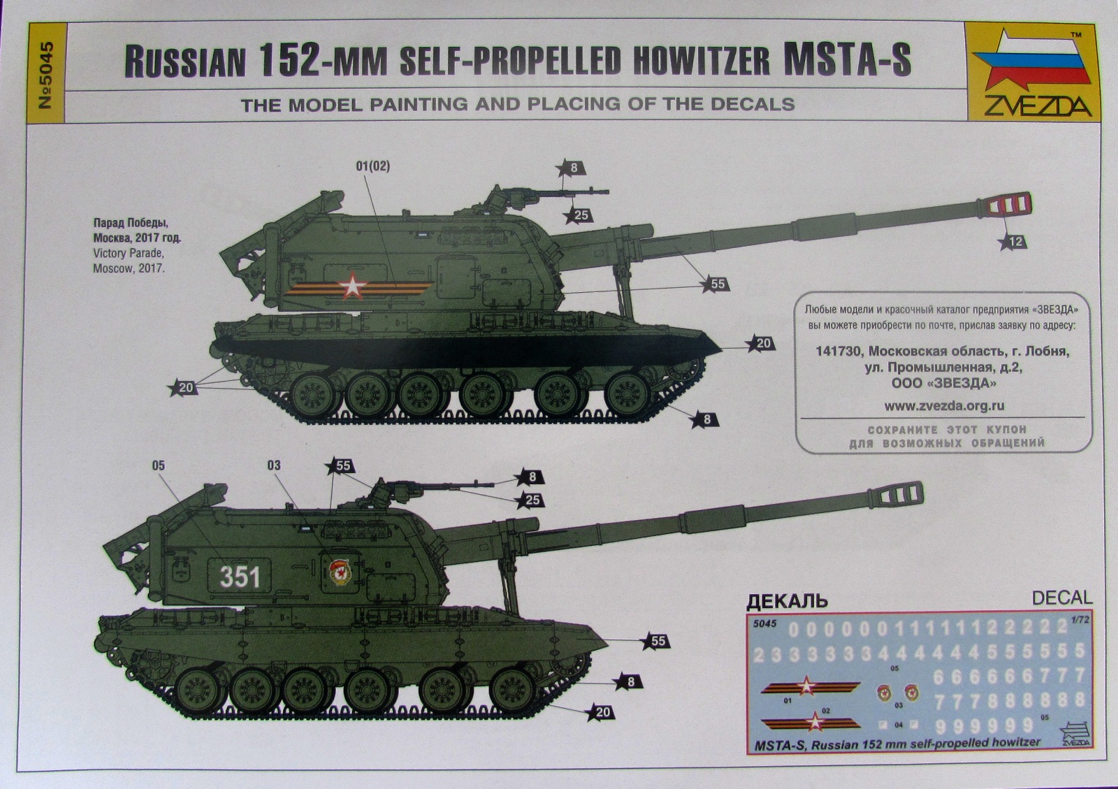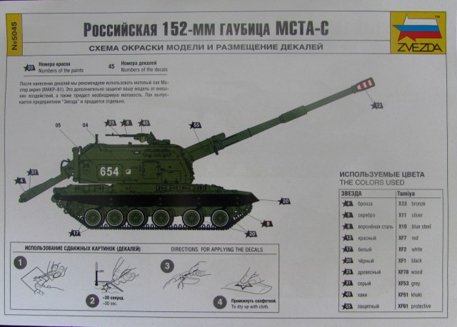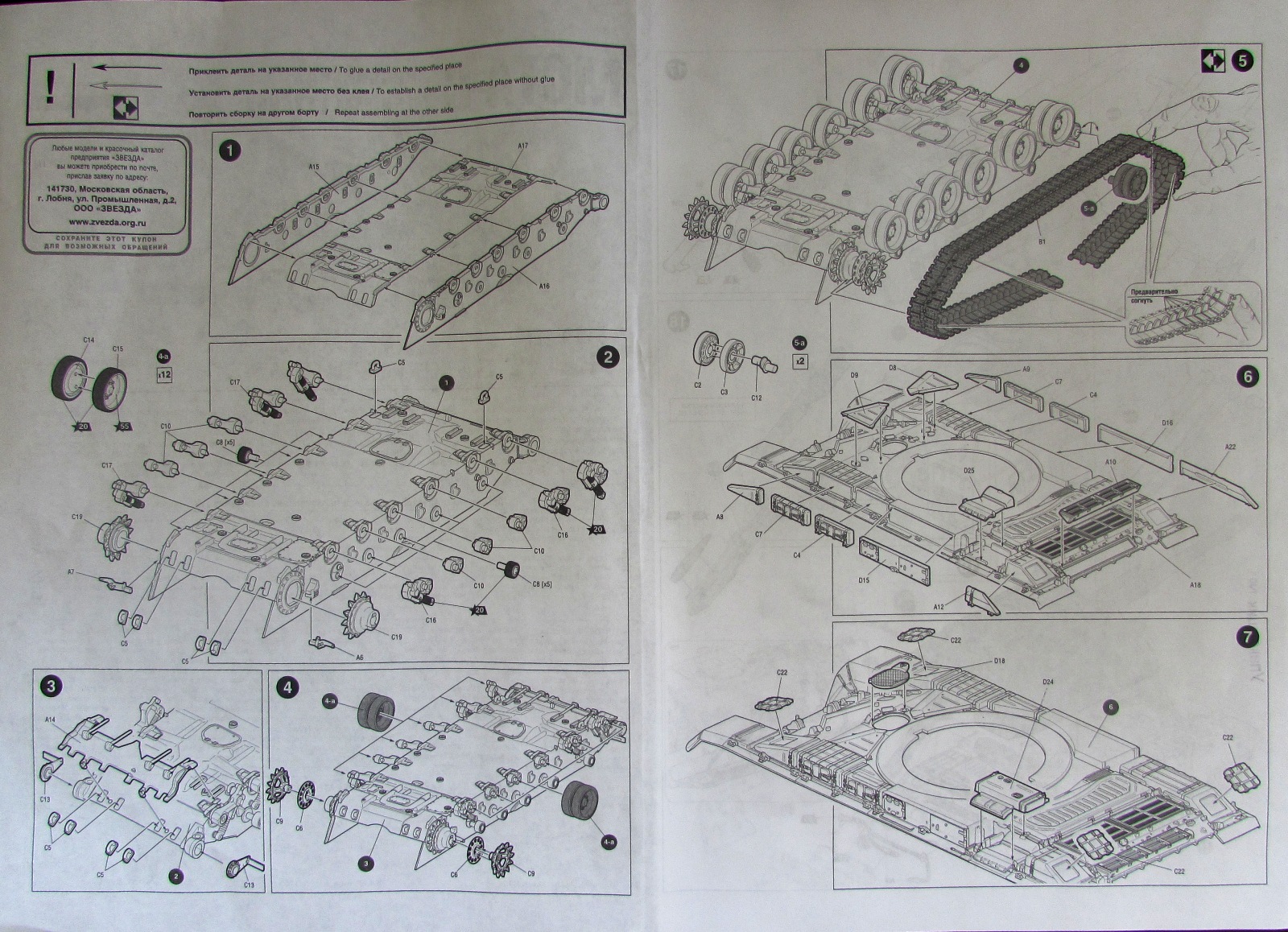 Инструкция стандартная для Звезды, книжкой-гармошкой. Видимо, сделать 3Д-развертку на мелованной бумаге (что, кстати, стал делать Моделист на перепаках Италери, представляете!) для фирмы явно неподъемная задача.