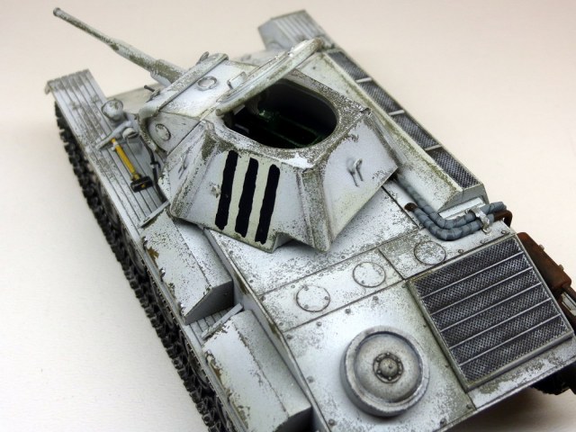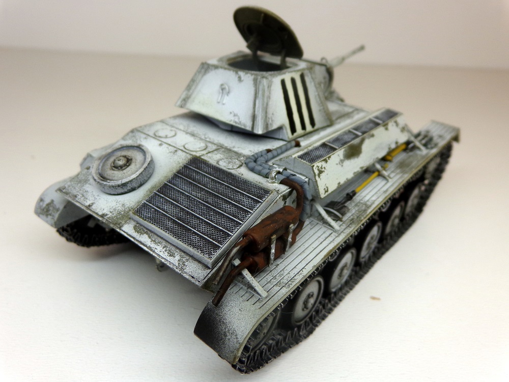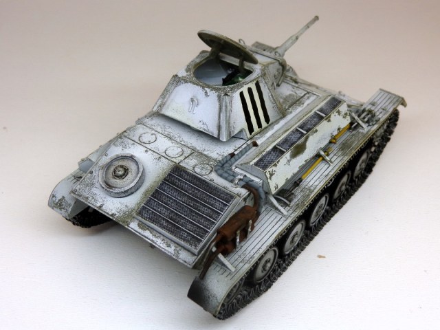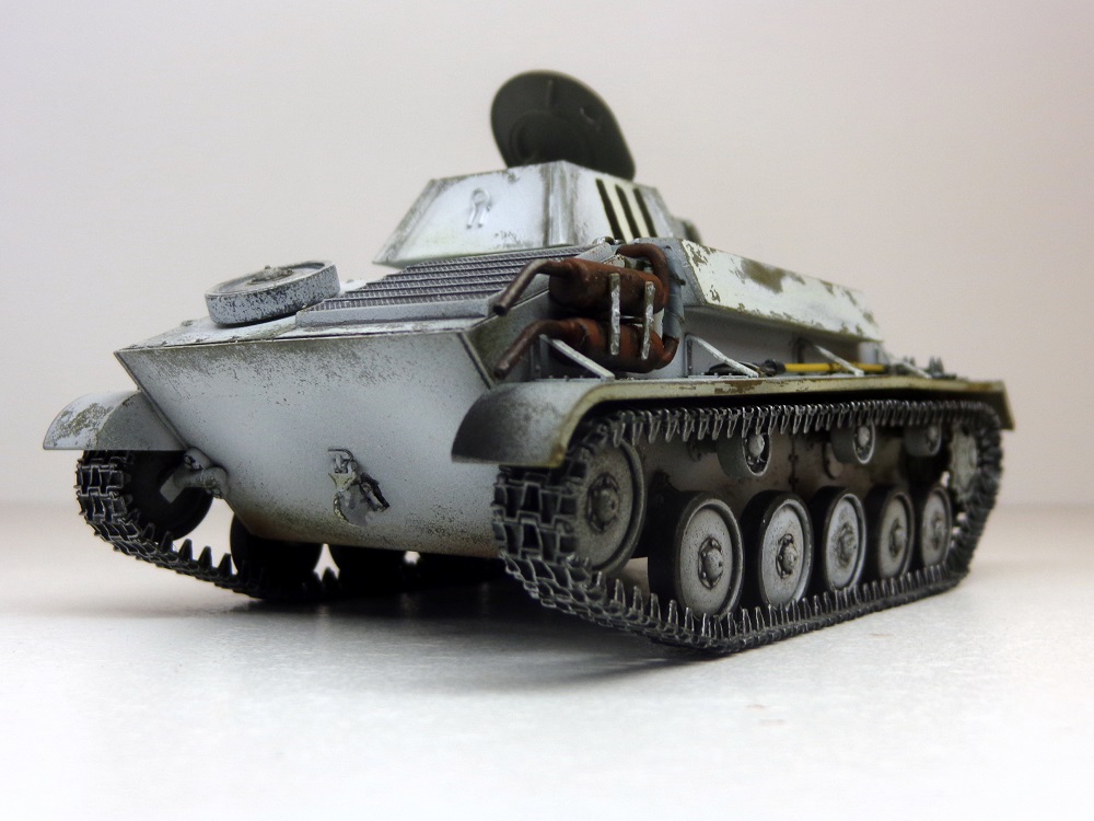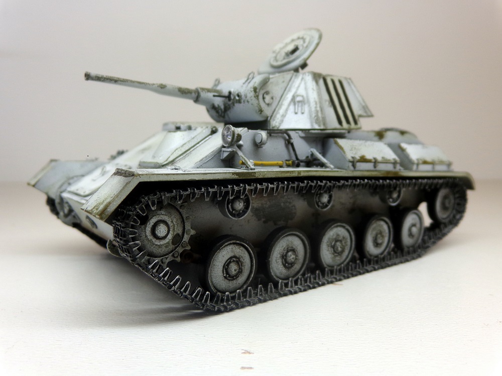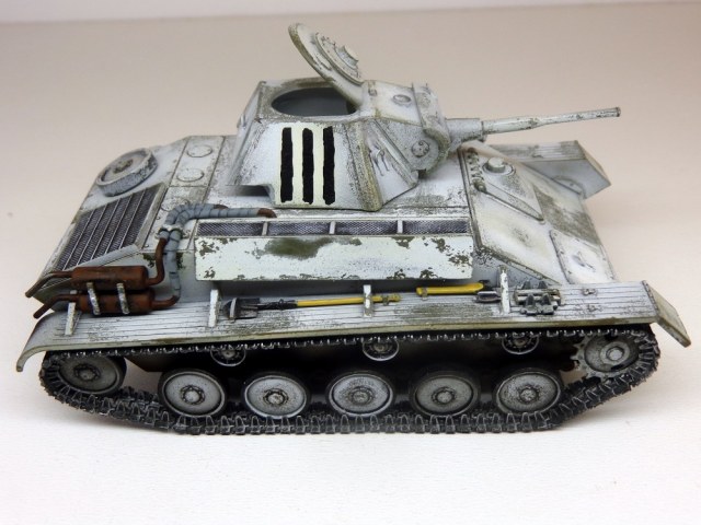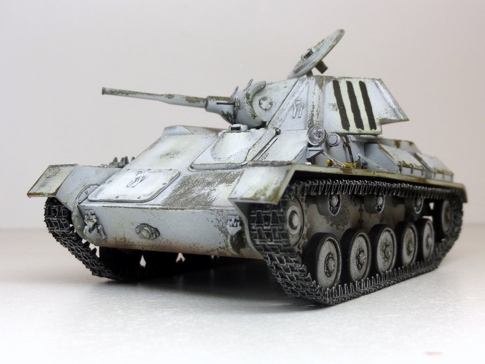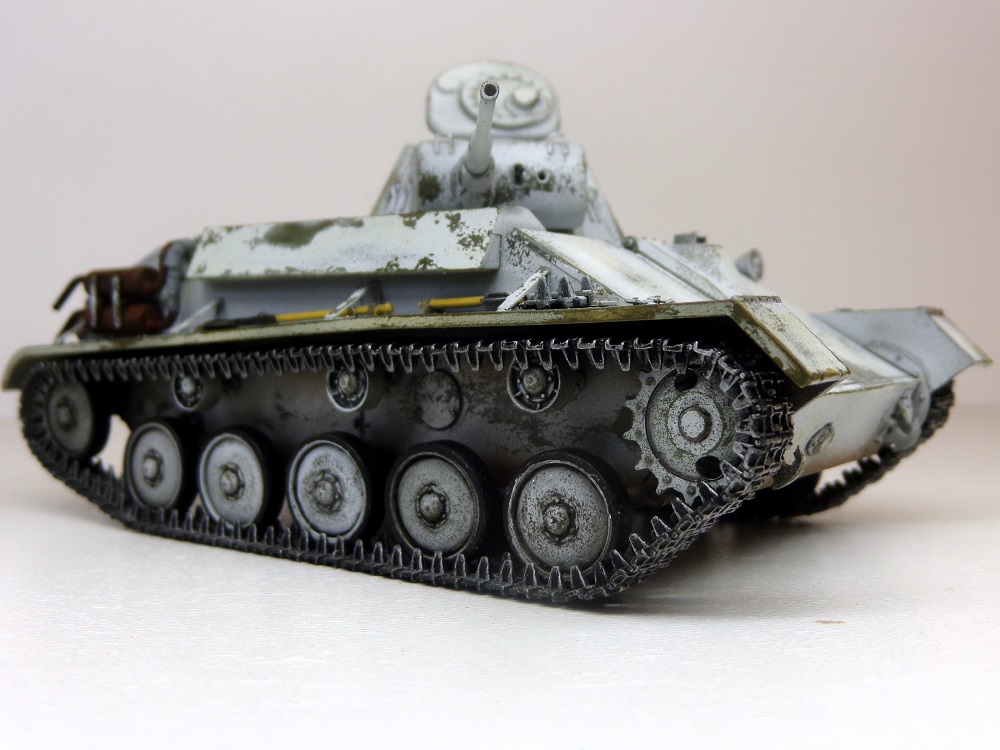 Присоединюсь к коллегам - модель галерейного уровня. ИМХО надо чуть поработать смывкой везде где ниже пояса и там, где обдиринг делали , тогда белый будет смотреться именно как потертый, а не как свежеободранный и яркость полос ОЗ на башне тоже приглушится. Ну и потеков топлива добавить. С уважением.