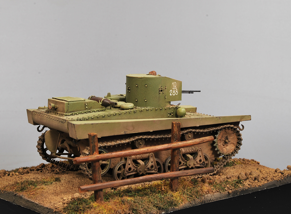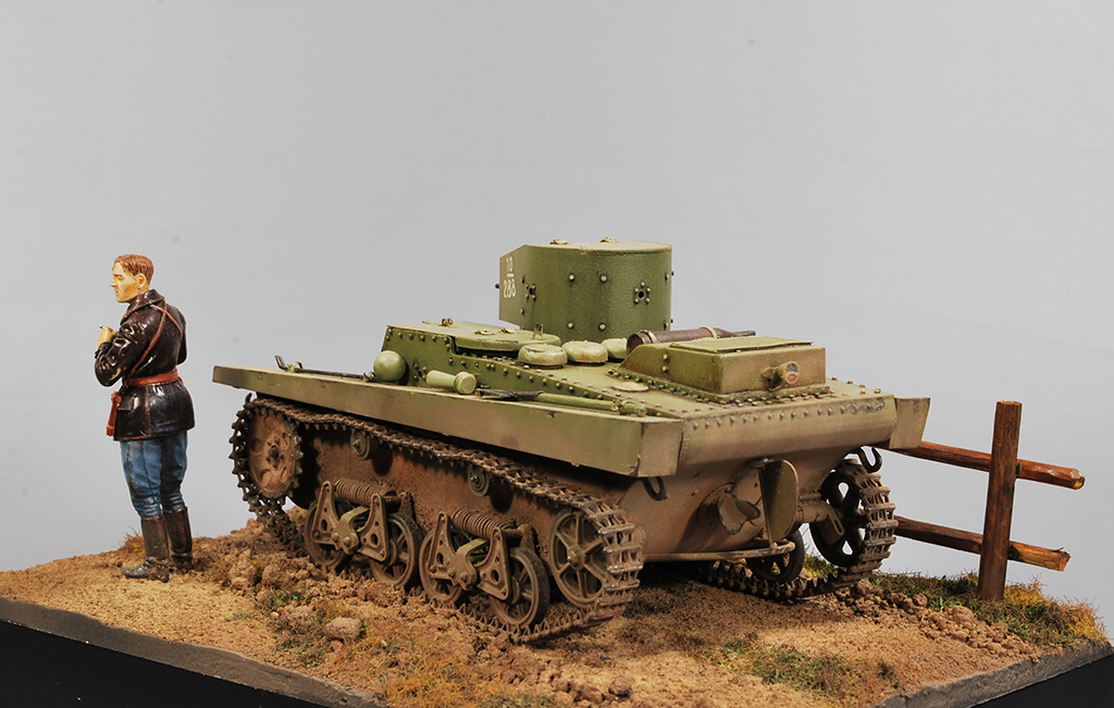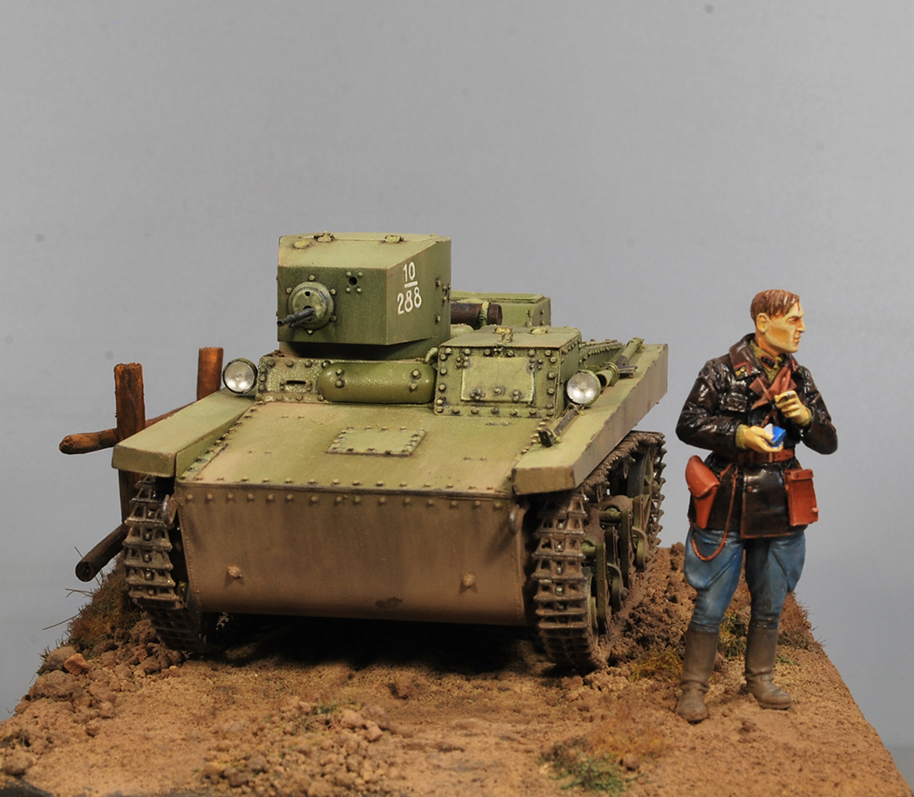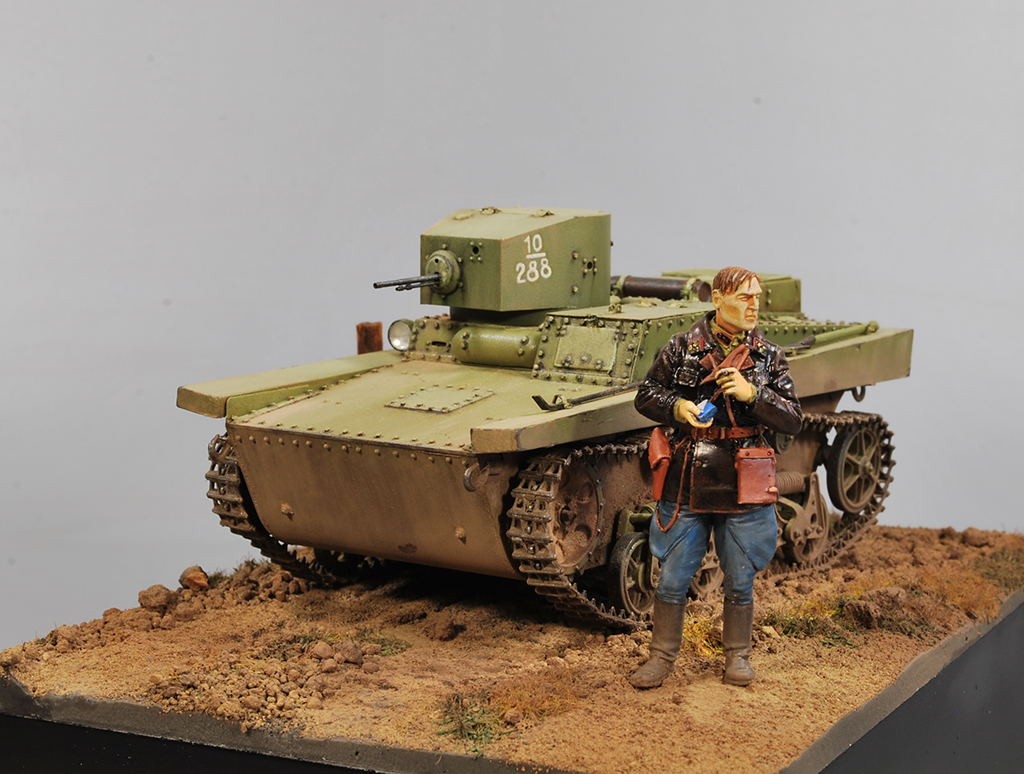 Ну вот , вроде бы всё с Т-37 от Hobby Boss. Модель встала на подставку и обзавелась фигуркой от Эволюшен.