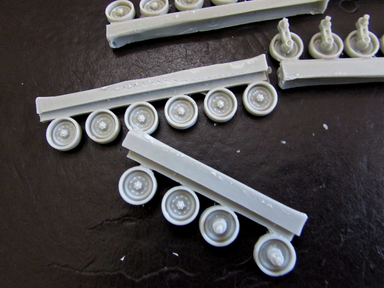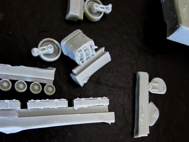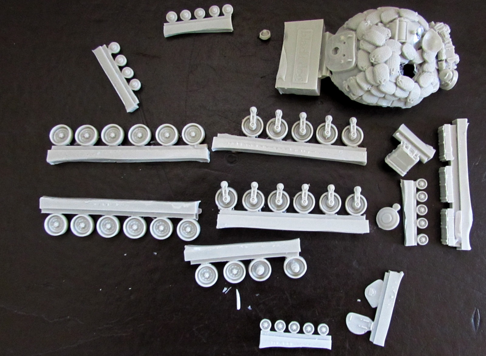 Отлита поприличнее, чем башня - но все равно корявенько. Балансиры отлиты вместе с внутренней половиной катка - и отлиты так что при поклейке каток будет стоять криво, под углом. Гнуть же детали из смолы не самого лучшего качества - то еще занятие. В общем и целом, обе конверсии, конечно, интересные - но такого качества, что сто раз подумаешь, прежде чем купить.