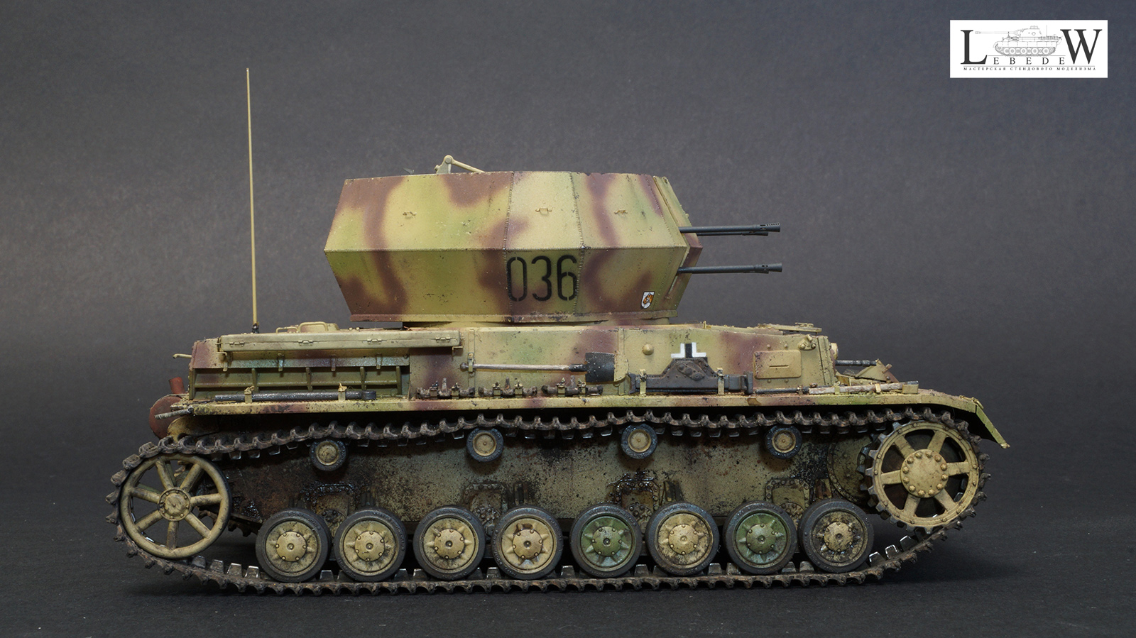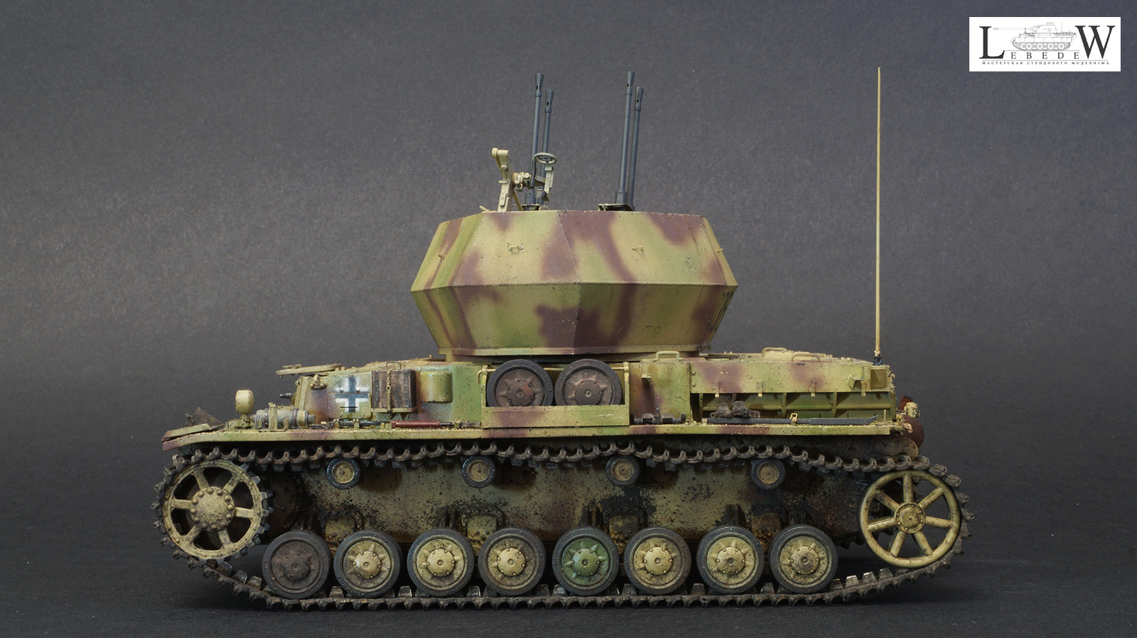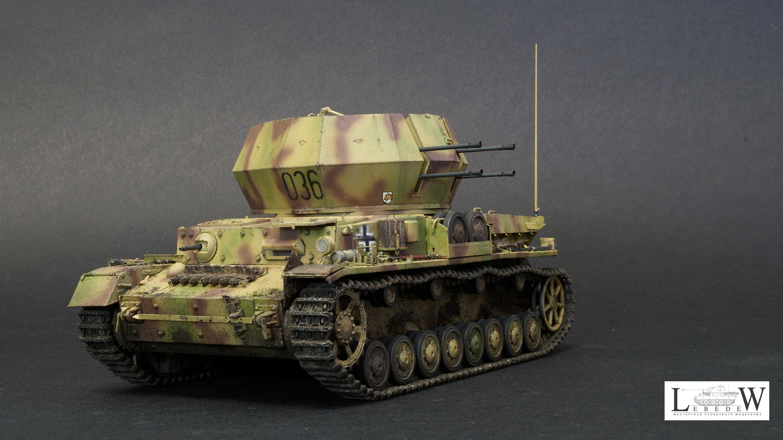 Представляю вашему вниманию зенитную установку Wirbtlwind (Вихрь) на базе Pzkpfw IV. Данная модификация была запущена в 1943 году, выпущено было примерно 122 шт. Боевое применение было направлено как на воздушные цели, так и на наземные. Машина оснащалась 20 мм четырёхствольной установкой Flakvierling 38. Минус этой установки был в том, что она могла бороться только с низколетящими целями.