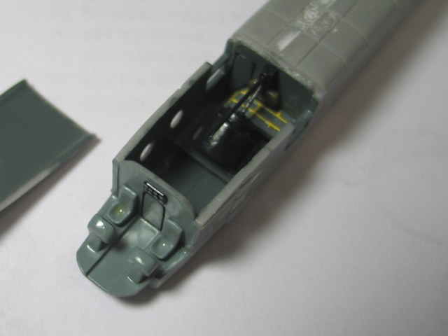 2. В пилотской кабине добавлены 4 рычага управления, две пары педалей и две дополнительные приборные доски. Ввиду малого масштаба, приборы на пультах сымитированы серебристыми точками.