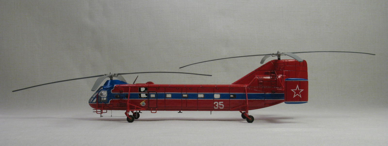 Учитывая масштаб и исходник, модель получилась отличная. Красная окраска, придала оригинальность. Если появится ЯК-24 в 1/72, возможно сделаю точно такой же.