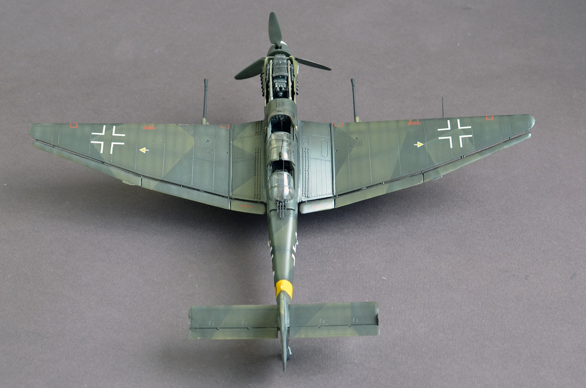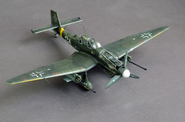Из эффектов эксплуатации смывка, выхлоп. Сколы и потертости не стал делать, так как на немцах краска держалась хорошо, а главное, Рудель(это его борт) до сколов не летал. Сбивали его более 30 раз.