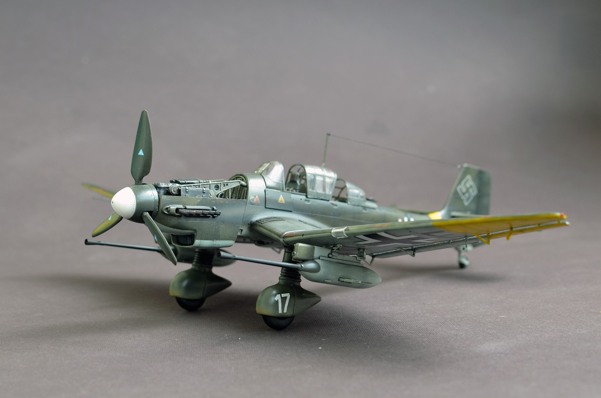 Italeri 1/48 Ju-87 G2. Практически изкоробка. Добавил только металлические стволы и выхлоп Rexx, а так же накатал клепку и натянул антенну.