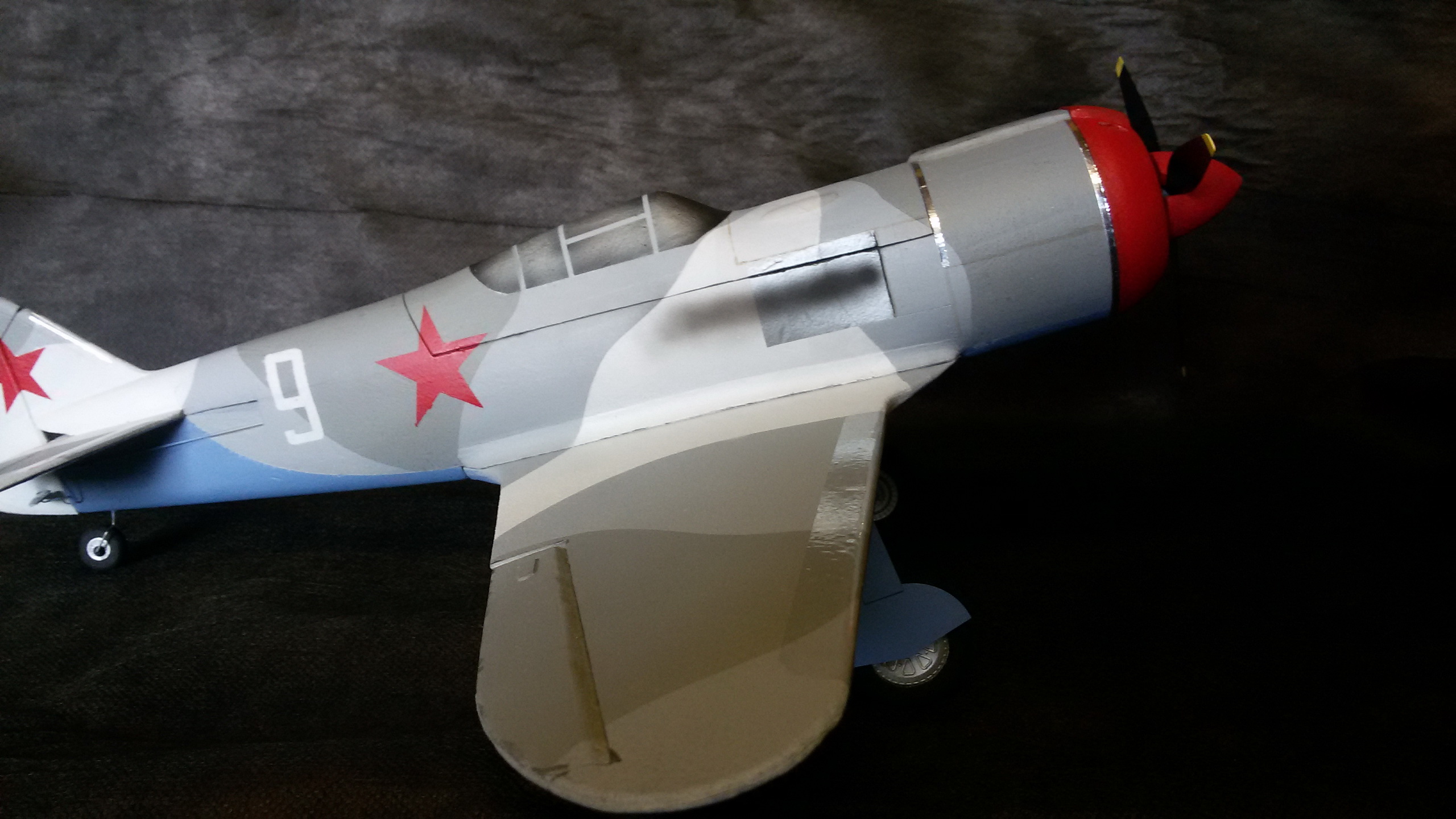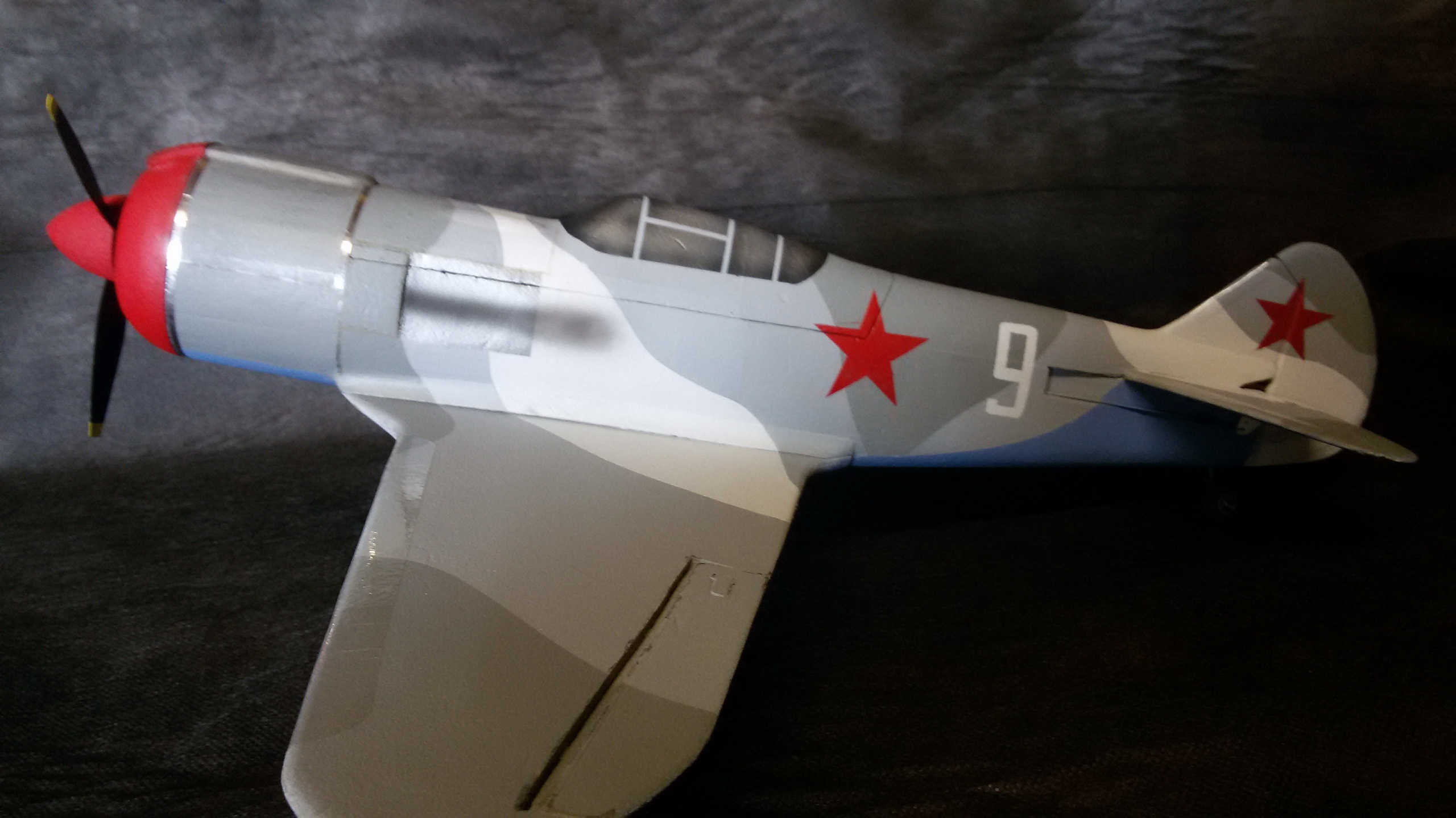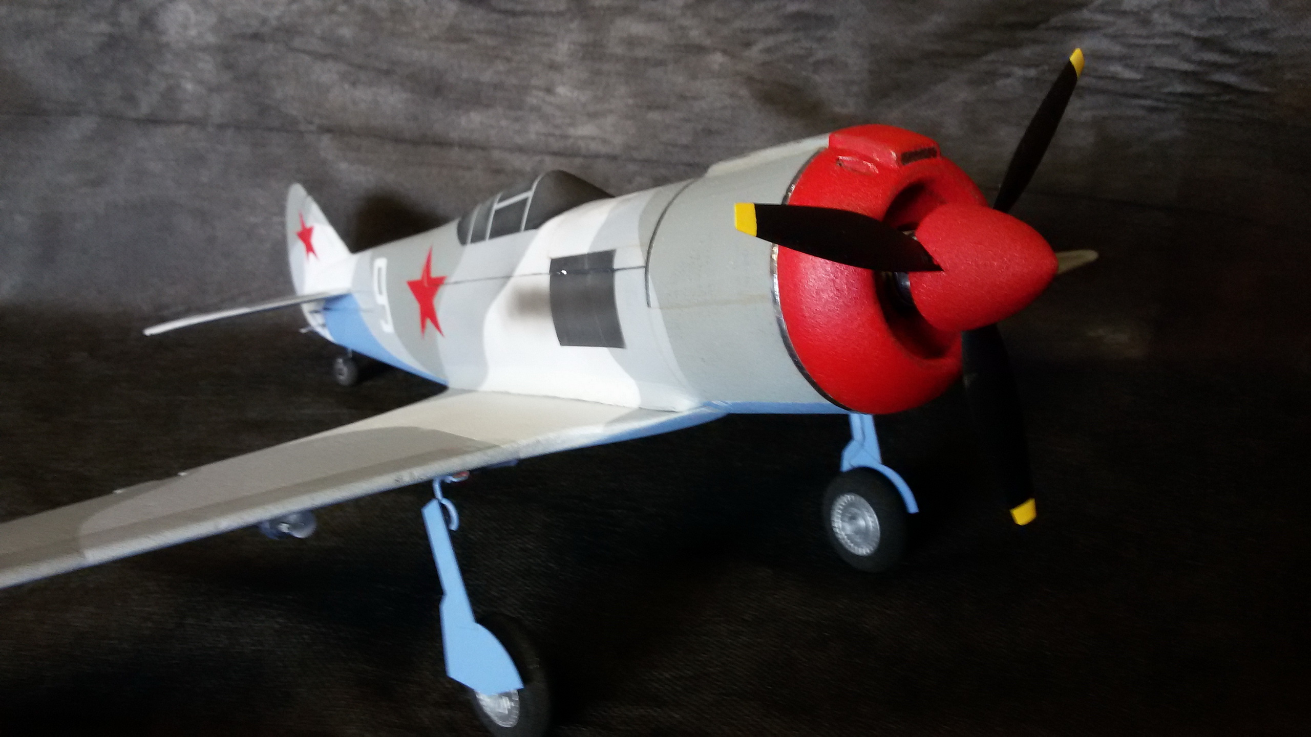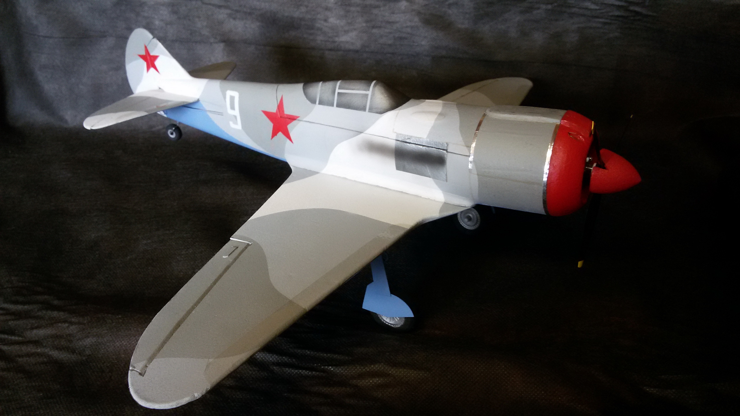 Радиоуправляемый самолёт Ла-5ФН. Изготовлен из пенофлекса, рассчитан на полёты на открытом воздухе, в безветренную погоду и в залах. Очень маневренный, лёгкий и прочный.