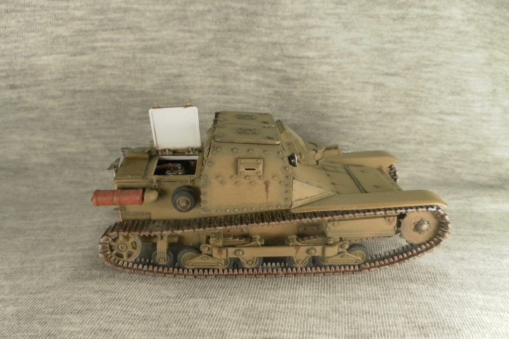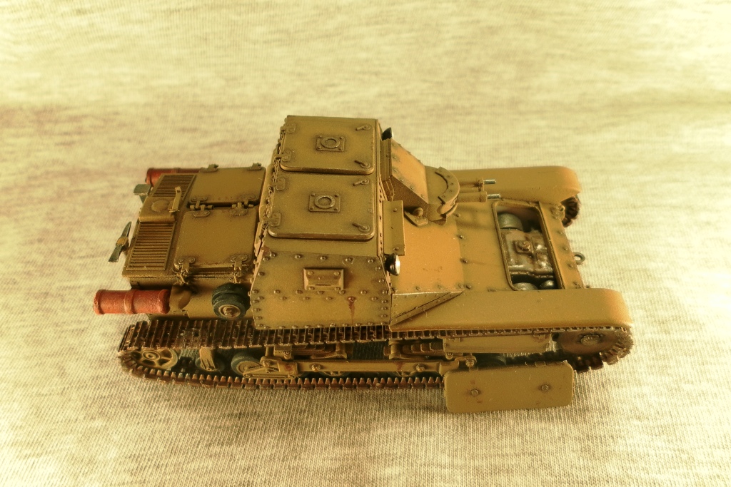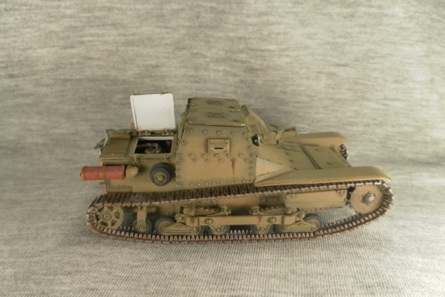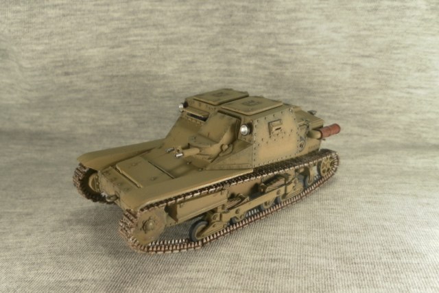 О косяке со щелями не знал, надо внимательнее фото смотреть... Такую окраску делал осознано. Рассматривал эту танкетку как участника войны в Испании. Судя по найденной мной информации не редко никаких опознавательных знаков на технике не было. Это правда хаки от Тамии. Мне этот цвет показался максимально близким к цвету на инструкции по окраске.