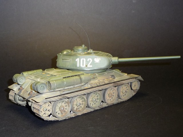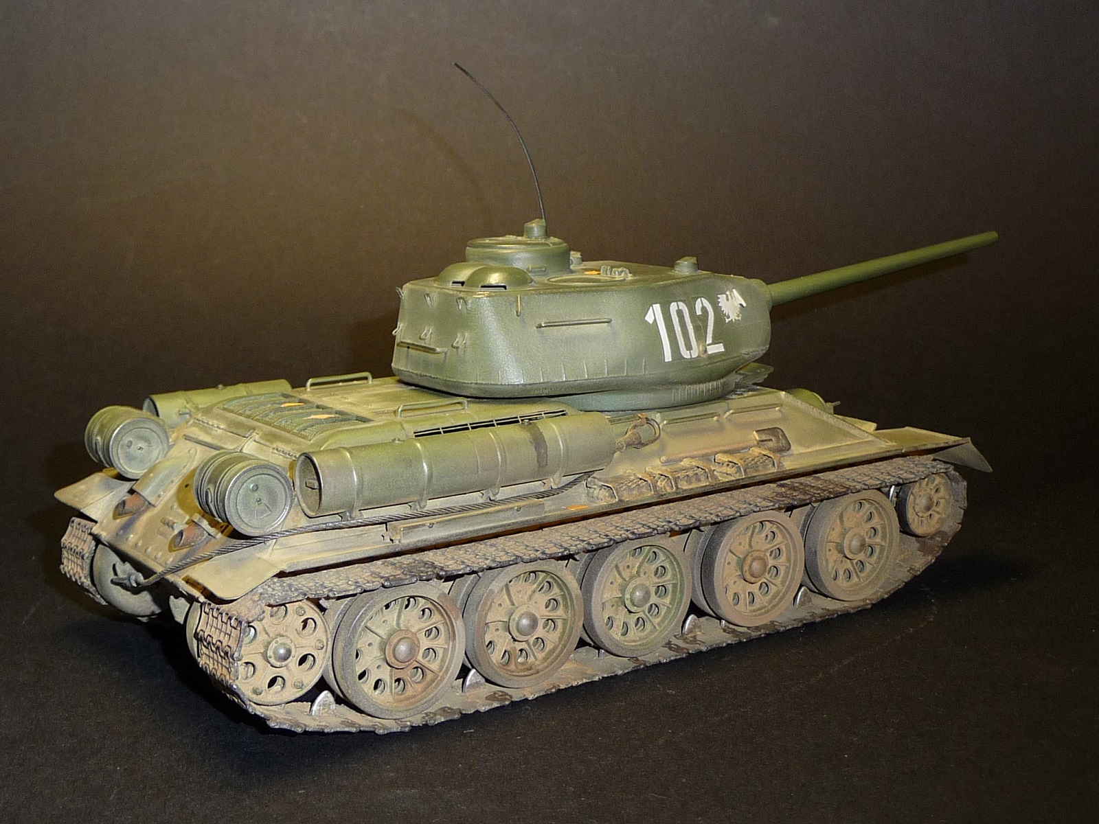 Из дополнений ставил тросы EUREKA XXL, Фару ELF, точеный ствол ABER. Заменил передние крылья и командирскую башенку на поздний вариант выпуска 1945г.
