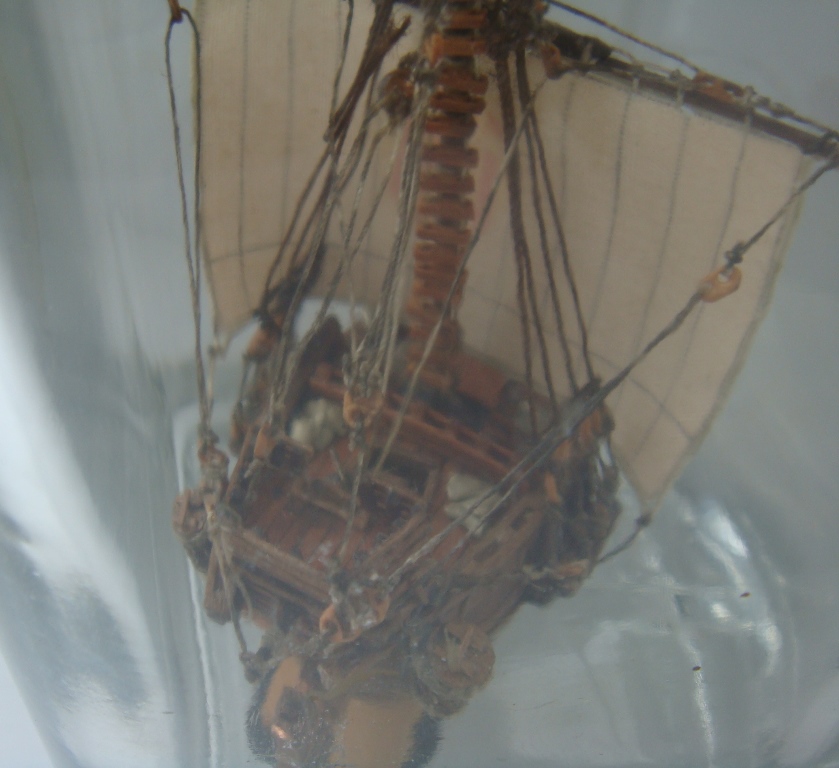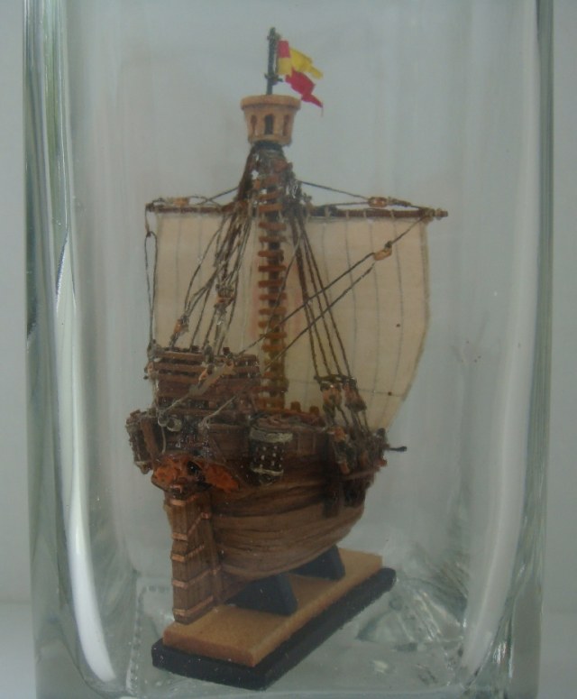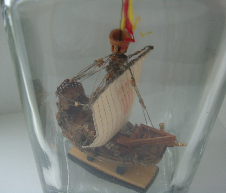 Так же переделал якоря (паял), добавил мелочевки на палубу (бочки, мешки, тюки). Носовые фигуры - крашеный пластик. Модель покрыта тунговым маслом.