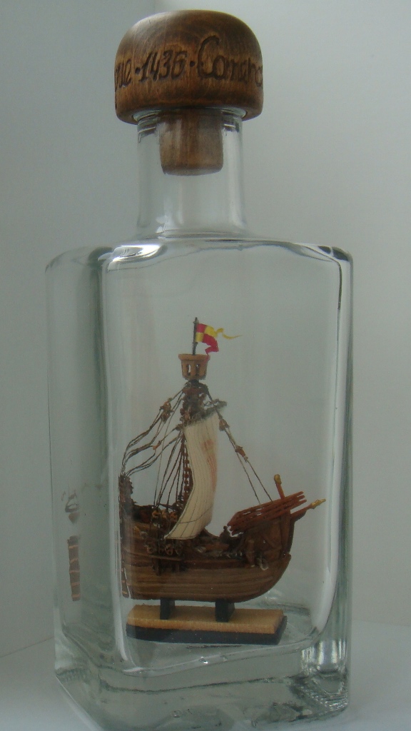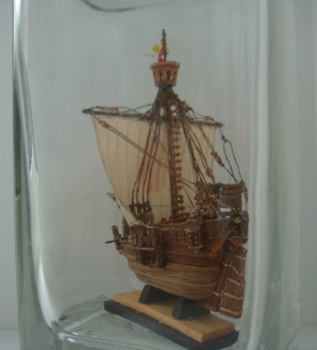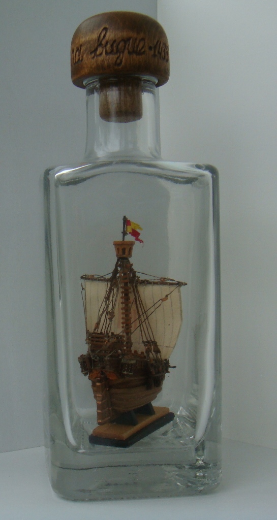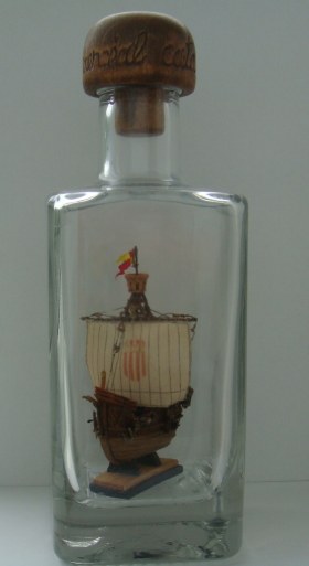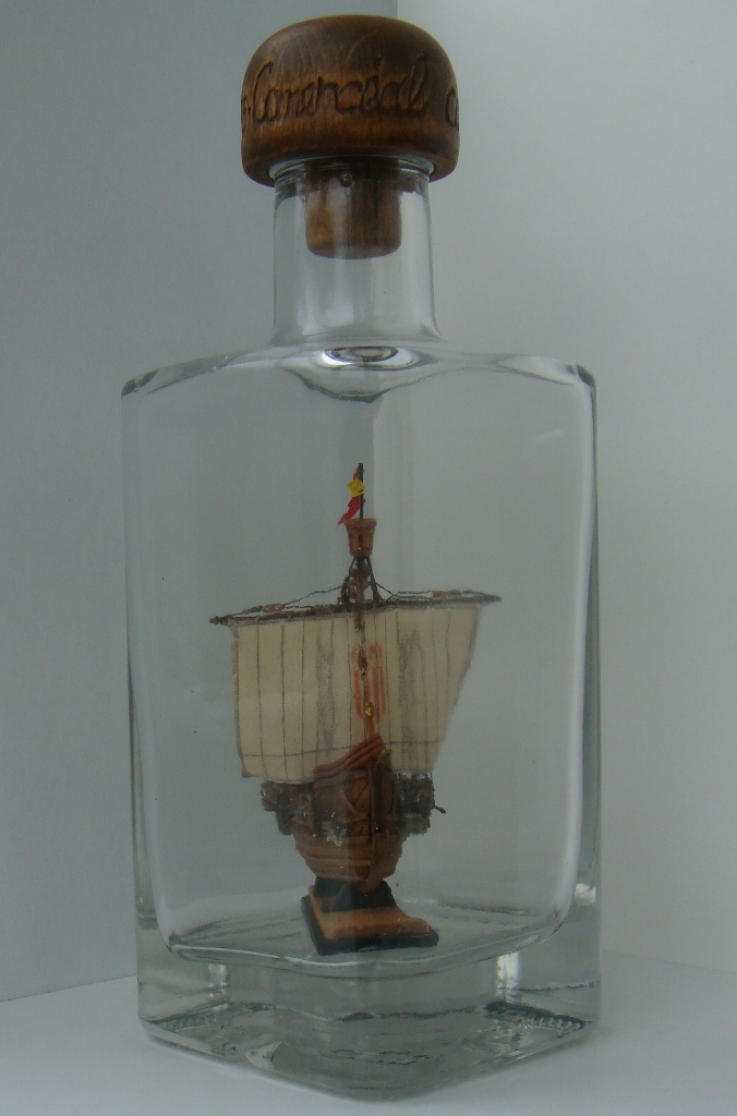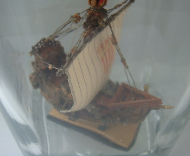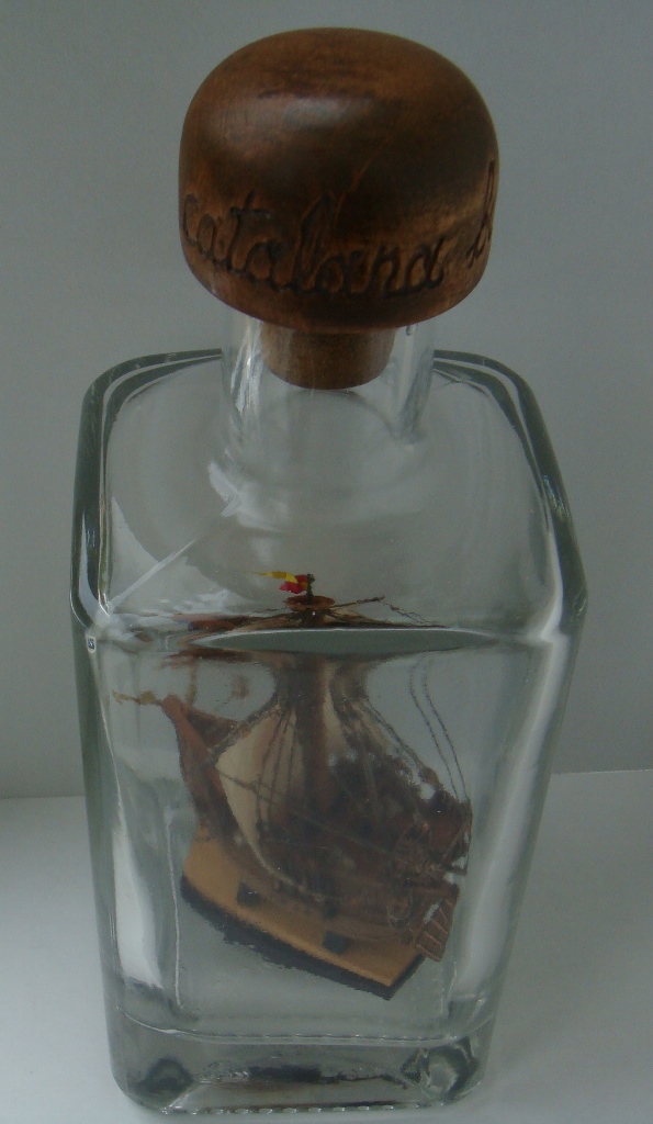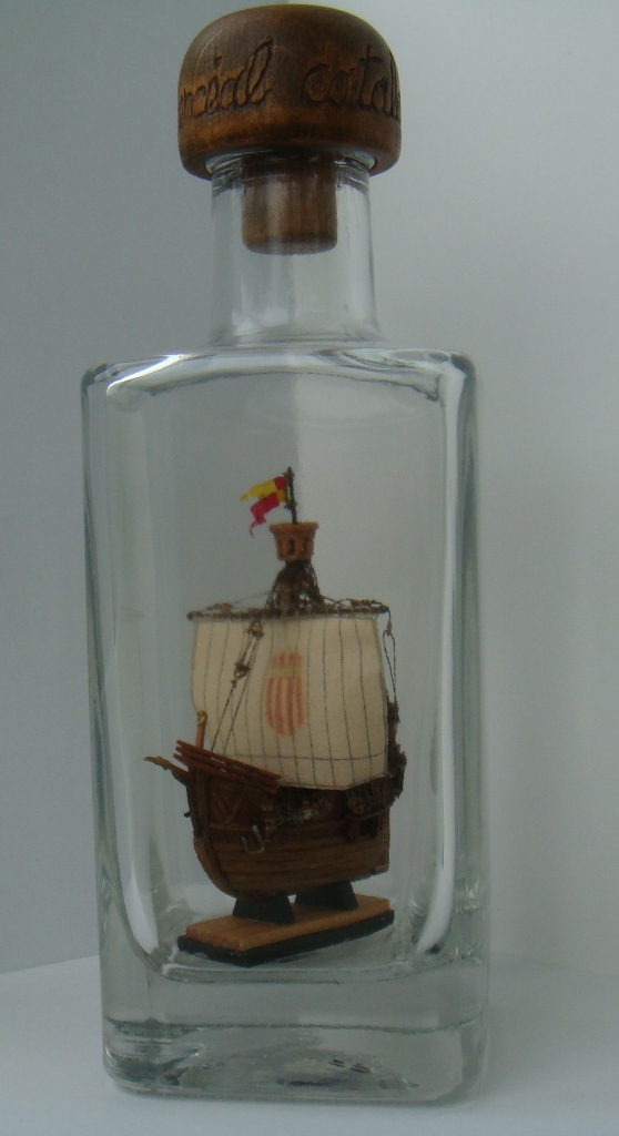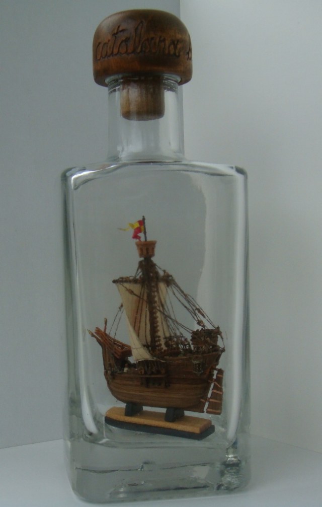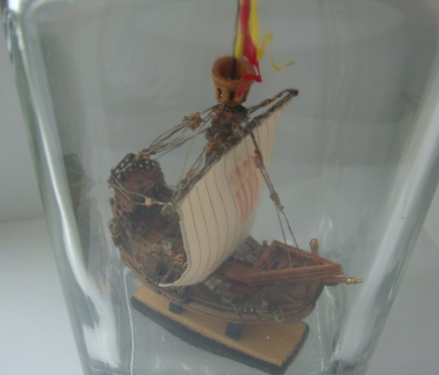 Ткань с нарисованной выкройкой для паруса. Инструкция только на японском, но по картинкам все понятно. Бутылки в наборе нет.