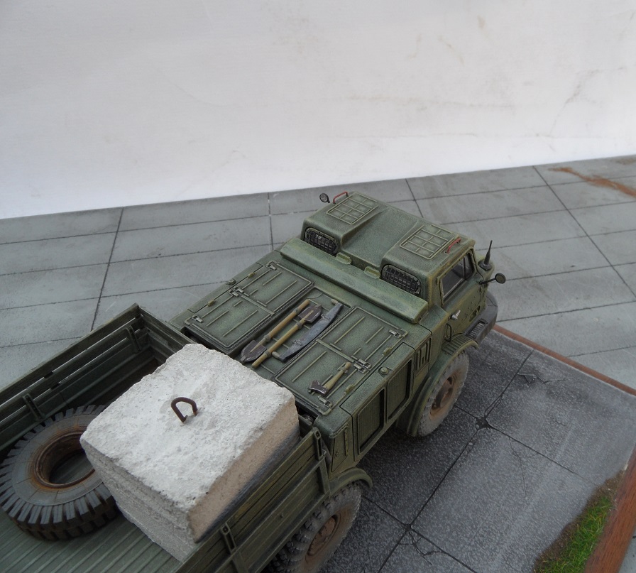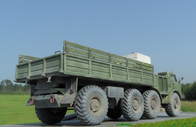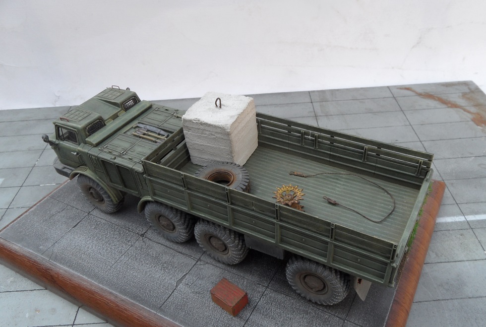 Работа хорошая, но как то эта техника окраски на мой взгляд не смотрится, напоминает сухую кисть. Мне больше нравится как вы окрасили МАЗ-200 с самосвальным полуприцепом, Шишигу и Прогресс-7.