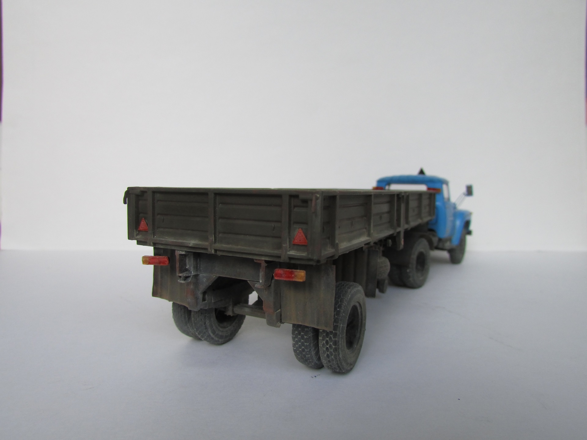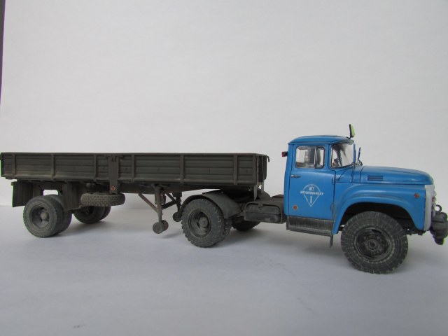 Всем доброго времени суток друзья ! Очень хотелось заиметь себе такой седельный тягач , но , к сожалению тираж сборных моделей давно закончен и было решено приобрести уже готовую модель для последующий перекраски и доработки . Итак что собственно доработал: вся оптика использована от Три А студио , травленые зеркала, катафоты от петрограда, задние крылья тягача и прицепа из листовой меди , заполнил кузов дополнениями от СМУ 43, трубы самодел из фольги , резина и диски от маэстро модельс . Окрас стандарт ый : база-Тамия , остальная химия от МИг . Приятного просмотра