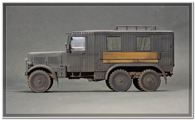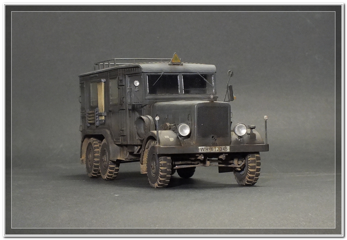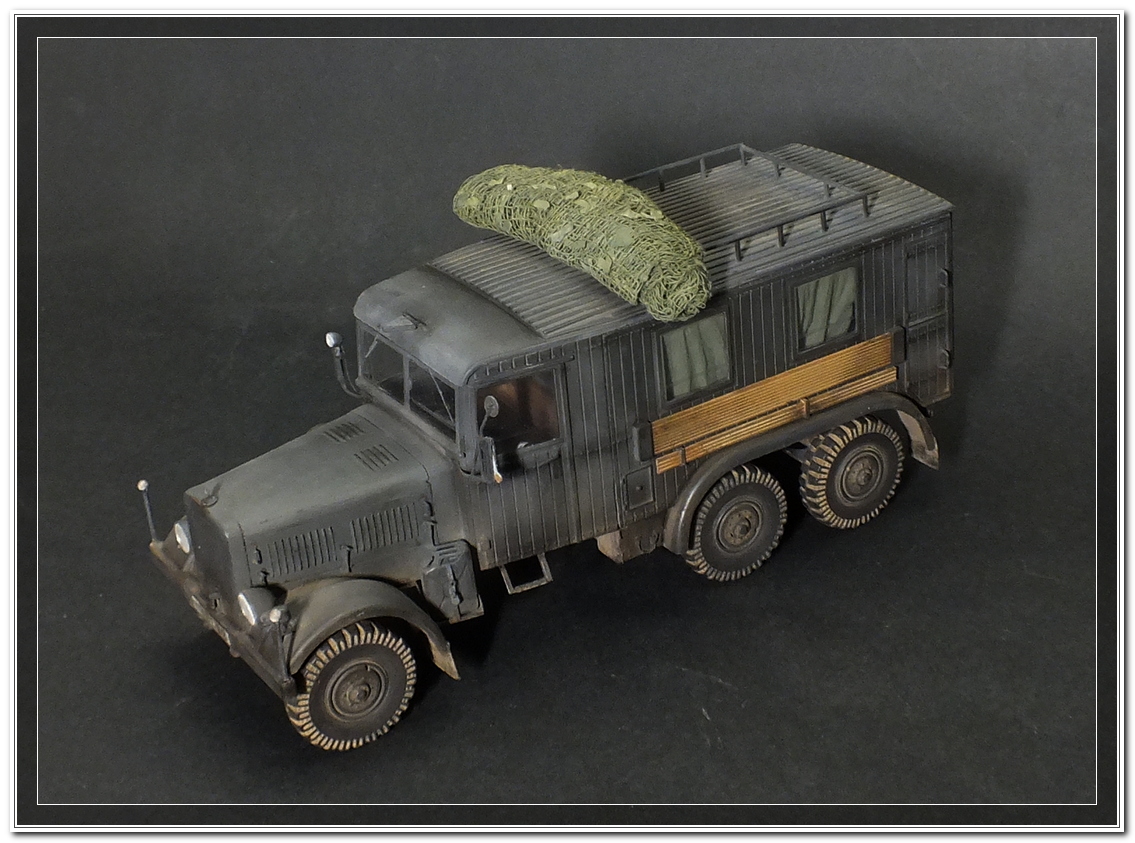 Прекрасная работа! На мой взгляд- одна из самых красивых военных грузовых машин ВМВ. Модель- украшение коллекции!
