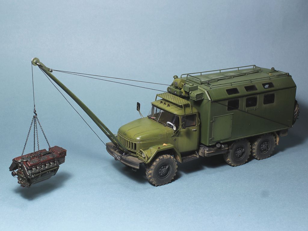Доброго времени товарищи моделисты, хочу представить свою крайнею модель ЗИЛ-131 МТО-АТ от фирмы ИСМ в масштабе 1/35. В работе использовались колеса от фирмы армата-моделс, печатная продукция от фирмы denisssmodels, травление от МД, фары заменены на эльф, краска и химия а-модель, зип-макет цепочка и пигменты. Танковый двигатель В-55 от фирмы MiniArt.