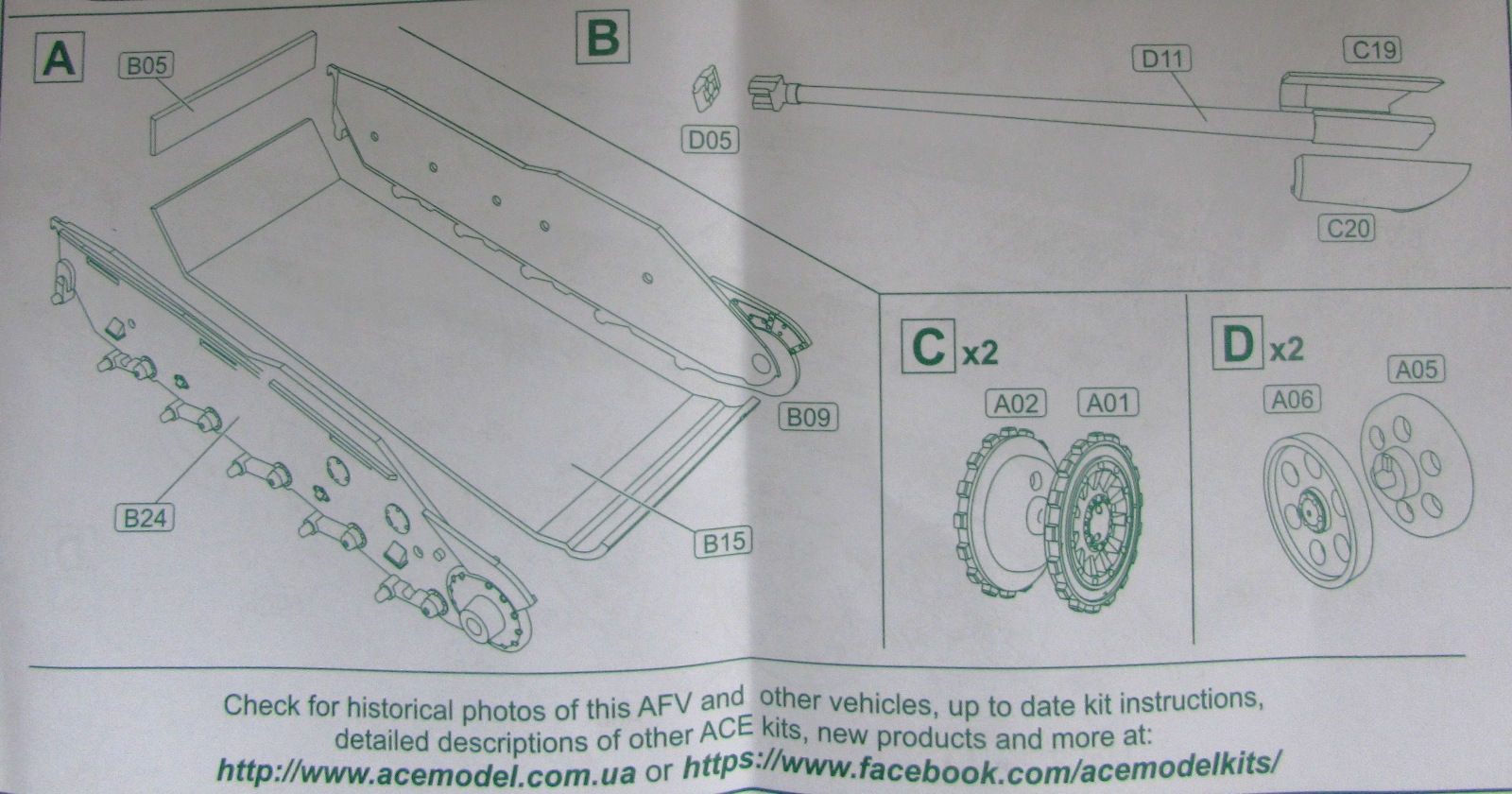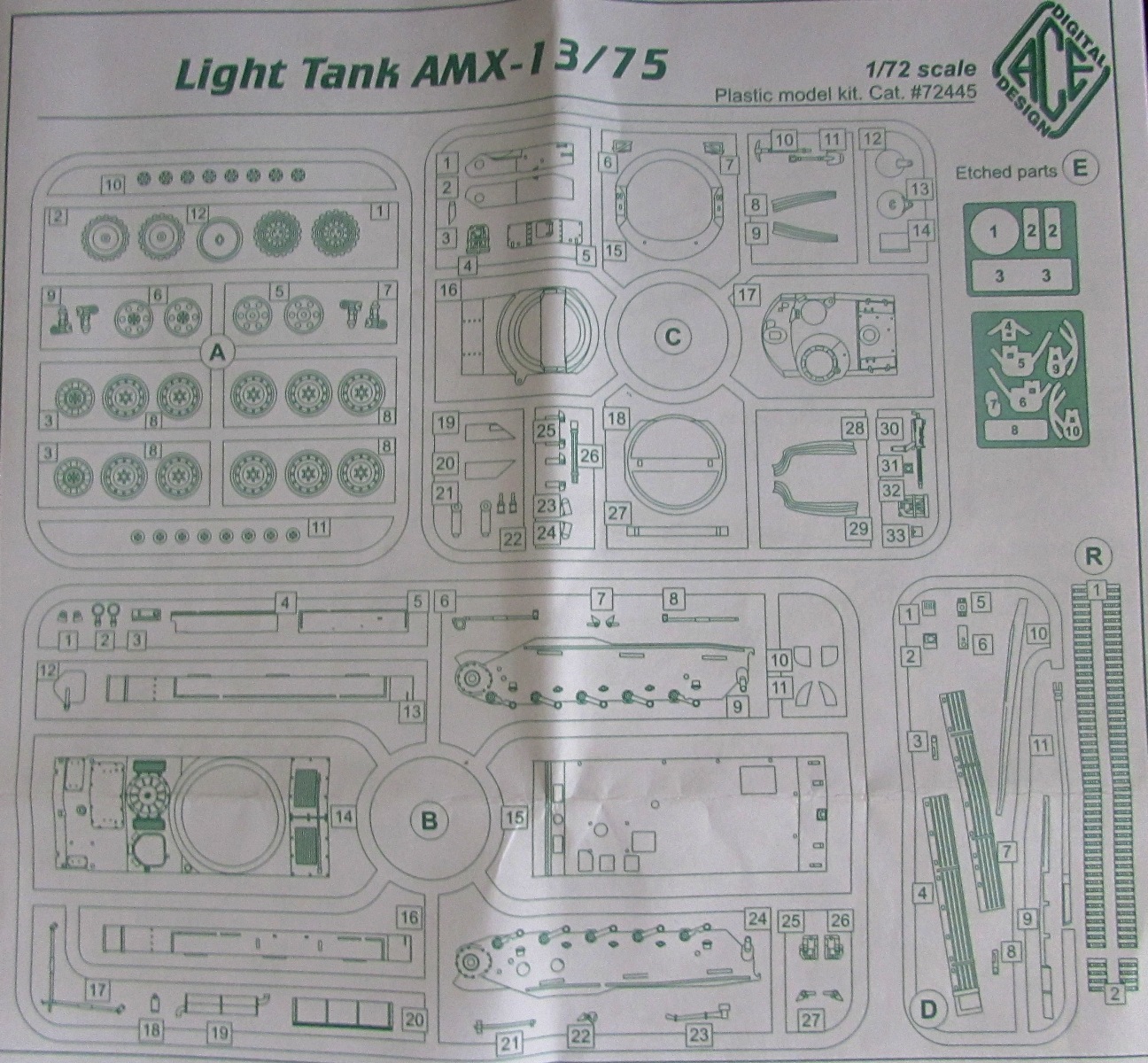 Упакована конверсия в стандартную для моделей фирмы коробочку. Внутри, в запечатанном пакетике - 3 (на самом деле 4) литника с деталями, декаль и 2 платы фототравления. Инструкция - впервые для фирмы! - на сдвоенном листе А4 (не простыня в пол-листа, смахивающая на "шедевры" от ВЭ, как раньше), отпечатанная зелеными чернилами (в том же месте, что УМ печатает свои, что ли?) - но по-прежнему не слишком понятная.. Кстати, интересно, что, в отличие от УМа, убравшего русский язык из инструкции и краткой исторической сводки на коробке, АСЕ по-прежнему ведет и инструкцию и эту сводку на английском и русском языках.