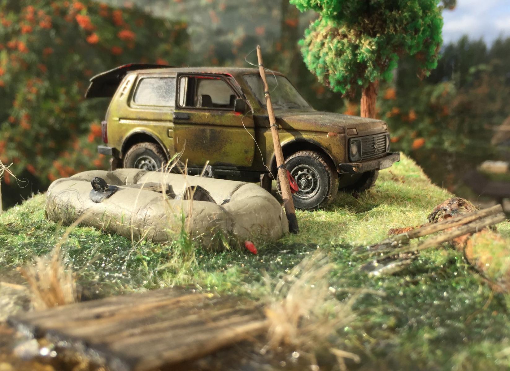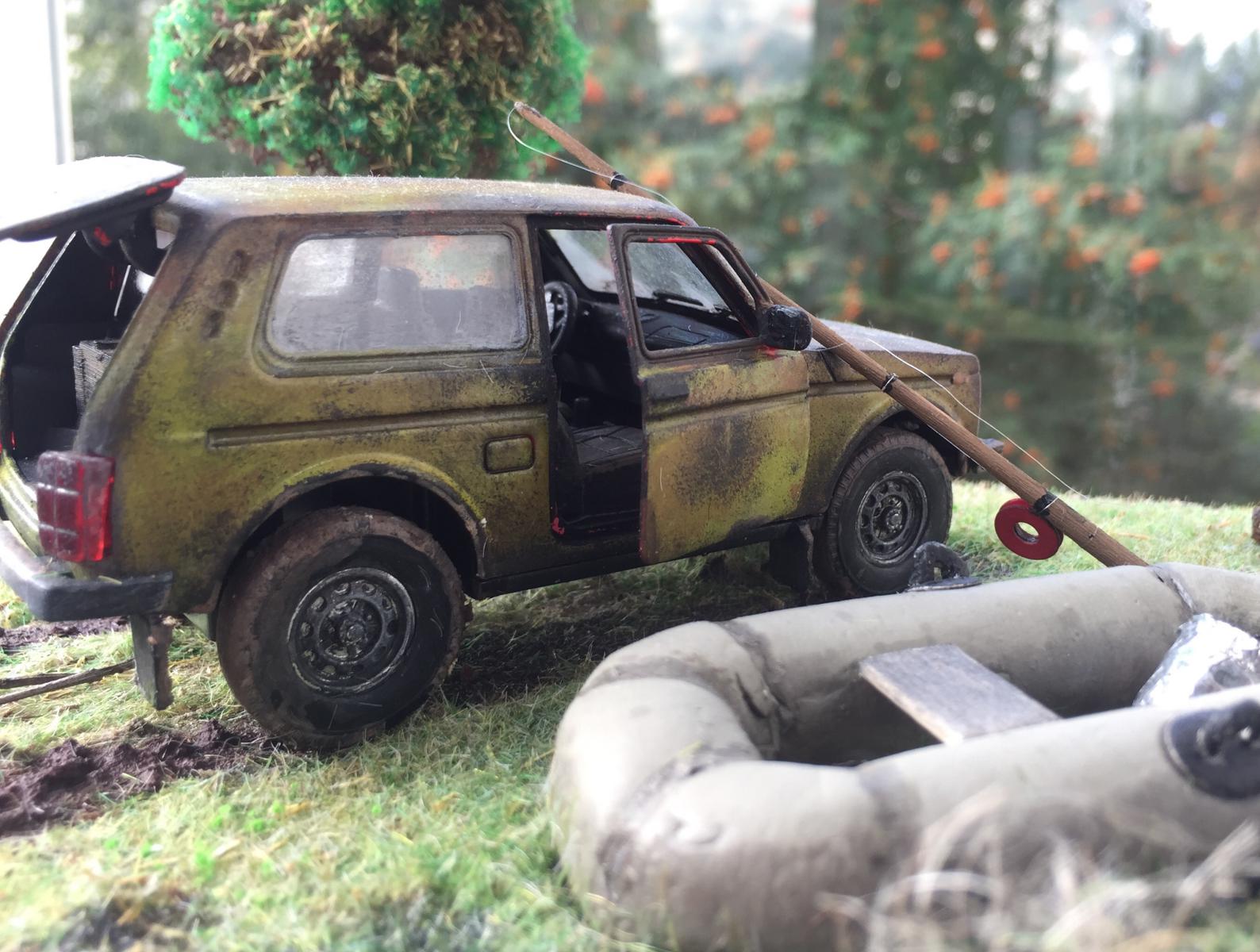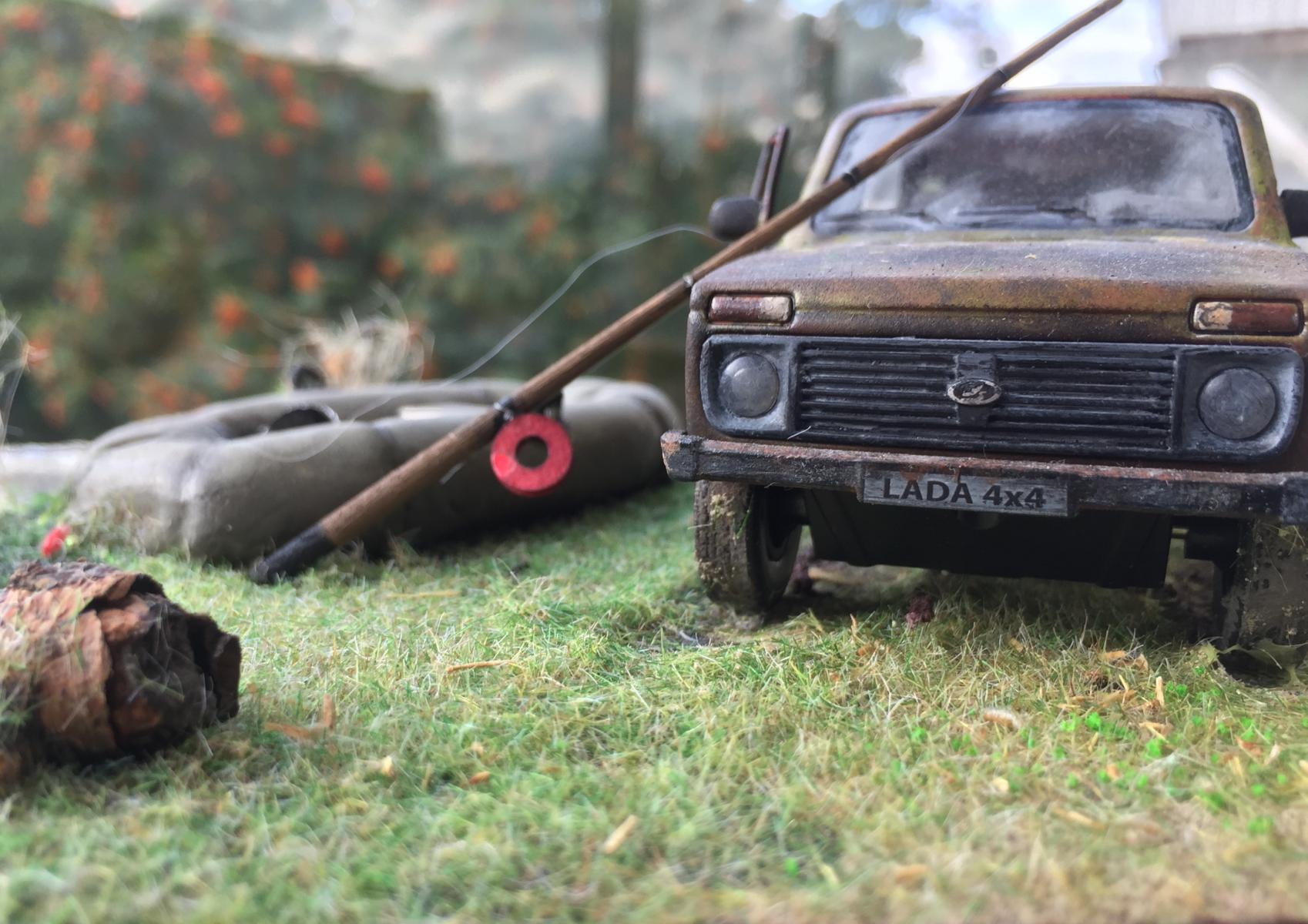 Диорама "Забыл червей" (Нива 2121 1/32)