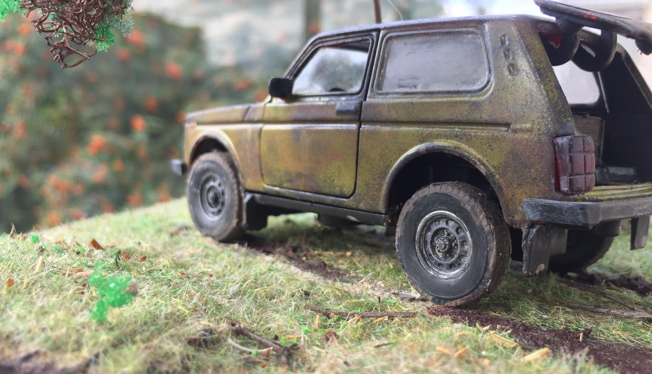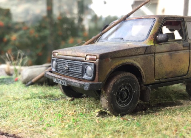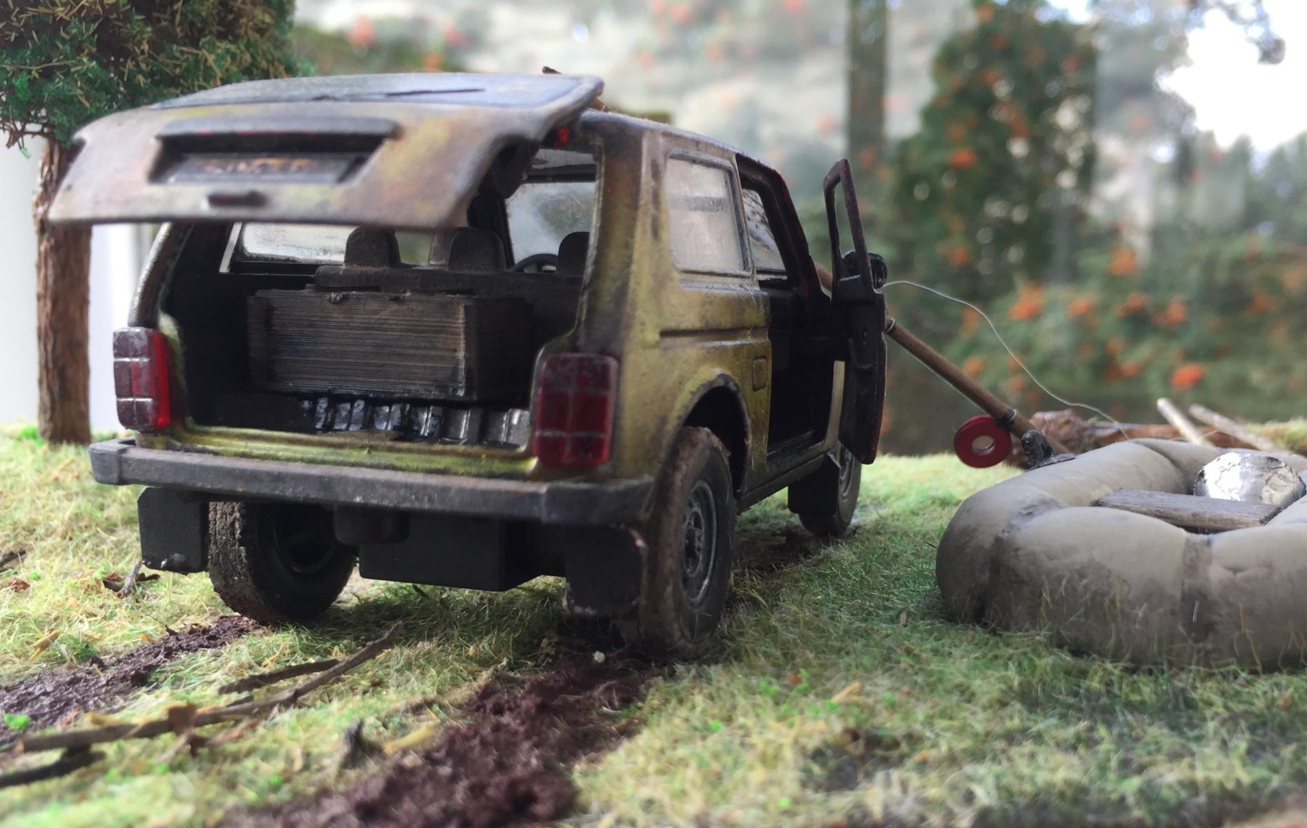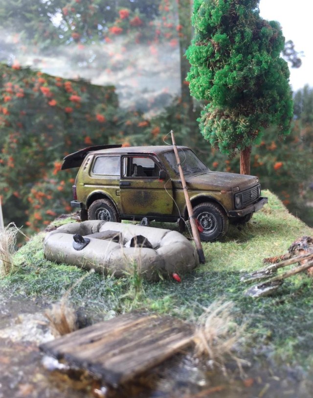 Диорама "Забыл червей" (Нива 2121 1/32)