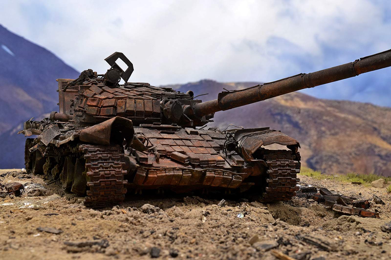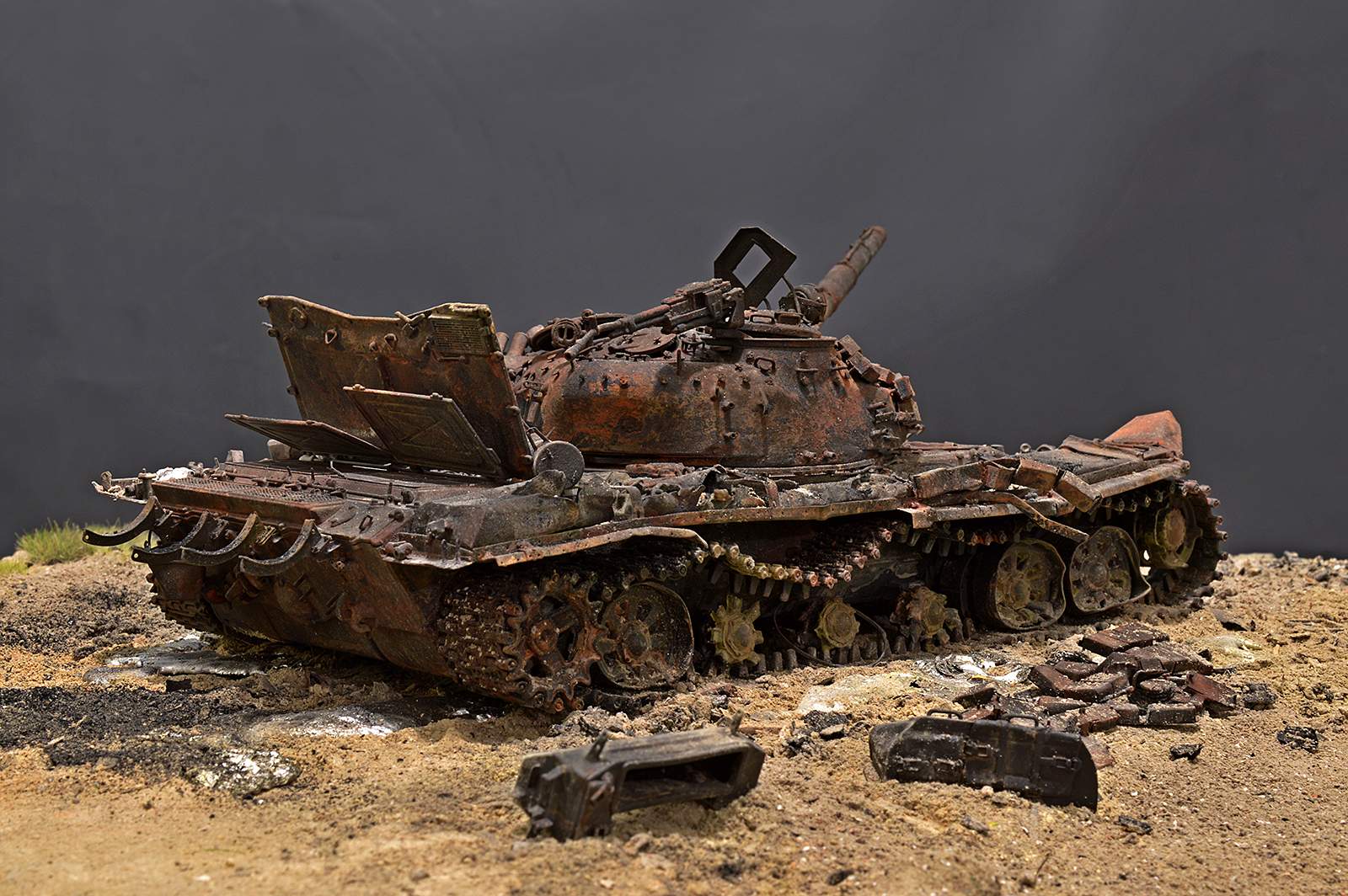 Цвета сгоревшего танка на корпусе переданы достоверно. Технологию работы с моделями ты выработал просто профессионально.
