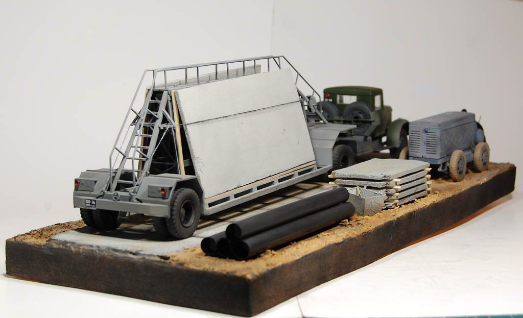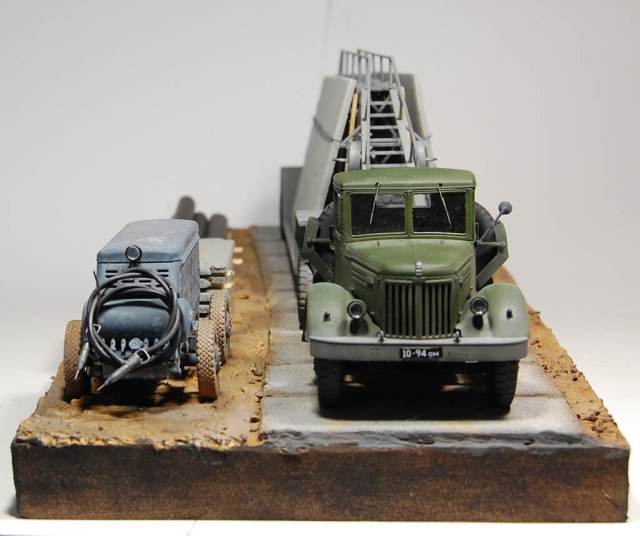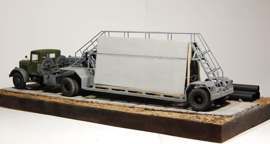 Здравия всем!Собрал первую свою большую виньетку!Использовал для подставки пенополистирол,подложка под ламинат.Самодельная бадья из доширак пластика,плиты-подложка под ламинат,трубы-трубочки для питья,на ЗИФ-55:шланги-оплетка от наушников,молотки-стержень от шариковой ручки и кусочек ушной палочки.