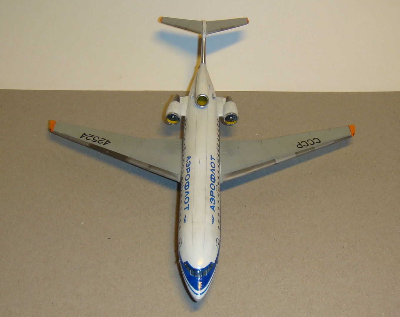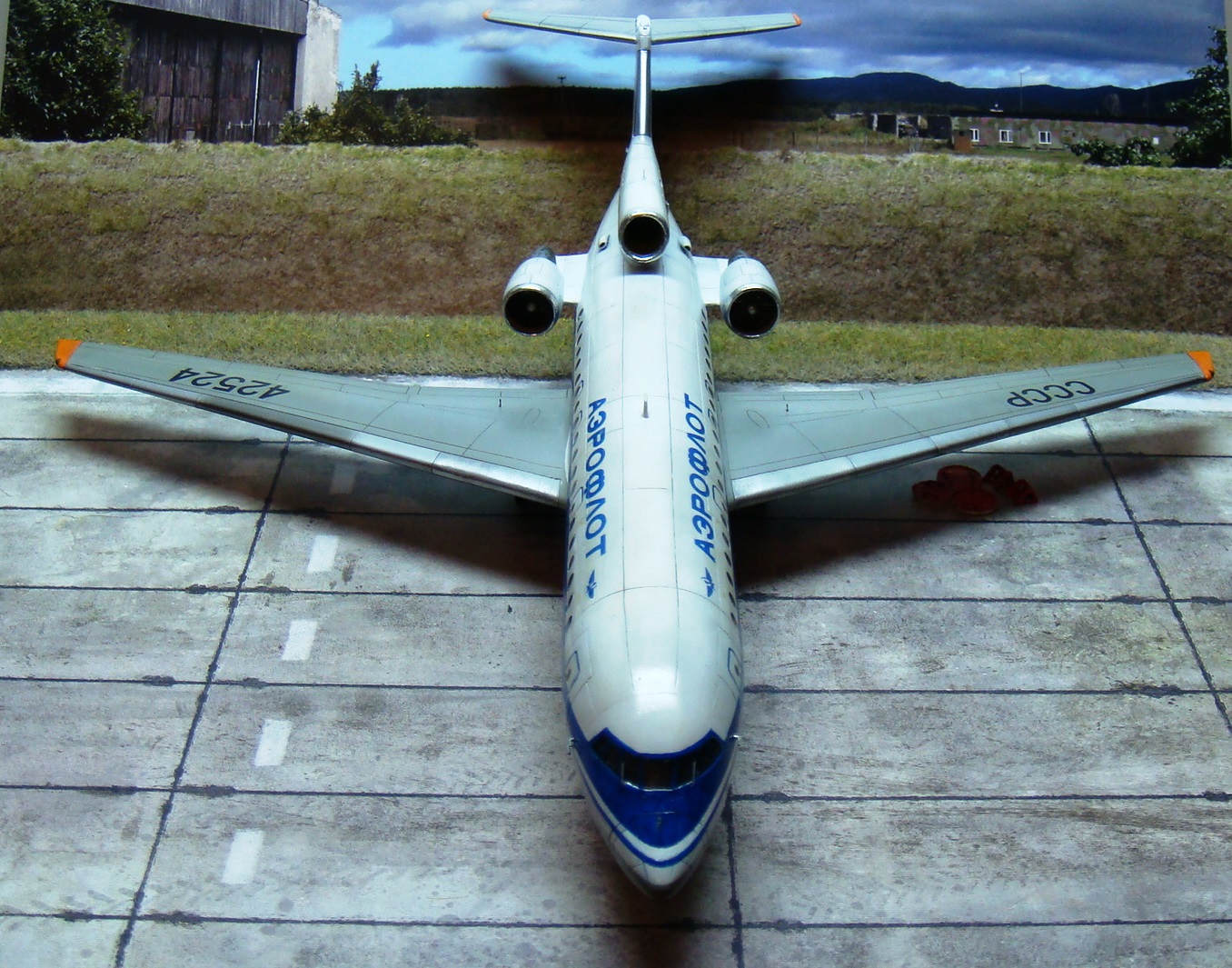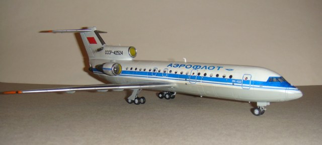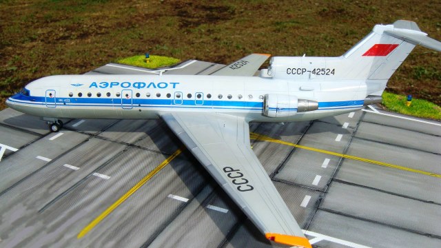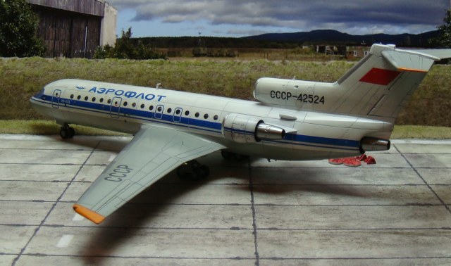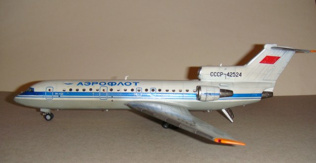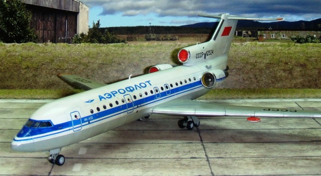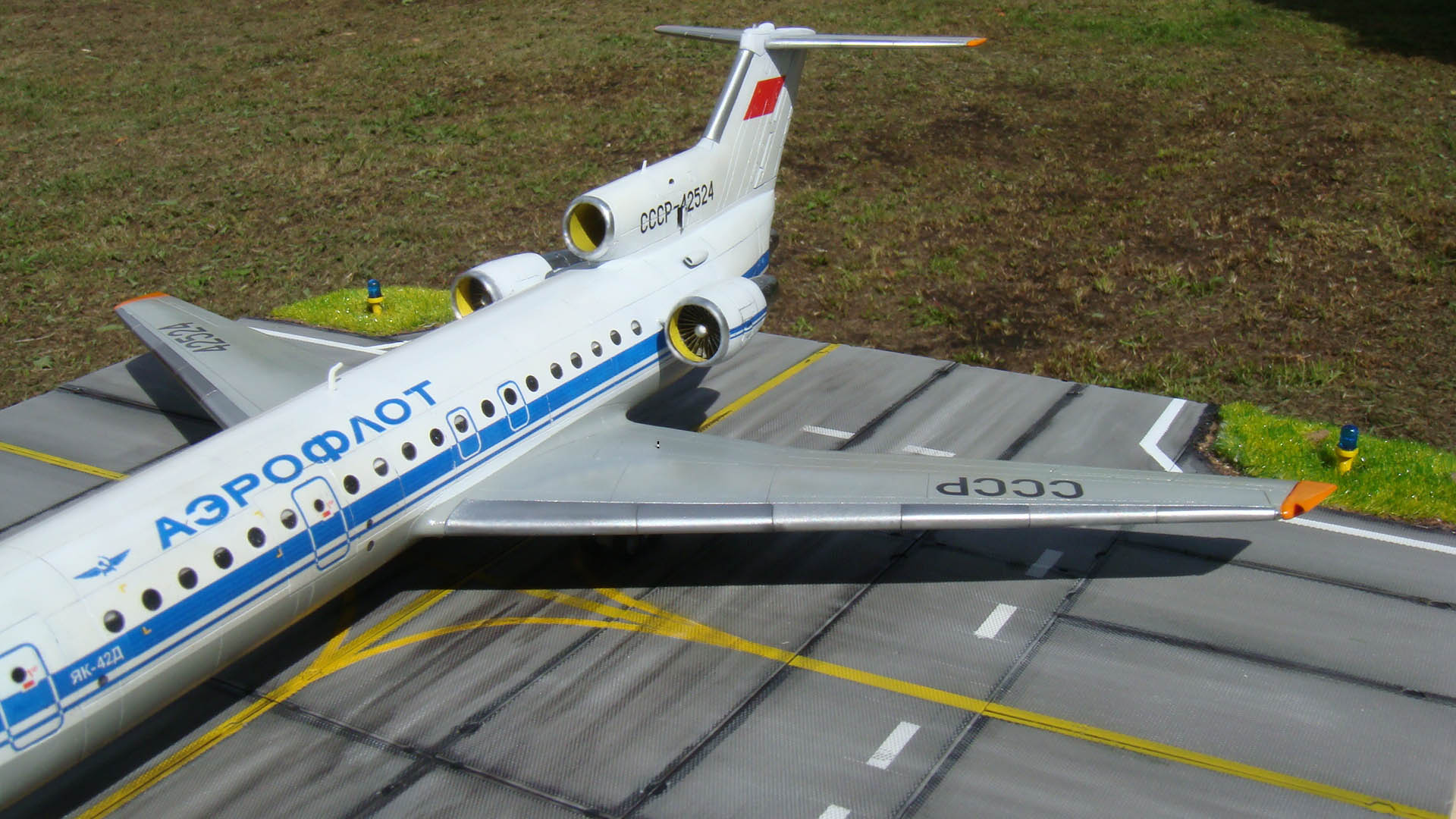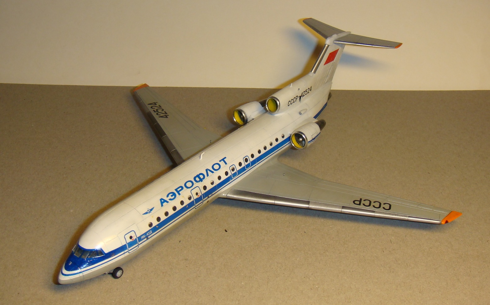 Доброго времени суток, уважаемые коллеги. Разрешите представить на всеобщее обозрение свою, модель известного самолёта Як-42Д СССР- 42524 в 144-ом масштабе от производителя Восточный Экспресс. Для тех, кому интересно, небольшая справка по самолету. Завод изготовитель: САЗ г. Саратов. Бортовой номер 42524, заводской номер: 11030603, дата выпуска: 23 сентября 1980 г .С самого начала эксплуатации находился в МГА Аэрофлот СССР, Быковского УГА . На 2010 год - самый старый из летающих Як-42. С июня 2012 года находится на хранении в ЛИИ. Решил сделать его так как стройка начиналась одновременно с Як-42 АЛК. Ну и конечно нужно было доделать эту модель. Сам процесс стройки не очень приятный. Все прекрасно знают наборы от Восточного Экспресса. "Геморрой " - еще тот. Подробно всю стройку описывать не вижу надобности из-за того, что абсолютно все детали данного набора надо точить, пилить, шпаклевать, обрабатывать и приводить в приличный вид. Обработке подверглось ВСЁ. Остекление пилотов делал из набора дополнения AWM для Як-42. Остекления иллюминаторов залил изнутри жидкой прозрачной смолой, которая хорошо обрабатывается и полируется и самое главное не меняет свою прозрачность. Родное остекление иллюминаторов были отправлены в помойку. На этой модели, решил в первый раз, сделать открываемый задний входной трап, вроде получилось. БАНО,Фары и Проблесковые от Эльф. грунтовал Мистер Хобби 1200. Красил Тамией акрил матовый. Глянцевый лак. Декаль самодельная. Фото, как всегда, не получились. Выкладываю фото которые посчитал более удачными. Переснимал модель раза четыре, поэтому разные фоны. В заключении немного фото готовой окрашенной модели. Сразу прошу прощения и не судите строго за качество фото, я не фотограф, да и фотоаппарата хорошего нет, только "мыльница". Приятного просмотра. С уважением. Андрей