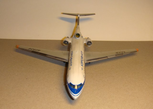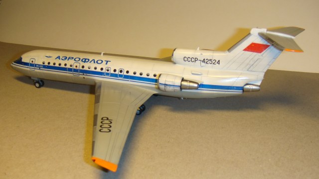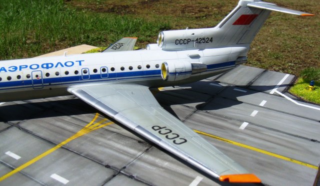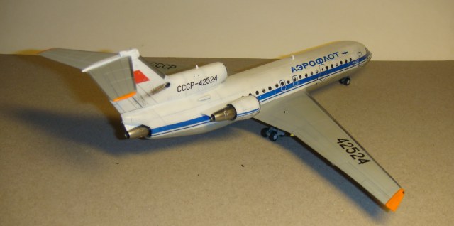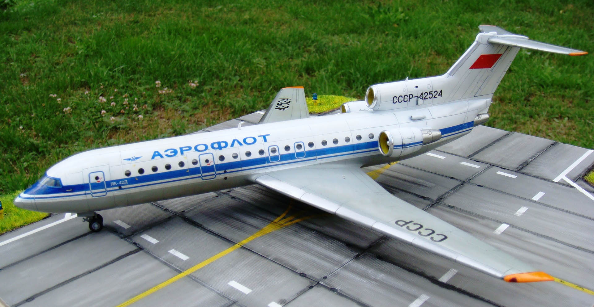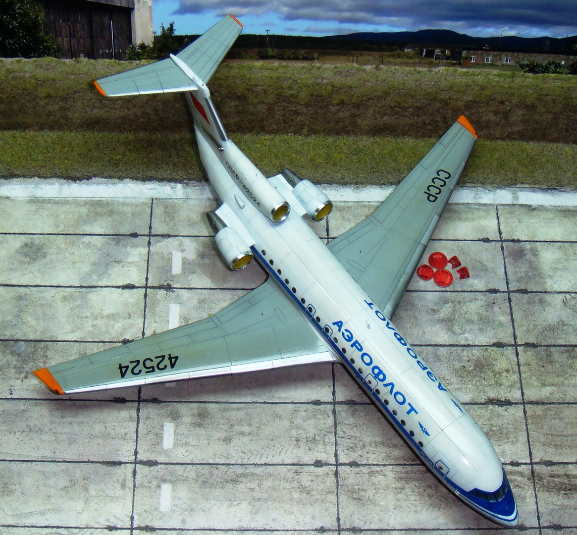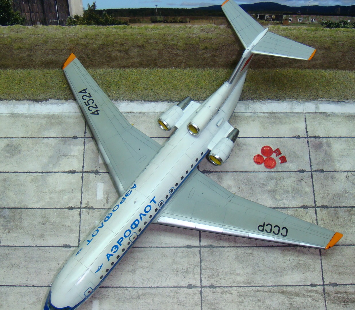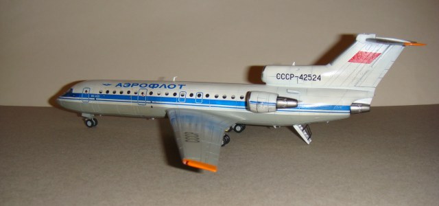 Доброго времени суток, уважаемые коллеги. Разрешите представить на всеобщее обозрение свою, модель известного самолёта Як-42Д СССР- 42524 в 144-ом масштабе от производителя Восточный Экспресс. Для тех, кому интересно, небольшая справка по самолету. Завод изготовитель: САЗ г. Саратов. Бортовой номер 42524, заводской номер: 11030603, дата выпуска: 23 сентября 1980 г .С самого начала эксплуатации находился в МГА Аэрофлот СССР, Быковского УГА . На 2010 год - самый старый из летающих Як-42. С июня 2012 года находится на хранении в ЛИИ. Решил сделать его так как стройка начиналась одновременно с Як-42 АЛК. Ну и конечно нужно было доделать эту модель. Сам процесс стройки не очень приятный. Все прекрасно знают наборы от Восточного Экспресса. "Геморрой " - еще тот. Подробно всю стройку описывать не вижу надобности из-за того, что абсолютно все детали данного набора надо точить, пилить, шпаклевать, обрабатывать и приводить в приличный вид. Обработке подверглось ВСЁ. Остекление пилотов делал из набора дополнения AWM для Як-42. Остекления иллюминаторов залил изнутри жидкой прозрачной смолой, которая хорошо обрабатывается и полируется и самое главное не меняет свою прозрачность. Родное остекление иллюминаторов были отправлены в помойку. На этой модели, решил в первый раз, сделать открываемый задний входной трап, вроде получилось. БАНО,Фары и Проблесковые от Эльф. грунтовал Мистер Хобби 1200. Красил Тамией акрил матовый. Глянцевый лак. Декаль самодельная. Фото, как всегда, не получились. Выкладываю фото которые посчитал более удачными. Переснимал модель раза четыре, поэтому разные фоны. В заключении немного фото готовой окрашенной модели. Сразу прошу прощения и не судите строго за качество фото, я не фотограф, да и фотоаппарата хорошего нет, только "мыльница". Приятного просмотра. С уважением. Андрей
