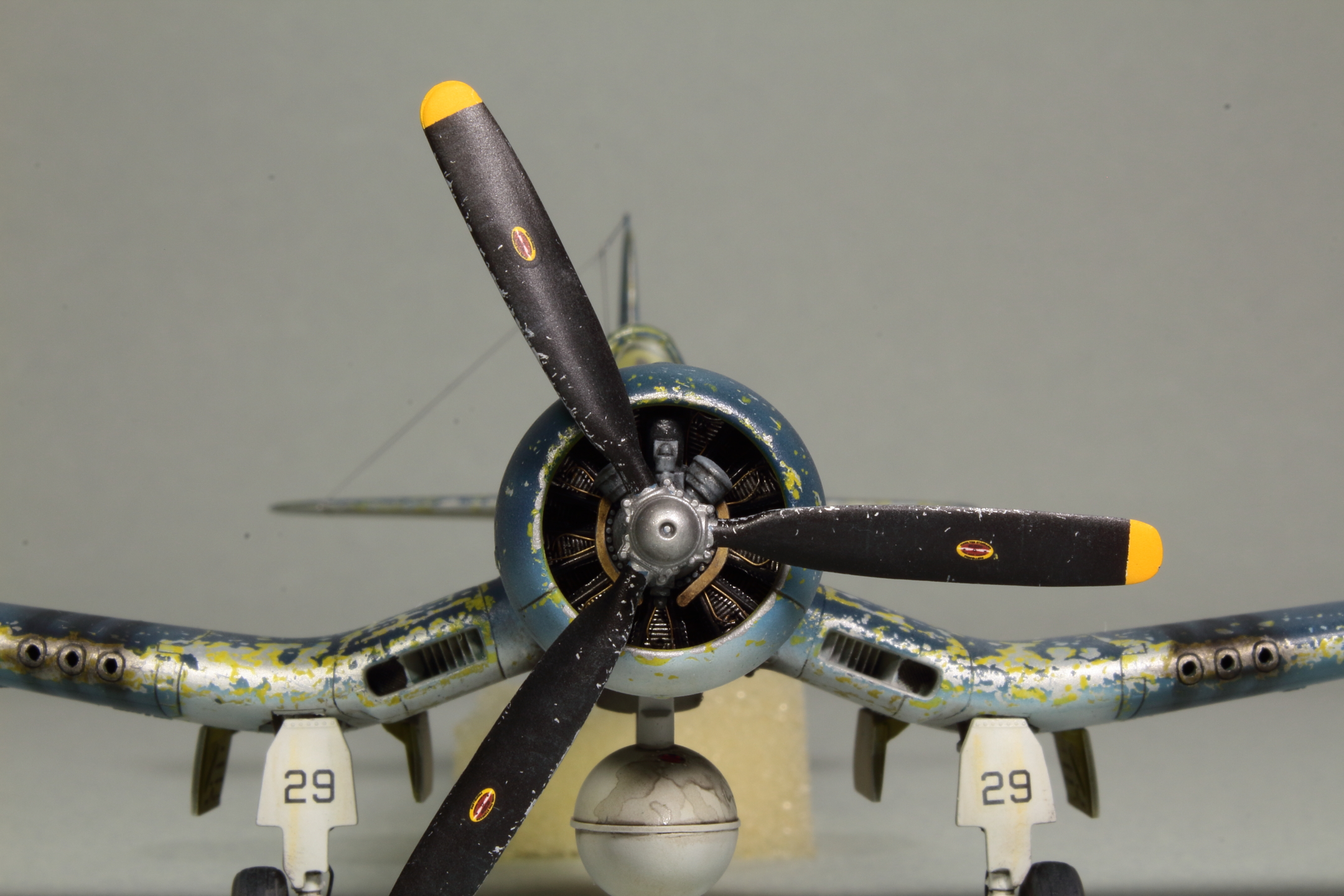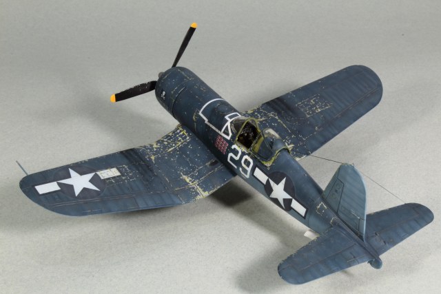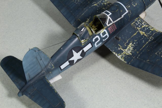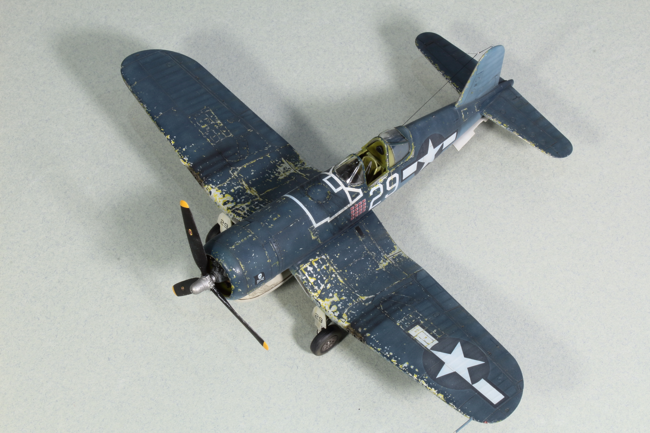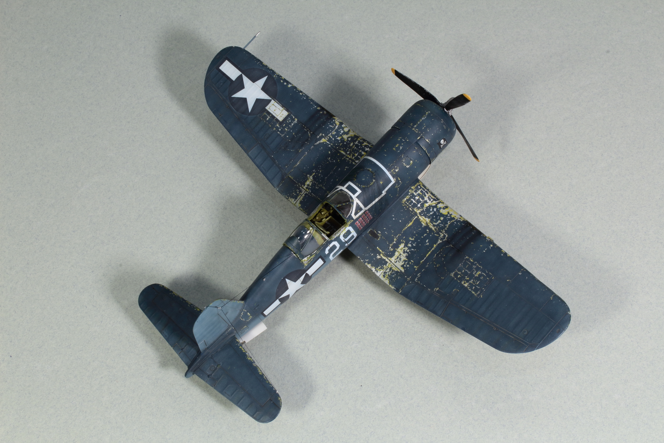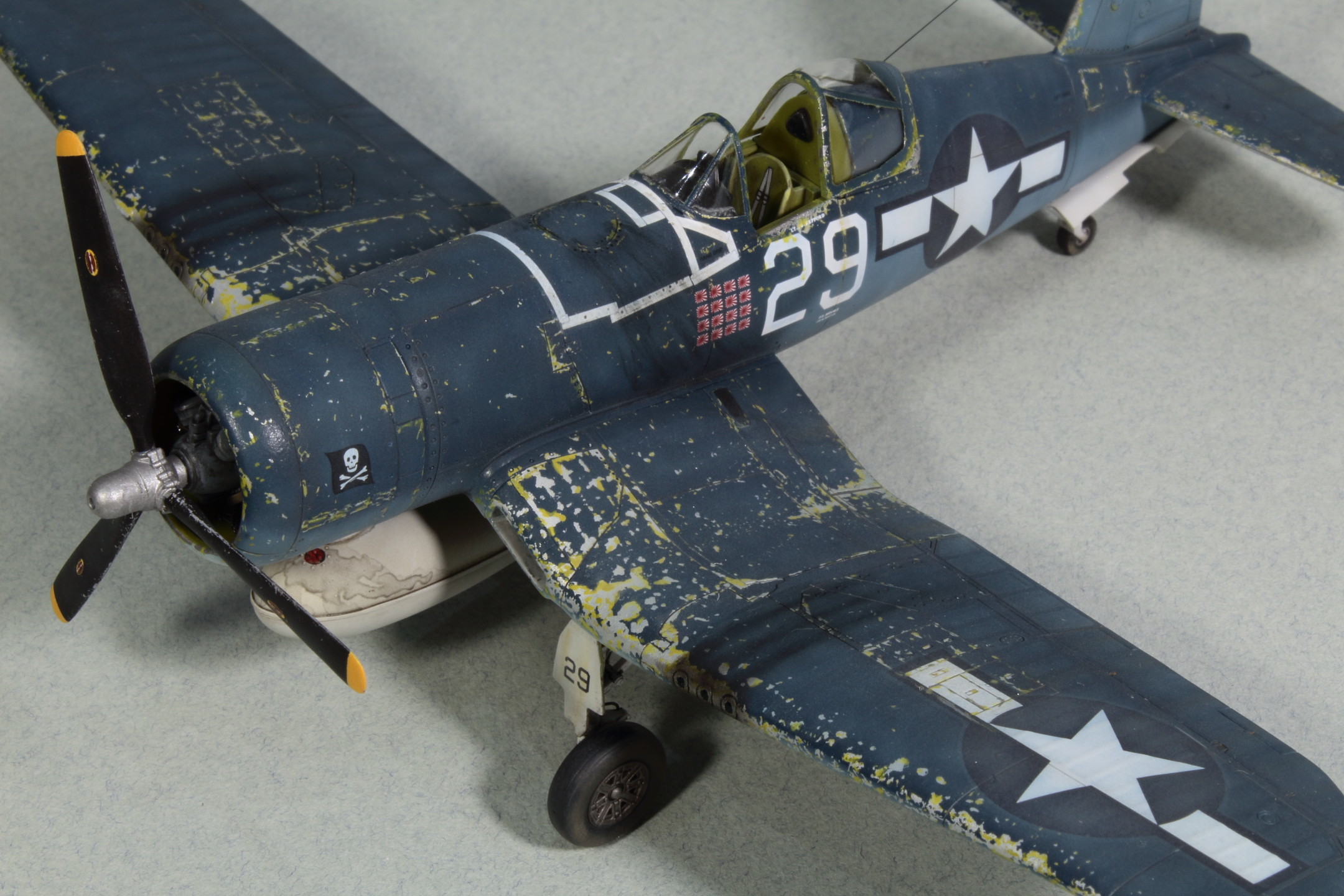 Это самолёт Айры С.Кепфорда из VF-17,Рабаул,1944г.Как по мне ,то обдиринг почти соответствует фото.Модель понравилась.
