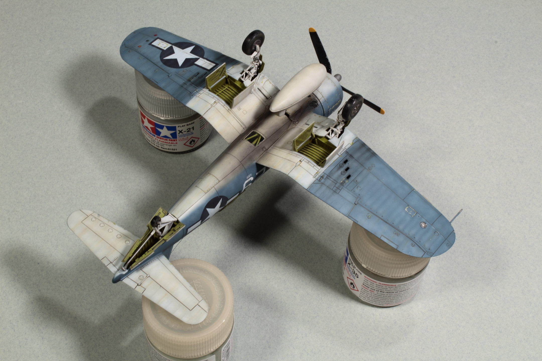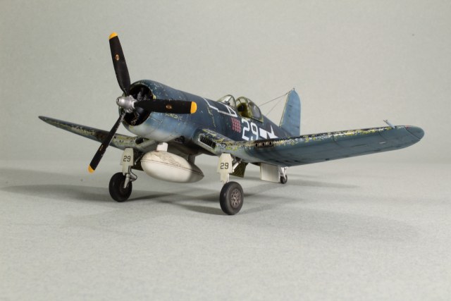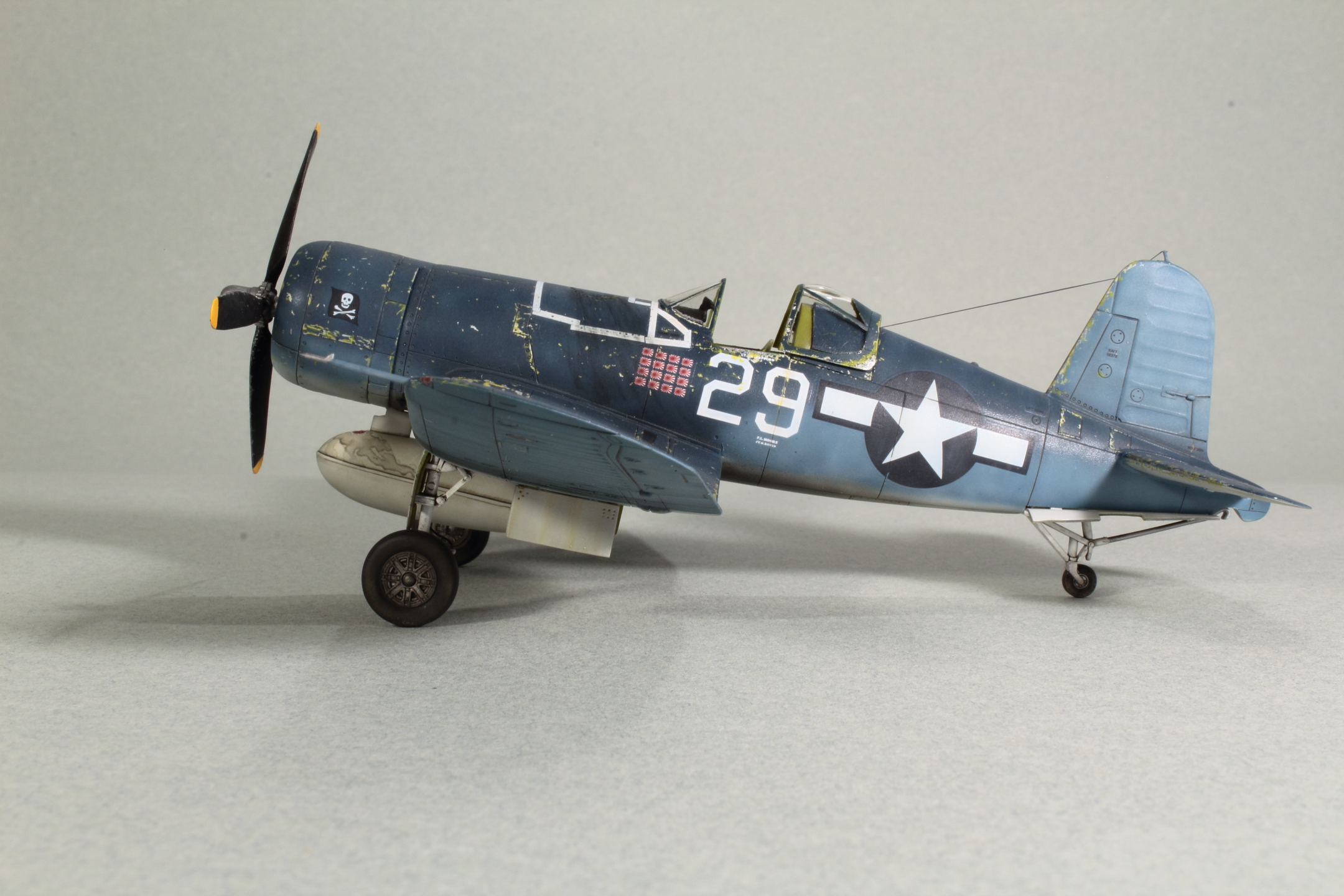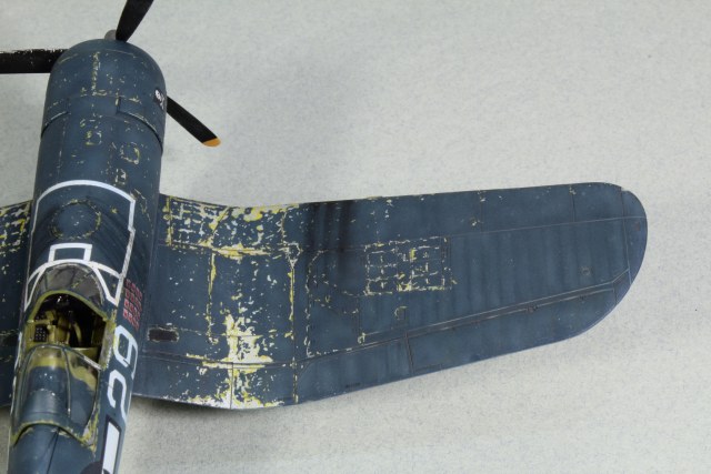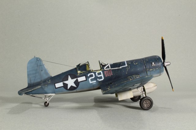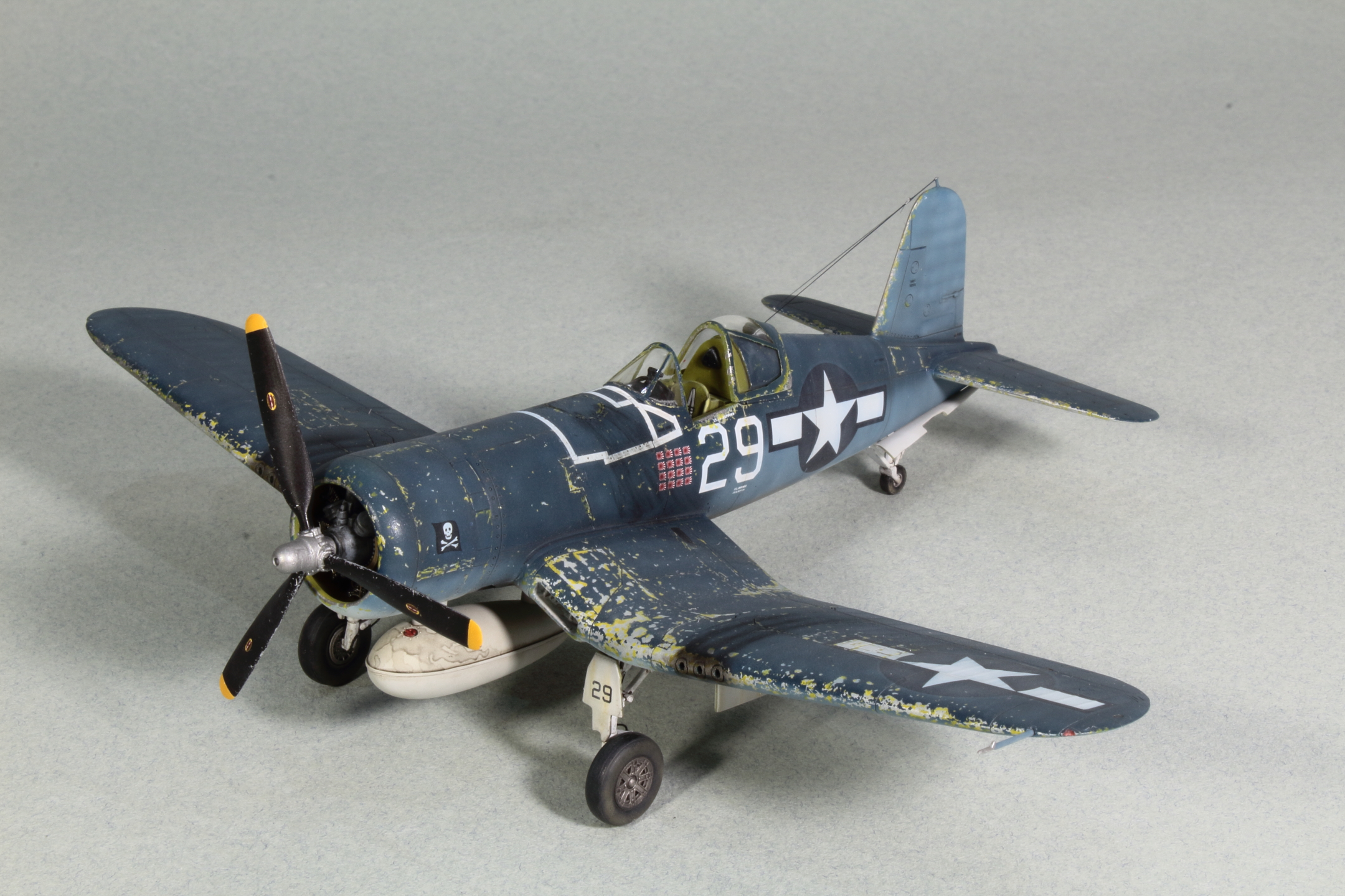 Это самолёт Айры С.Кепфорда из VF-17,Рабаул,1944г.Как по мне ,то обдиринг почти соответствует фото.Модель понравилась.