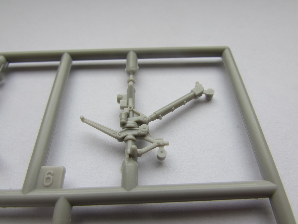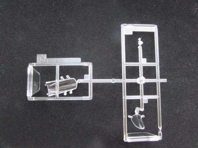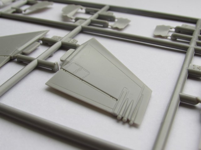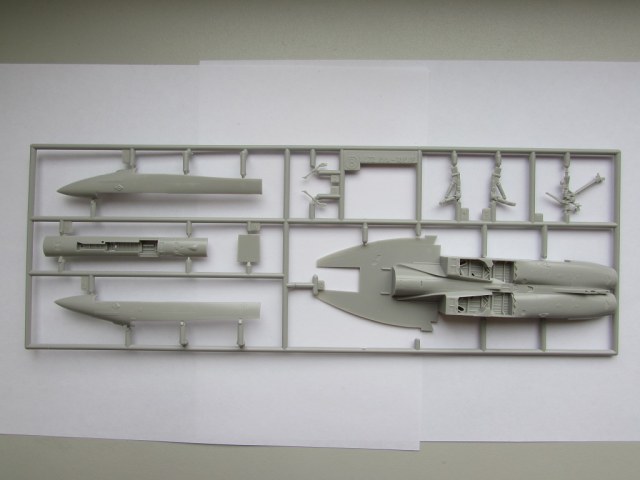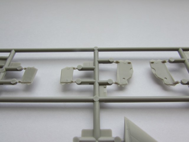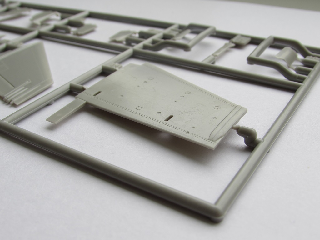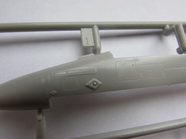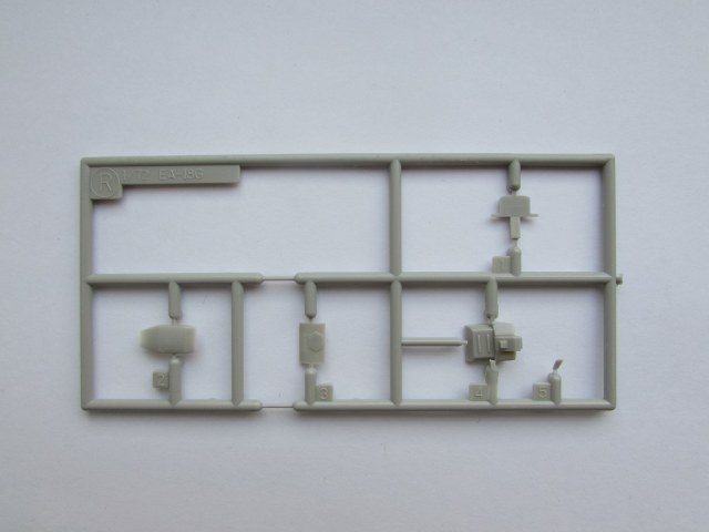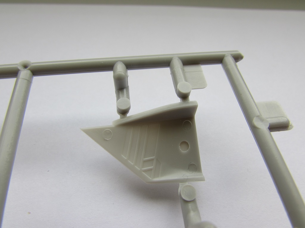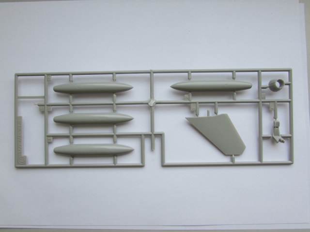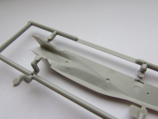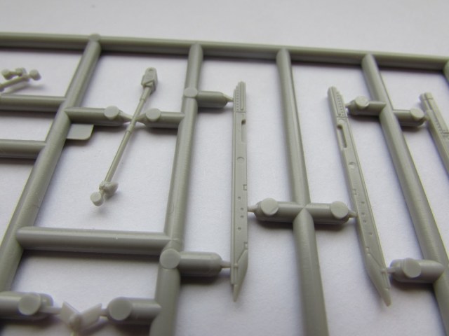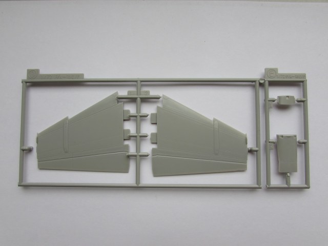 Из всего что представлено на данном литнике используются только 2 детали, створка переднего шасси и антенна. На створке следы толкателей.