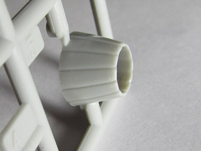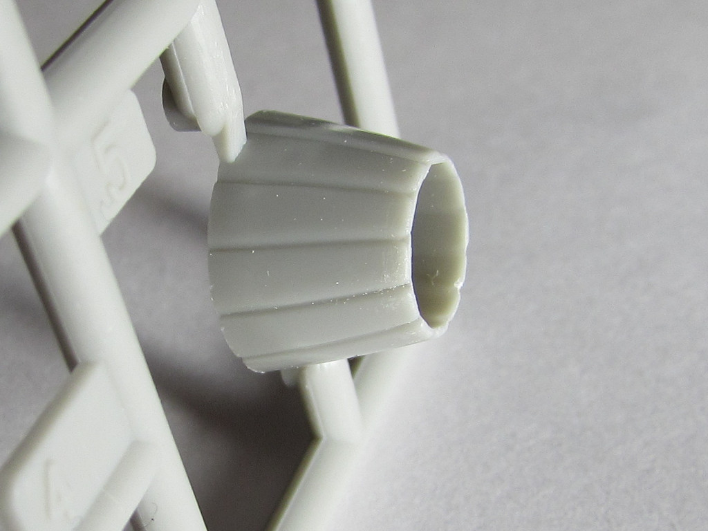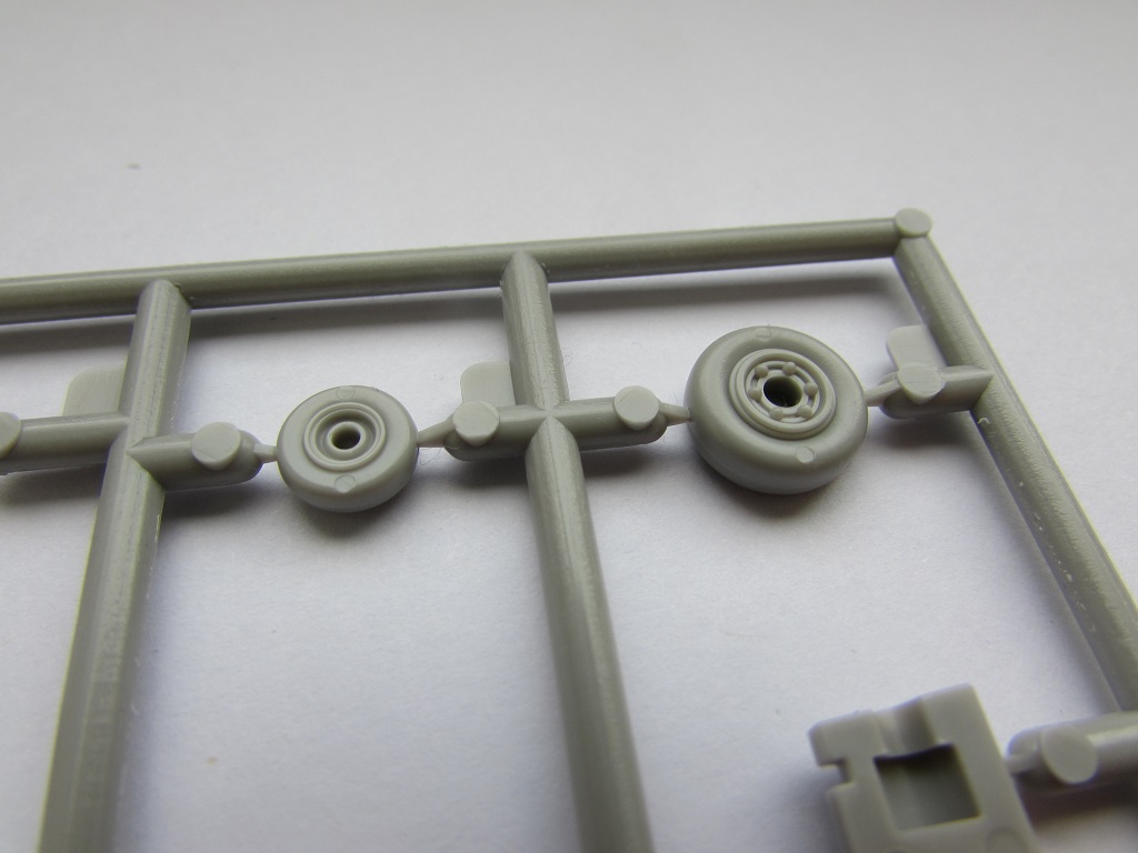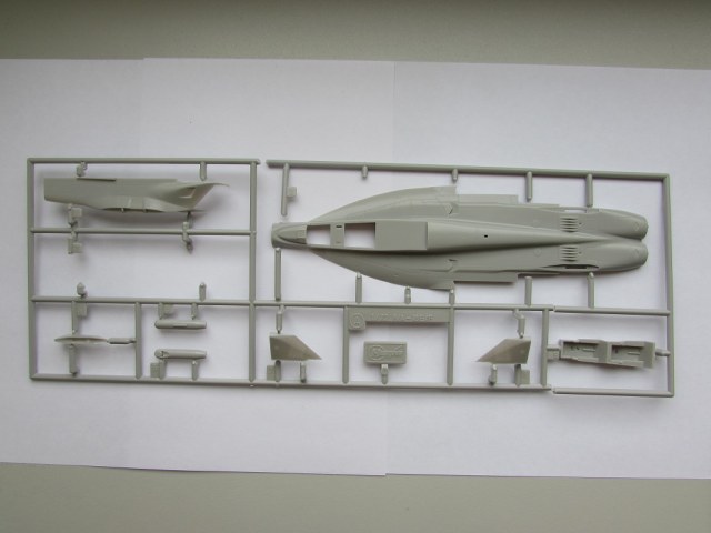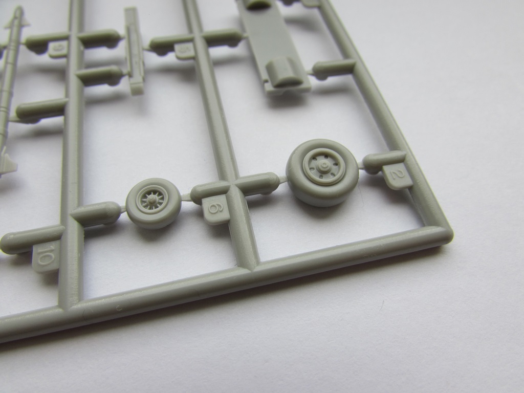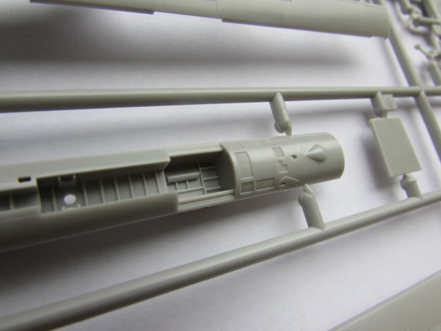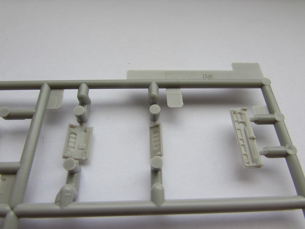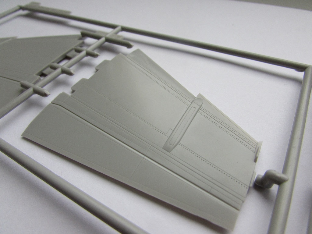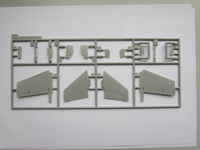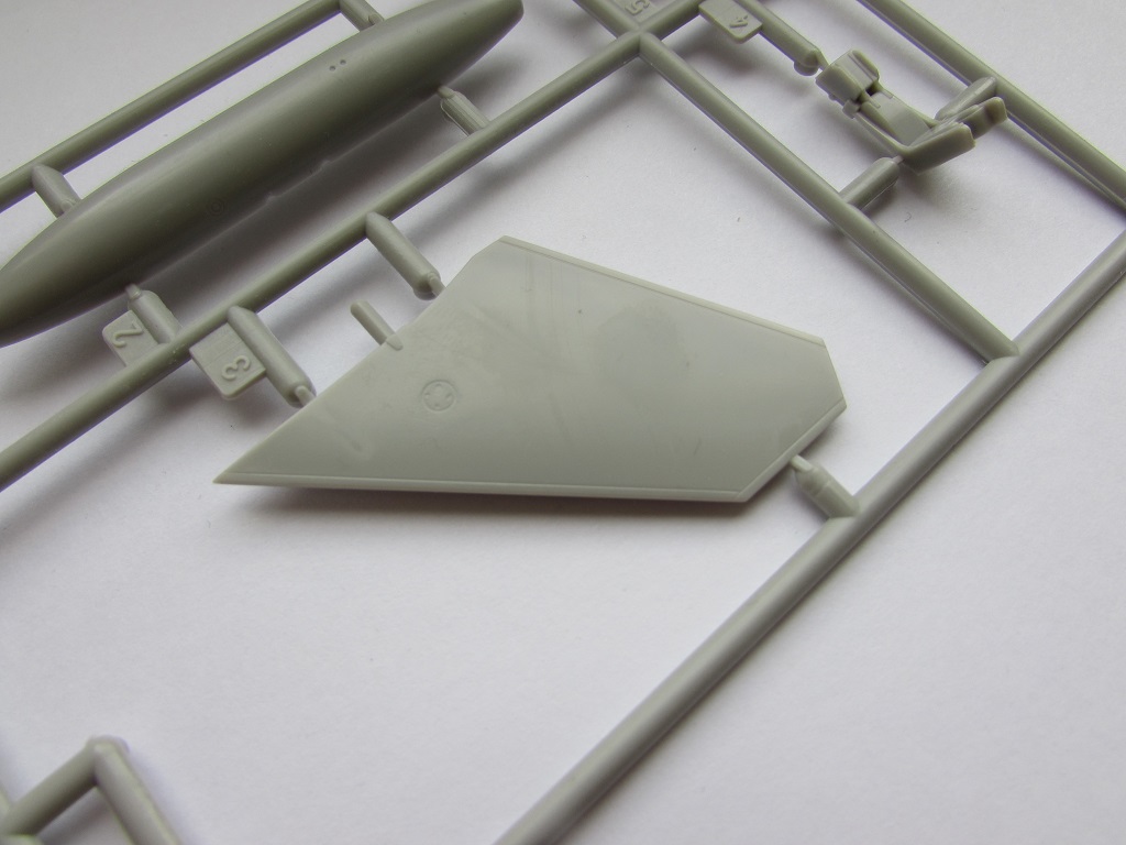 Из всего что представлено на данном литнике используются только 2 детали, створка переднего шасси и антенна. На створке следы толкателей.