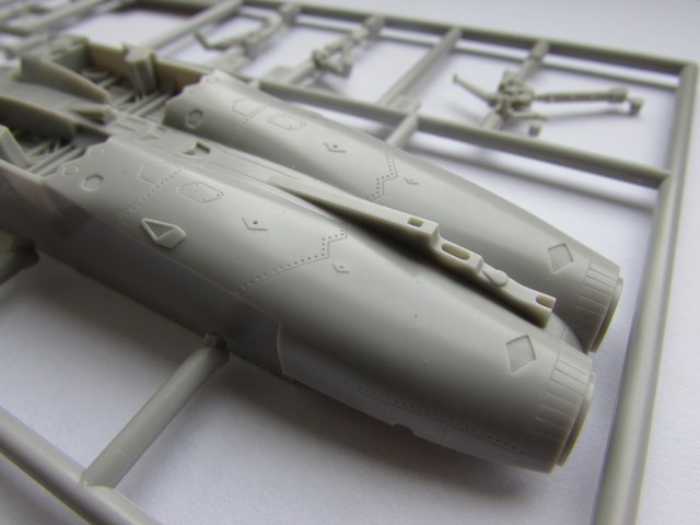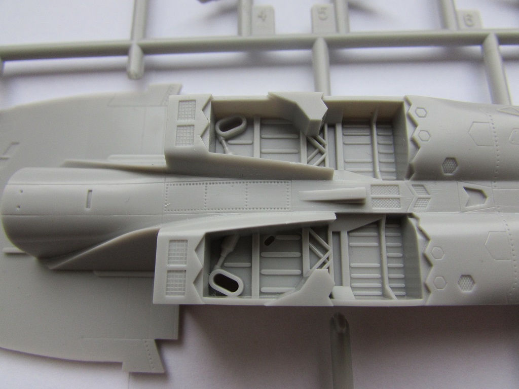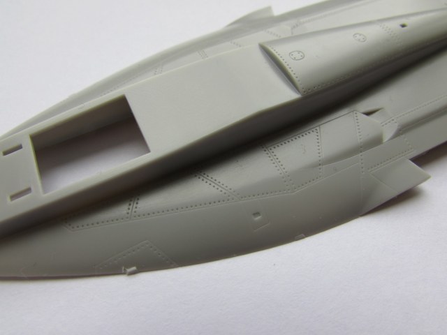 Качество исполнения, как ни странно для Хасегавы, довольно средненькое. Если расшивка еще куда ни шло, то клепки лучше бы не было, крупная и грубая, про масштаб вообще говорить ничего не буду, видите сами. Кабина дана абсолютно лысой, имитации приборов нет. Тут либо декаль, либо травление, либо смола. Присутствуют щели верхних воздуховодов, что не может не радовать, у Academy нужно будет прорезать. Воздуховодов воздухозаборников нет вообще никаких, Хасегава даже не предлагает их чем-то закрывать. Но ничего, смоляные уже заказаны.