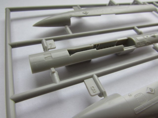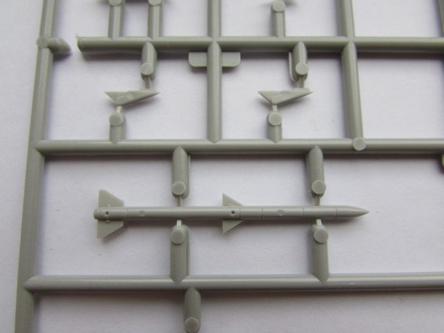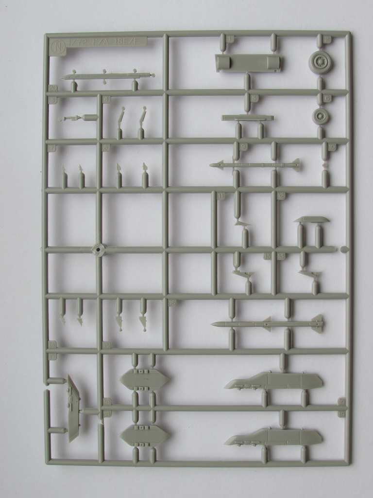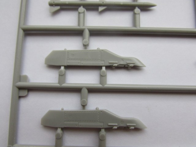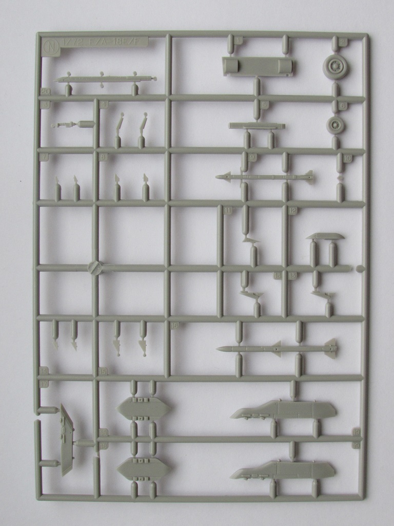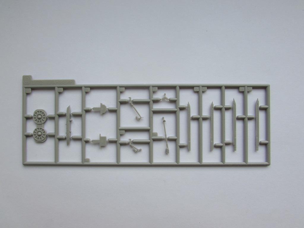 Этих литника тоже два одинаковых. На них пилоны, колеса, обтекатели, антенны. Помимо этого, даны ракеты AIM-120 AMRAAM и AIM-9X Sidewinder (кто сказал что Hasegawa не дает вооружения с моделями:-))