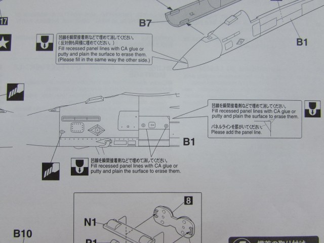 Есть в инструкции интересный момент, на носу самолета нужно частично зашпаклевать существующую расшивку и нарезать отсутствующие линии. Почему так и чей это изначально нос, в подробности пока не вдавался.