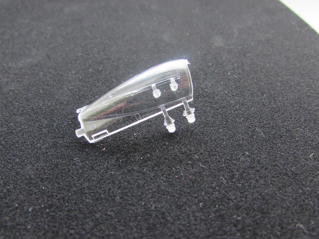 Прозрачные литники, на которых раздельный фонарь и прицел.