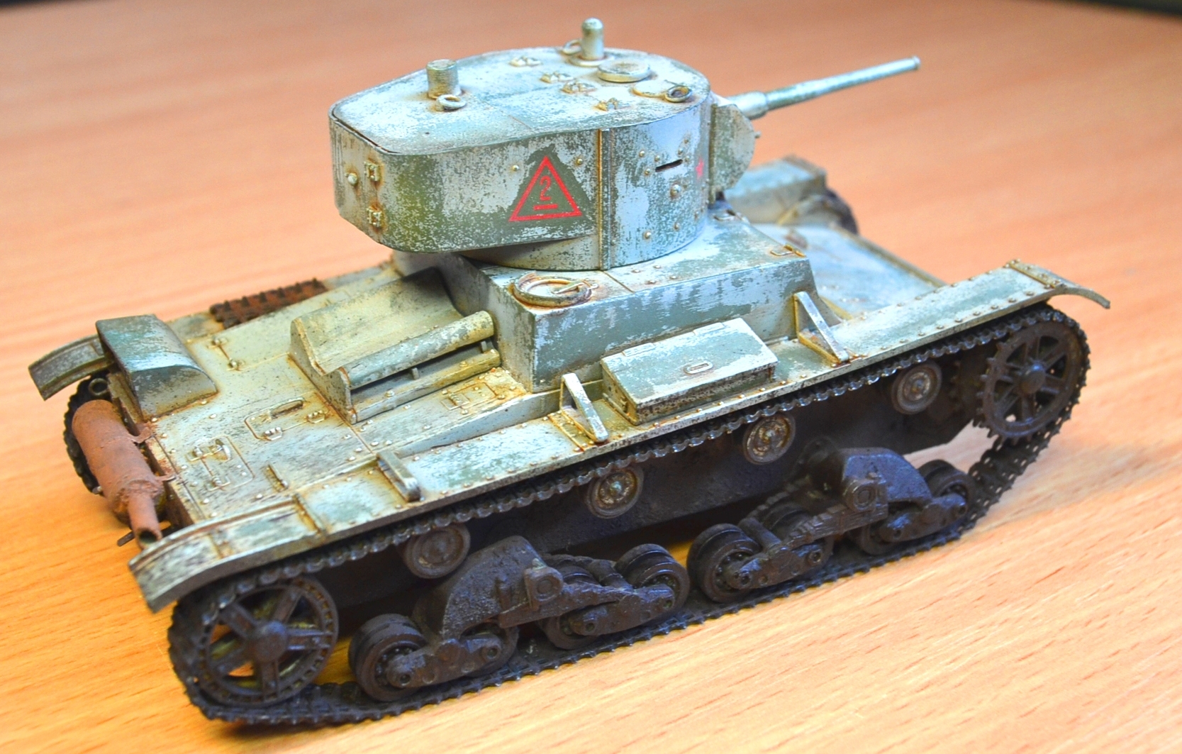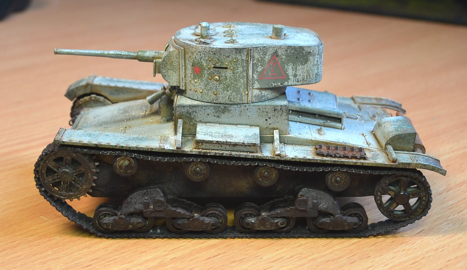 Художка лично мне понравилась. А вот по сборке, не сильно вдаваясь в матчасть - толстенные уголки надгусеничных полок можно было заменить, переднюю кромку левой полки сточить, клаксон рассверлить, ствол пулемета сменить хотя бы на иглу, ну и т.д. Эти все несложные переделки без спец. наборов могли значительно улучшить внешний вид. А так танк напоминает картонный. А вот виниловые гусли удалось победить, ИМХО очень неплохо получились. С уважением.