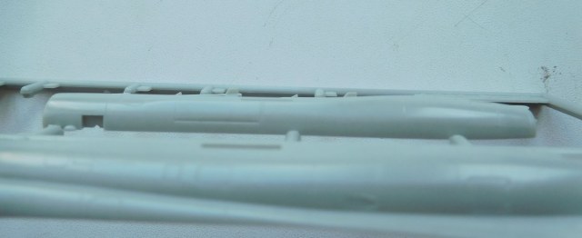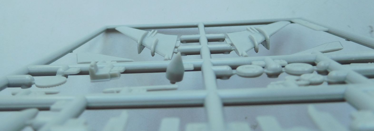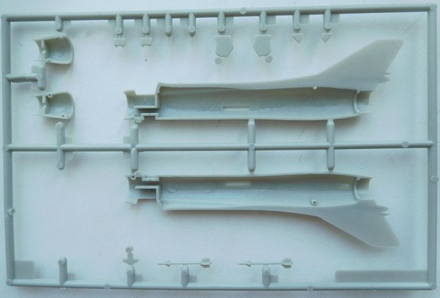 Литник с крыльями одинаков, видимо, во всех наборах от Fitter C до K. Сами крылья выполнены цельнолитыми на максимальном угле стреловидности. Про толщину аэродинамических гребней да, пожалуй, и всего остального смысла писать нет.