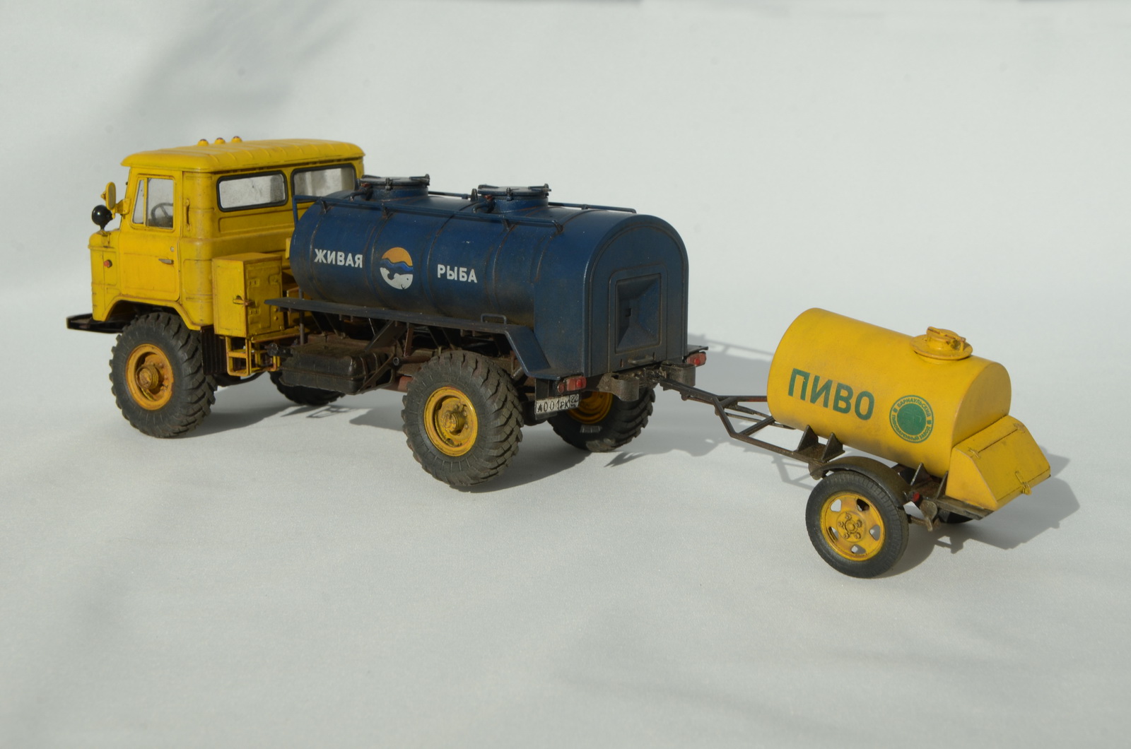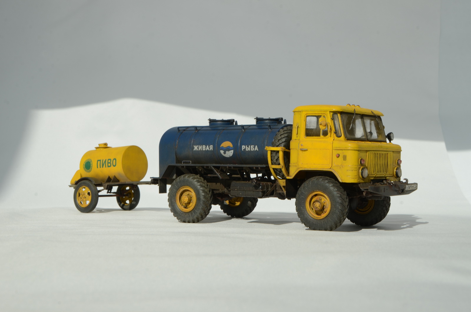 Перепилом заниматься не хотелось, поэтому рыбу возим в цистерне для топлива, а пиво в бочке времен второй мировой )) Предназначена была для "Бреда", но три больших косяка отправляют машинку в "Песок":