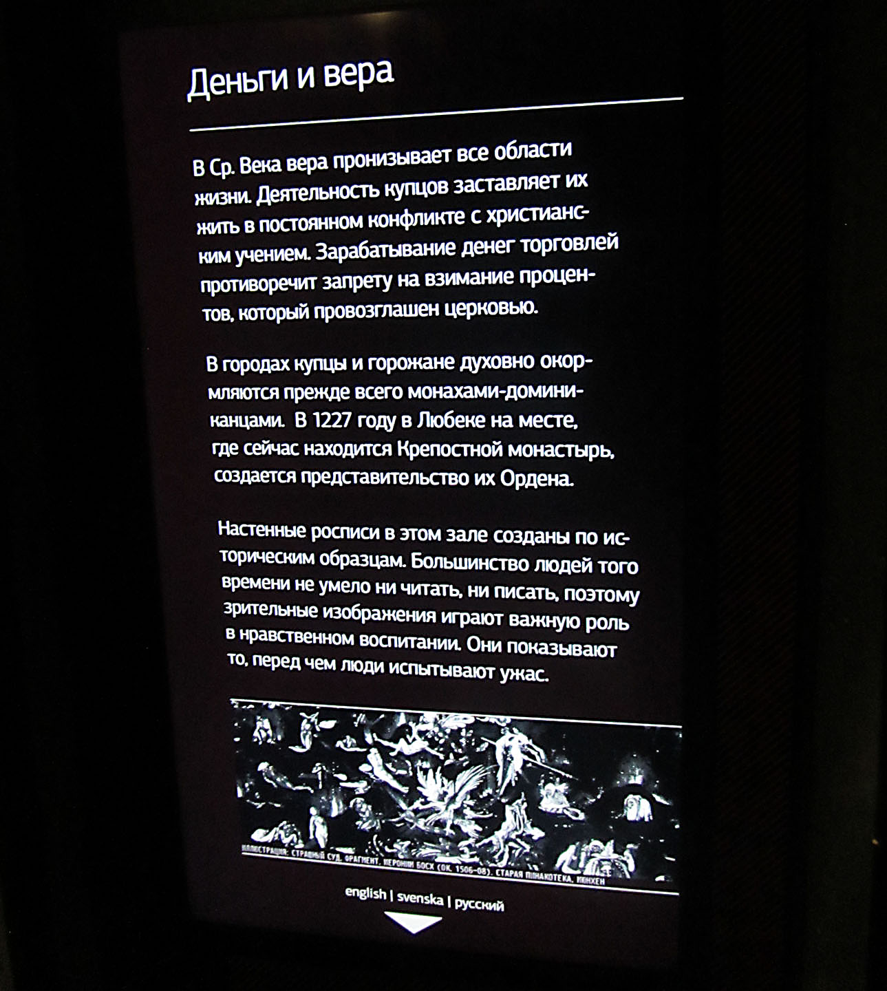 Тоже было интересно взглянуть. Следует сказать, что Любек древнее, чем указано на музейном экране. Он, как и многие другие населенные пункты в Германии, был основан славянами. О чем, собственно, говорит даже его название. Просто в Германии об этом не любят вспоминать.