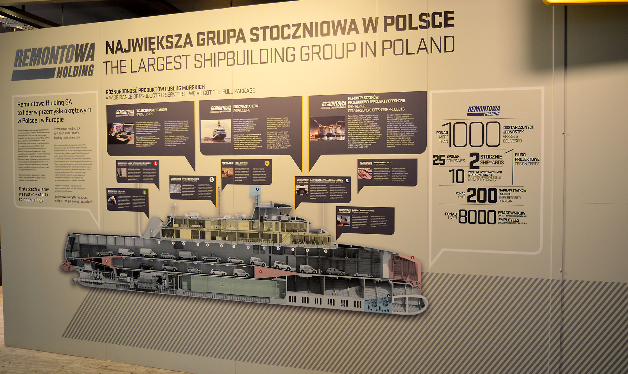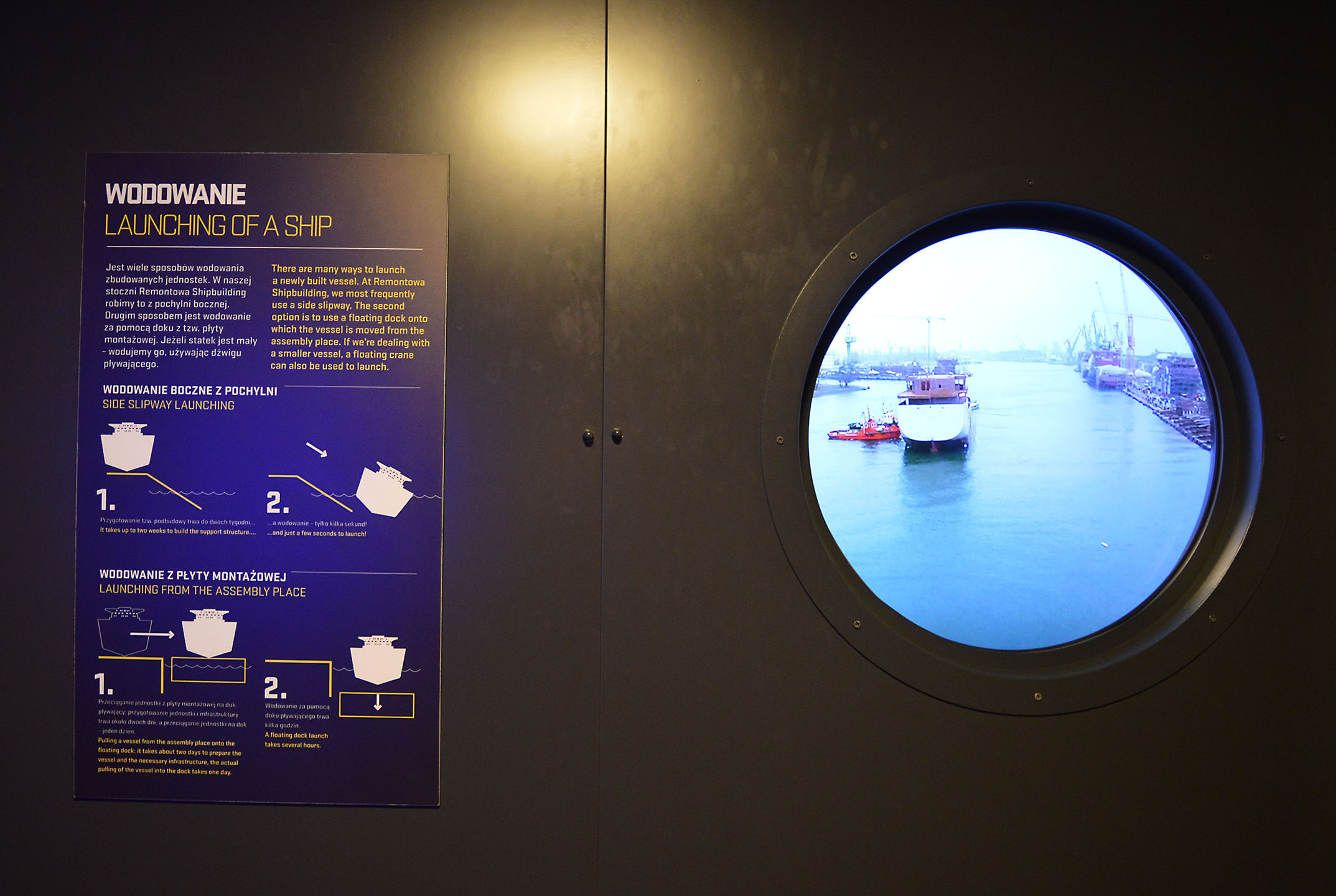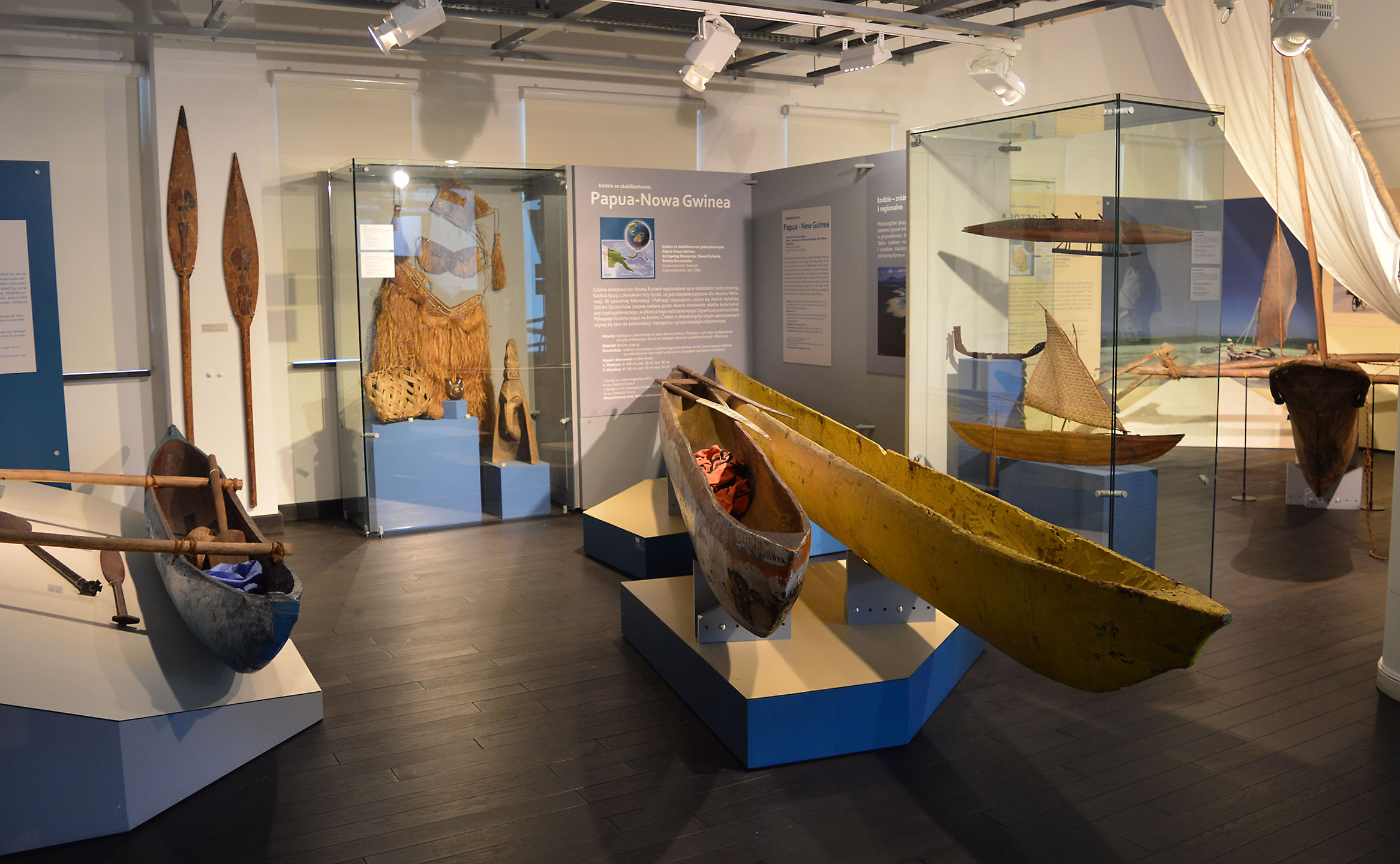 «Люди - корабли - порты» - это единственная выставка в Польше, которая интерактивно и мультимедийно представляет морскую тематику, начиная от вопросов, связанных с судостроением, через морскую технологию и жизнь на море, заканчивая подводной археологией. Выставка, занимающая около 400м2 была подготовлена таким образом, чтобы посетители по очереди знакомились с различными вопросами, связанными с морем, а полученные знания использовали в дальнейшем ходе выставки.